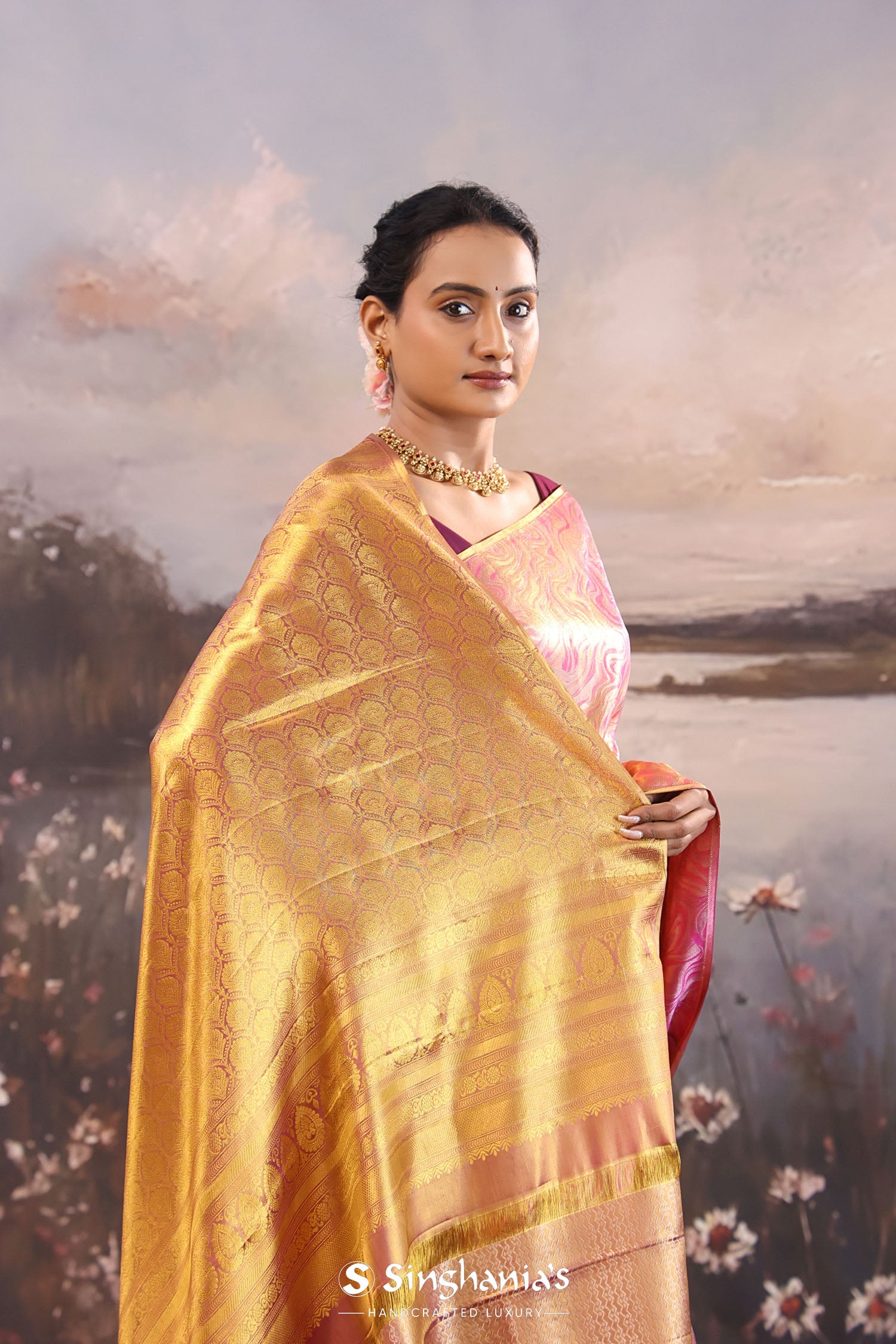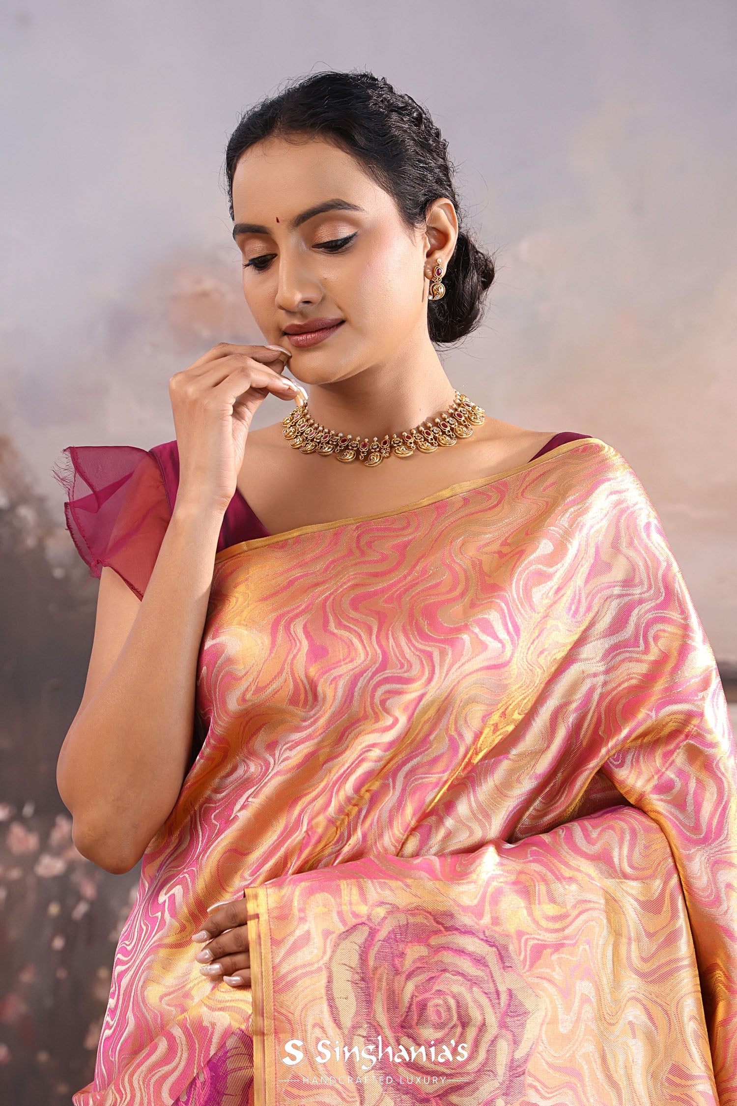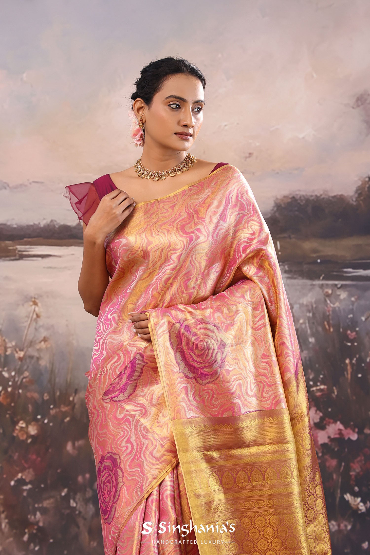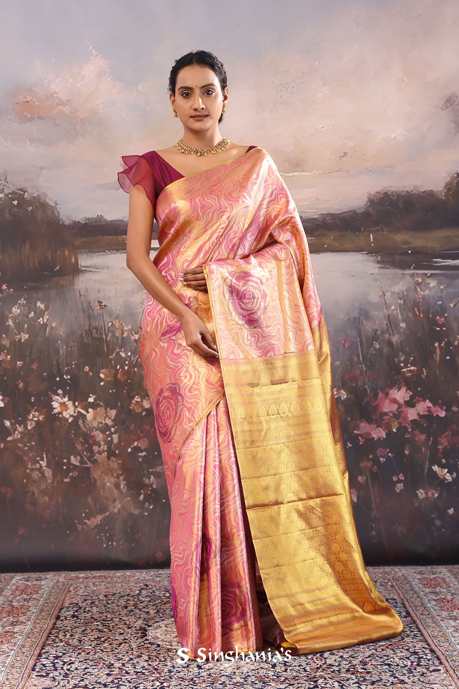 Pink Kanjivaram Tissue Designer Saree With Open Border