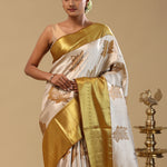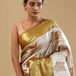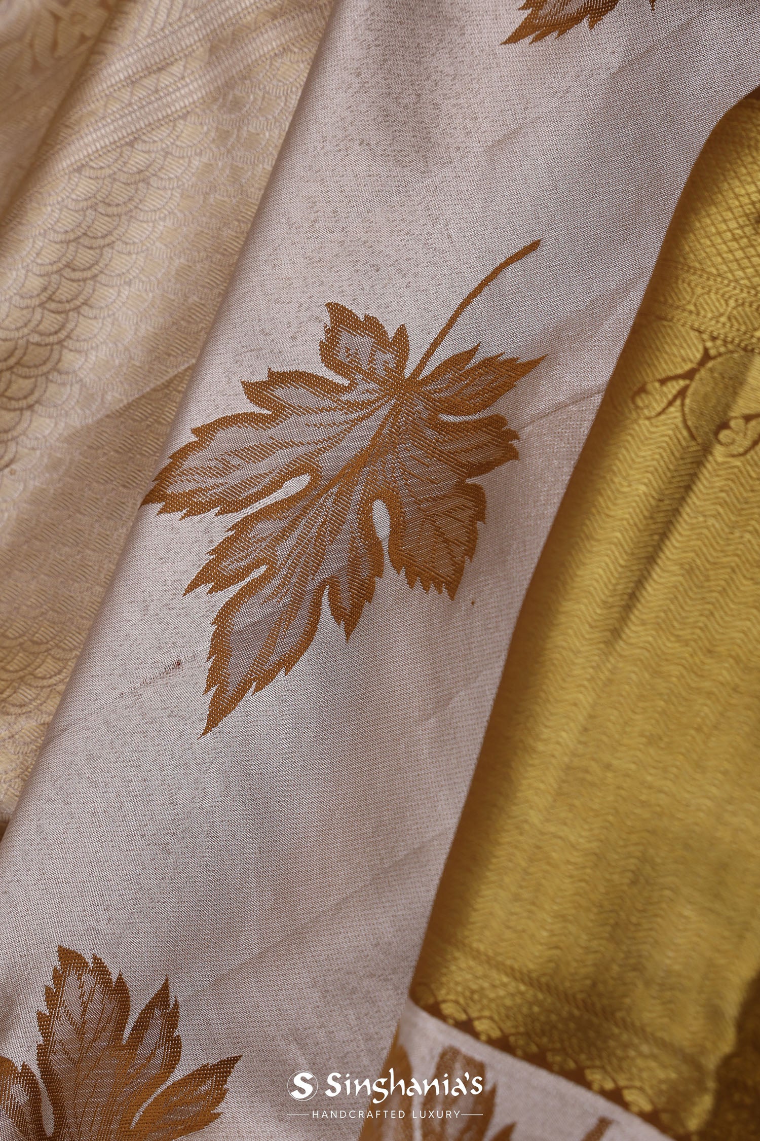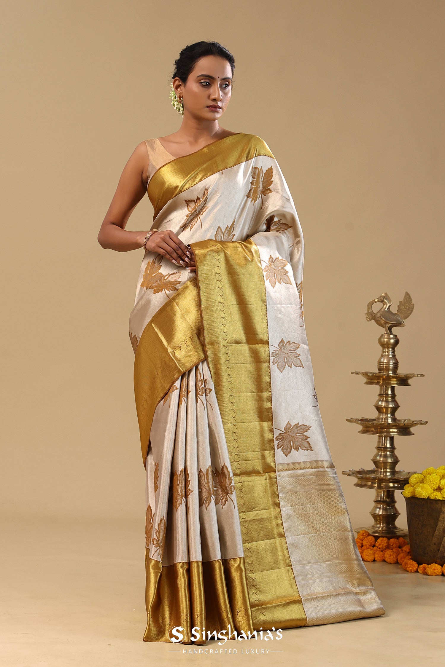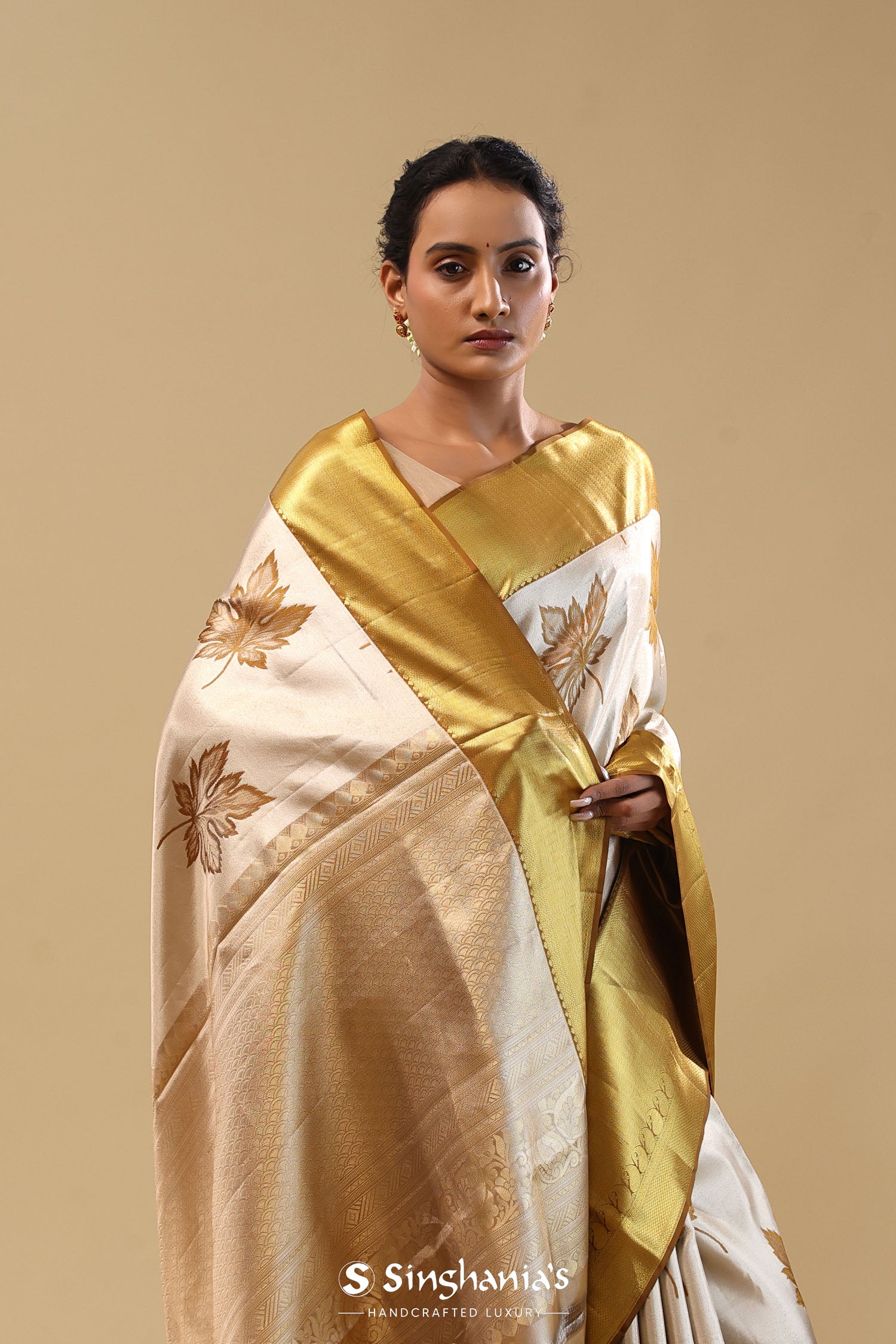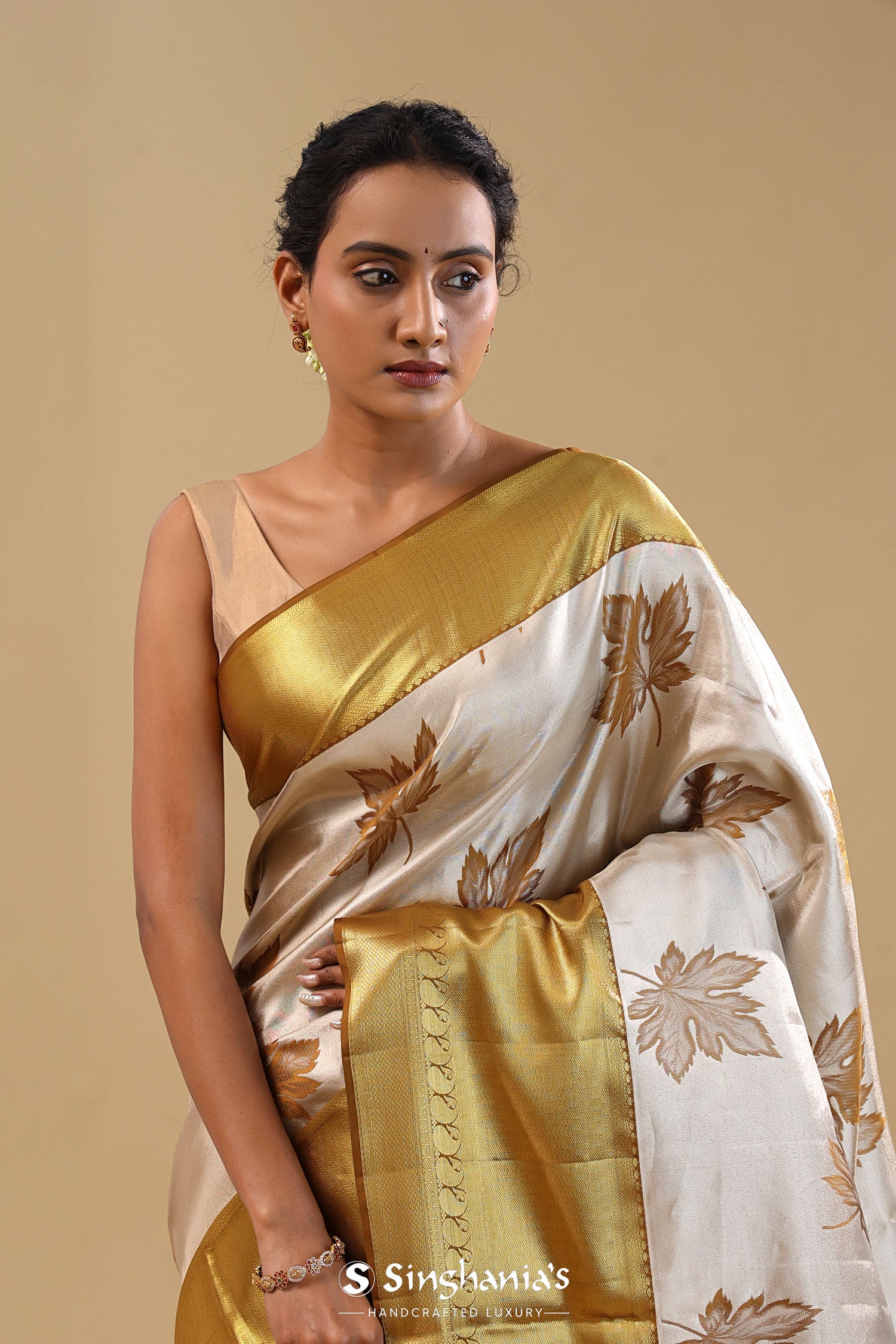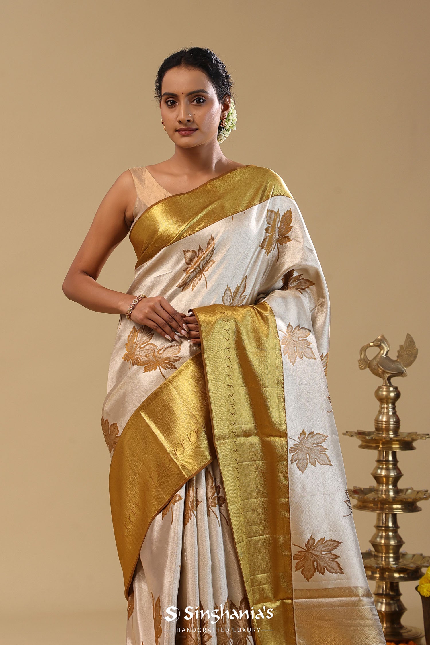 Silver Kanjivaram Tissue Saree With Leaf Motifs