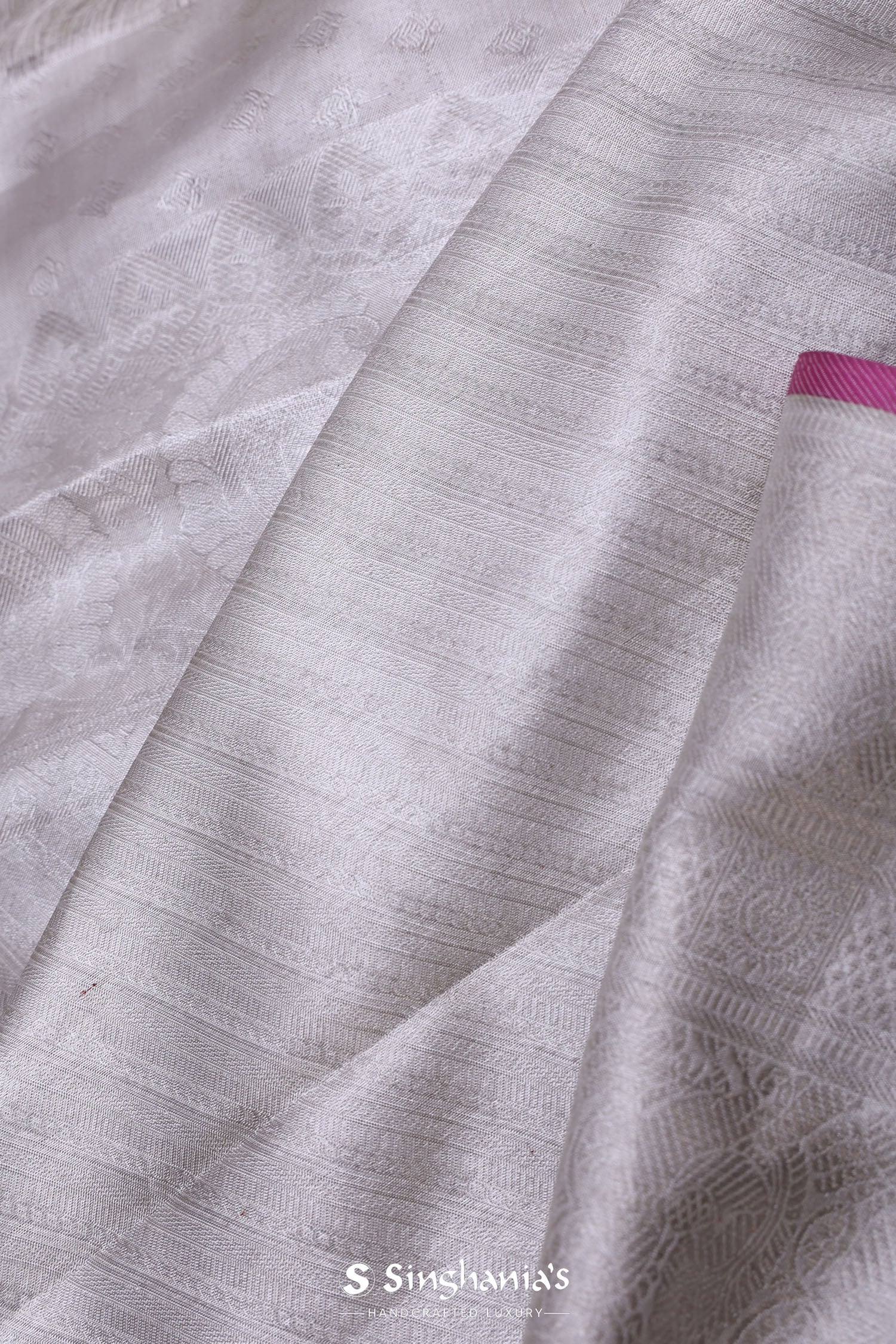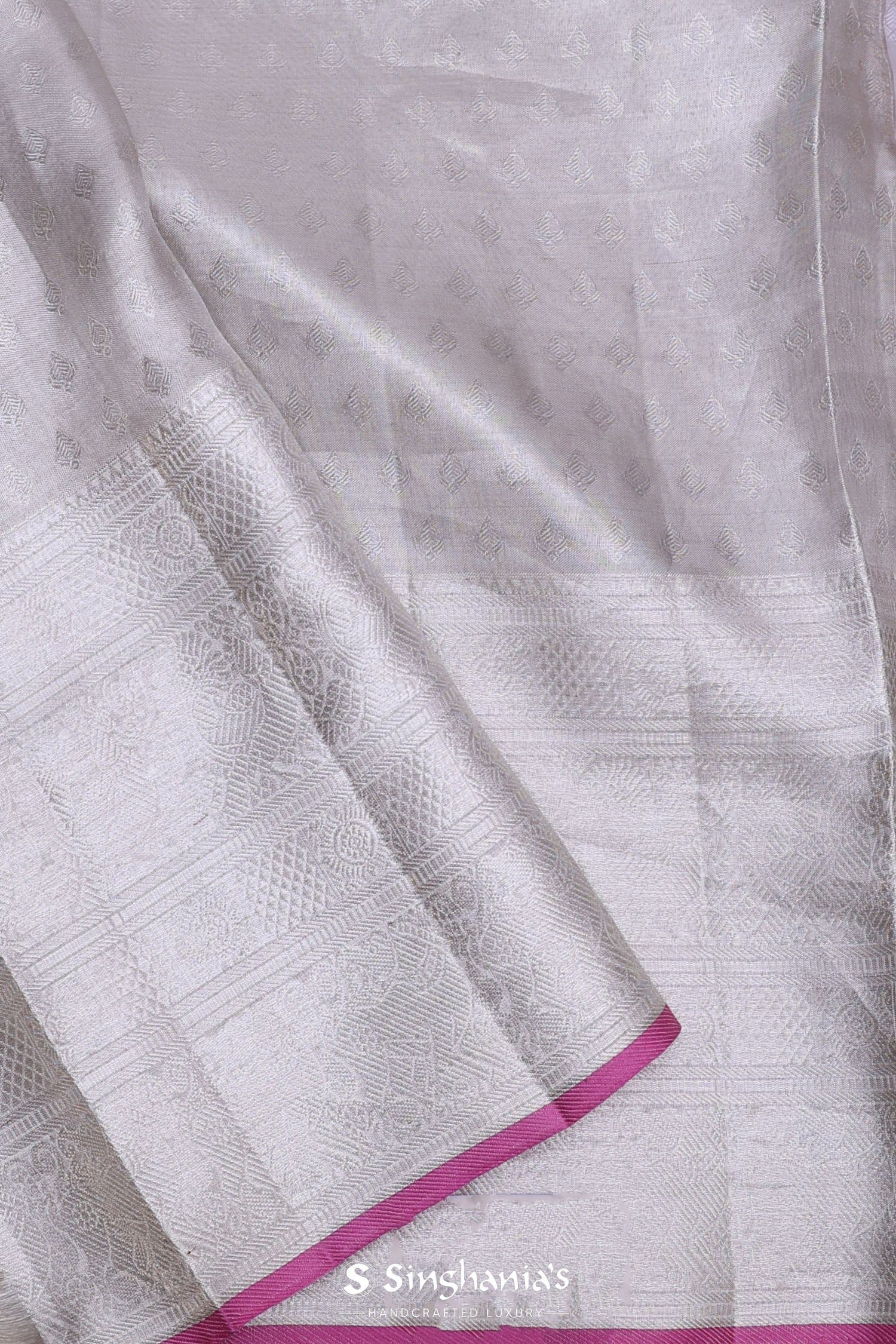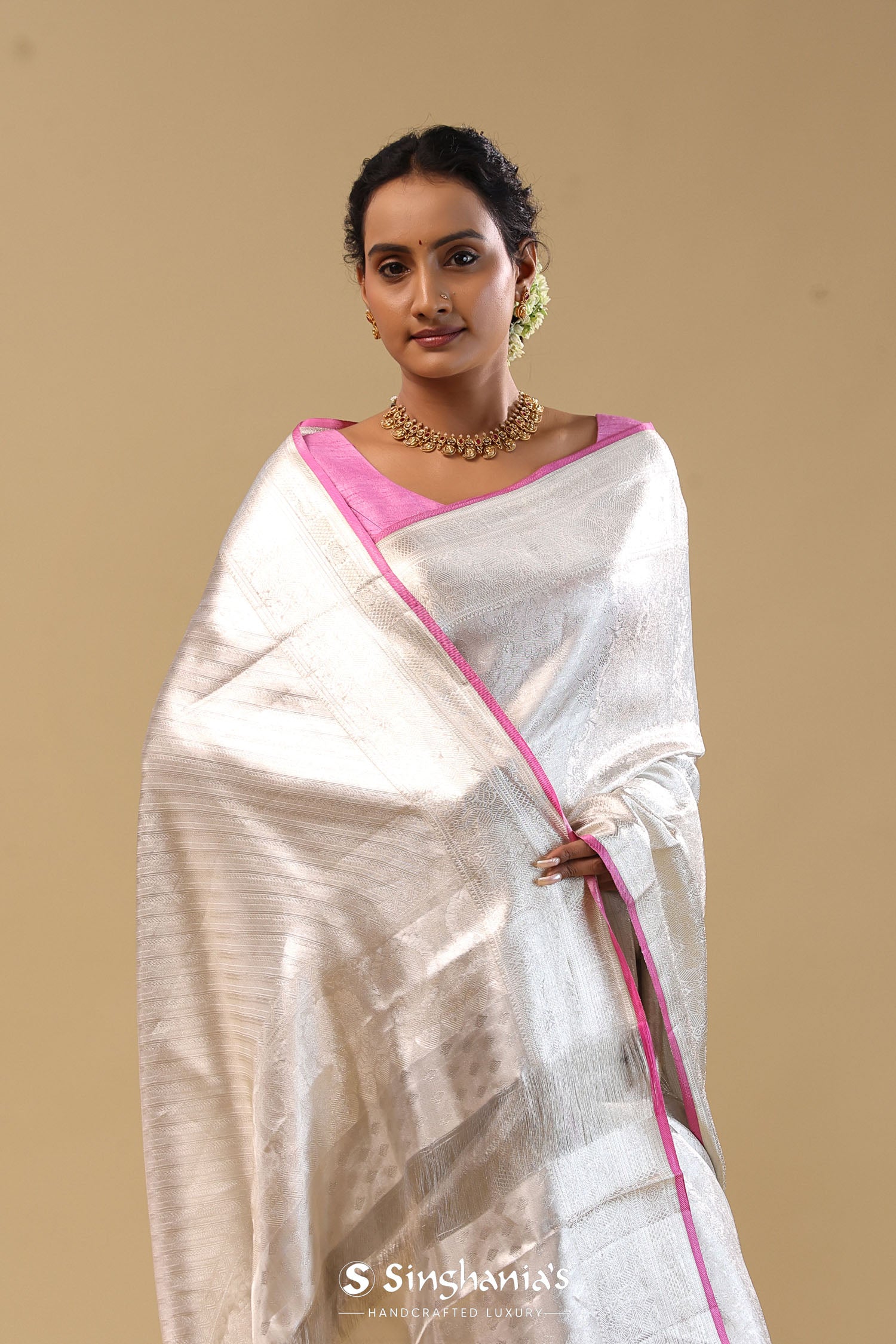 Silver Kanjivaram Tissue Saree With Pink Edge