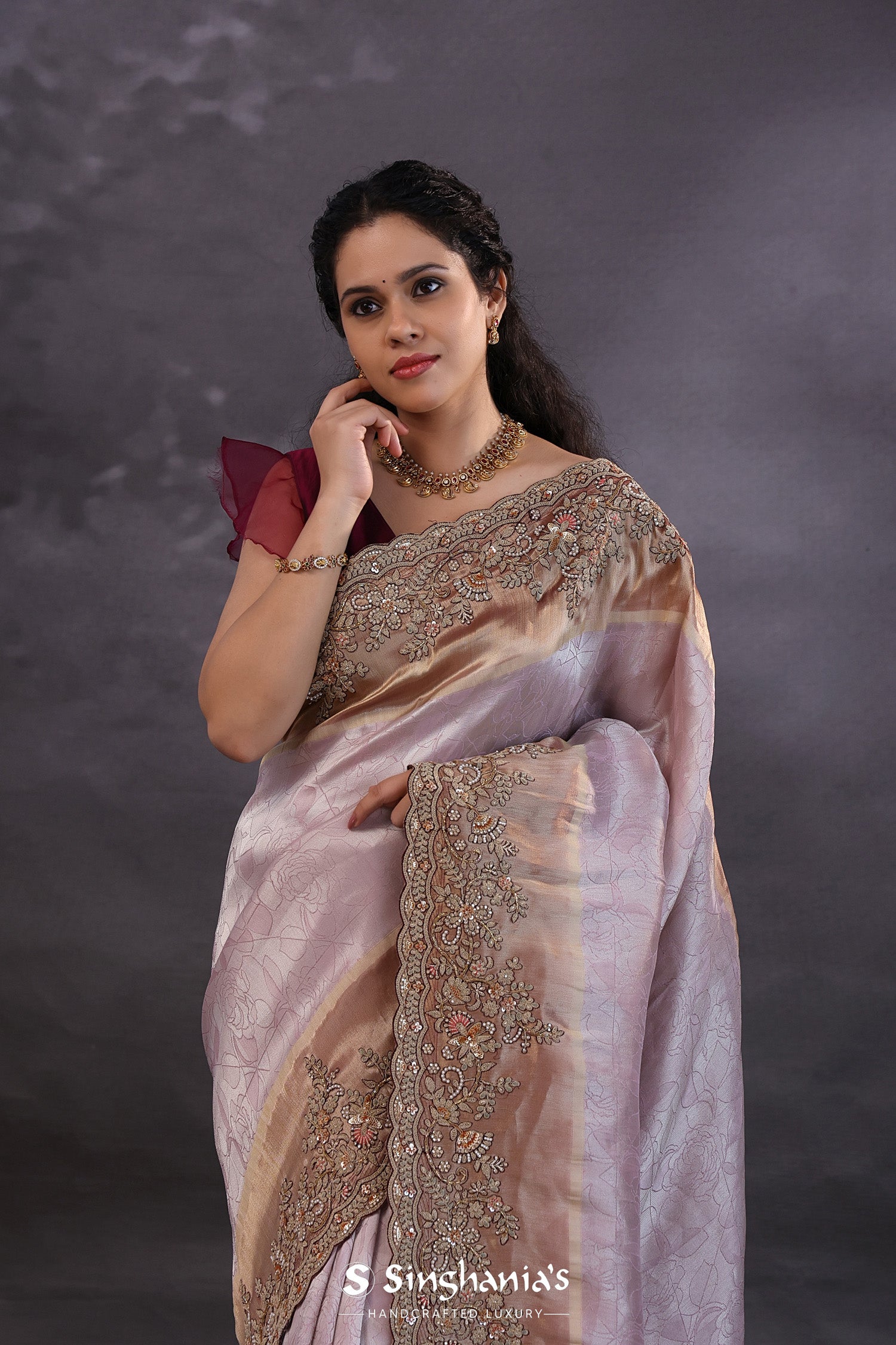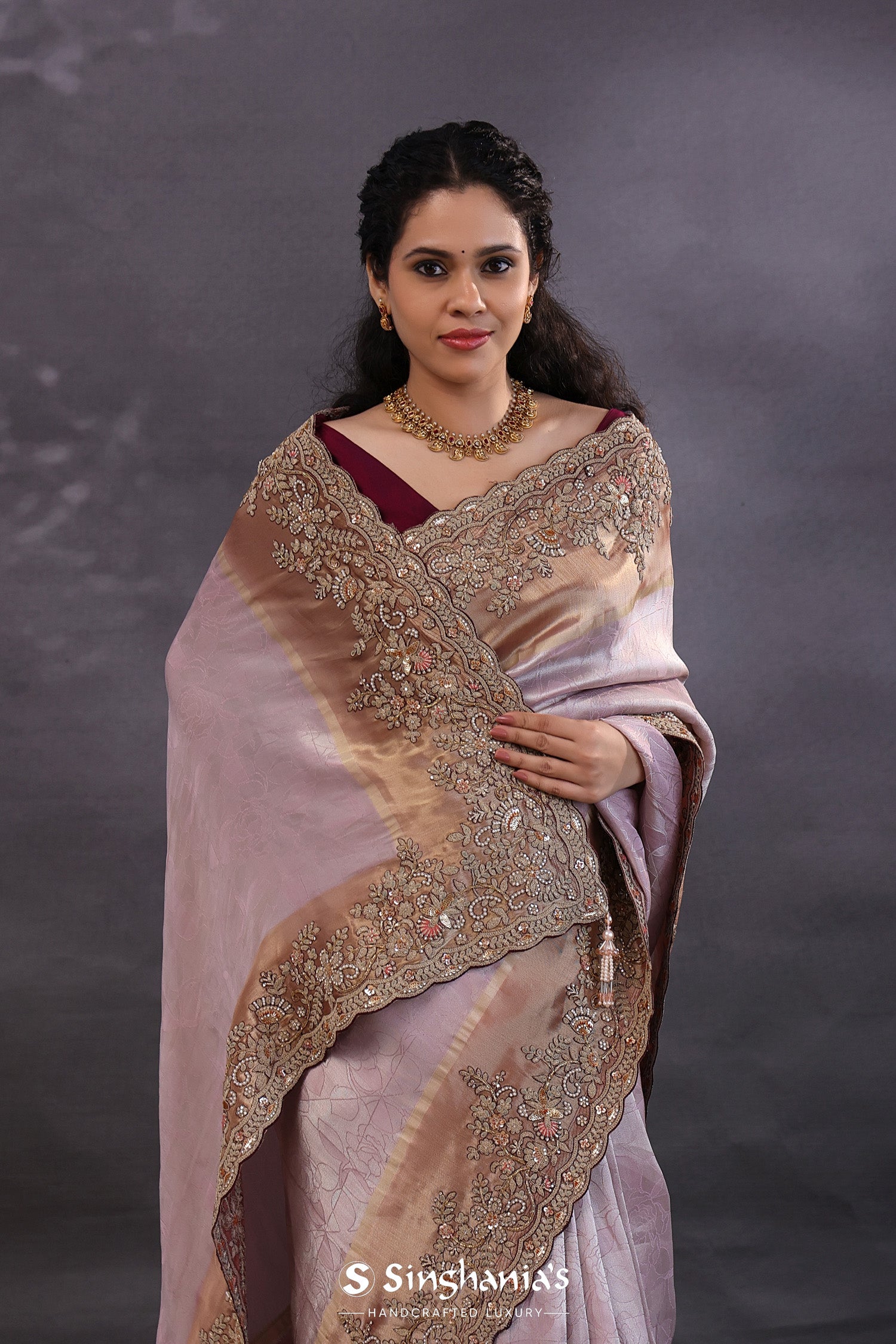 Pastel Purple Banarasi Tissue Saree With Scallop Border