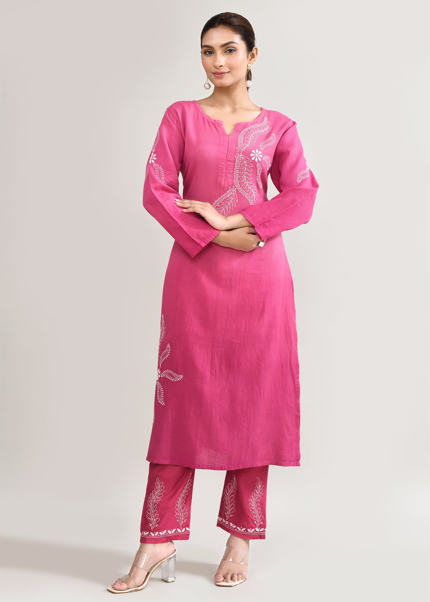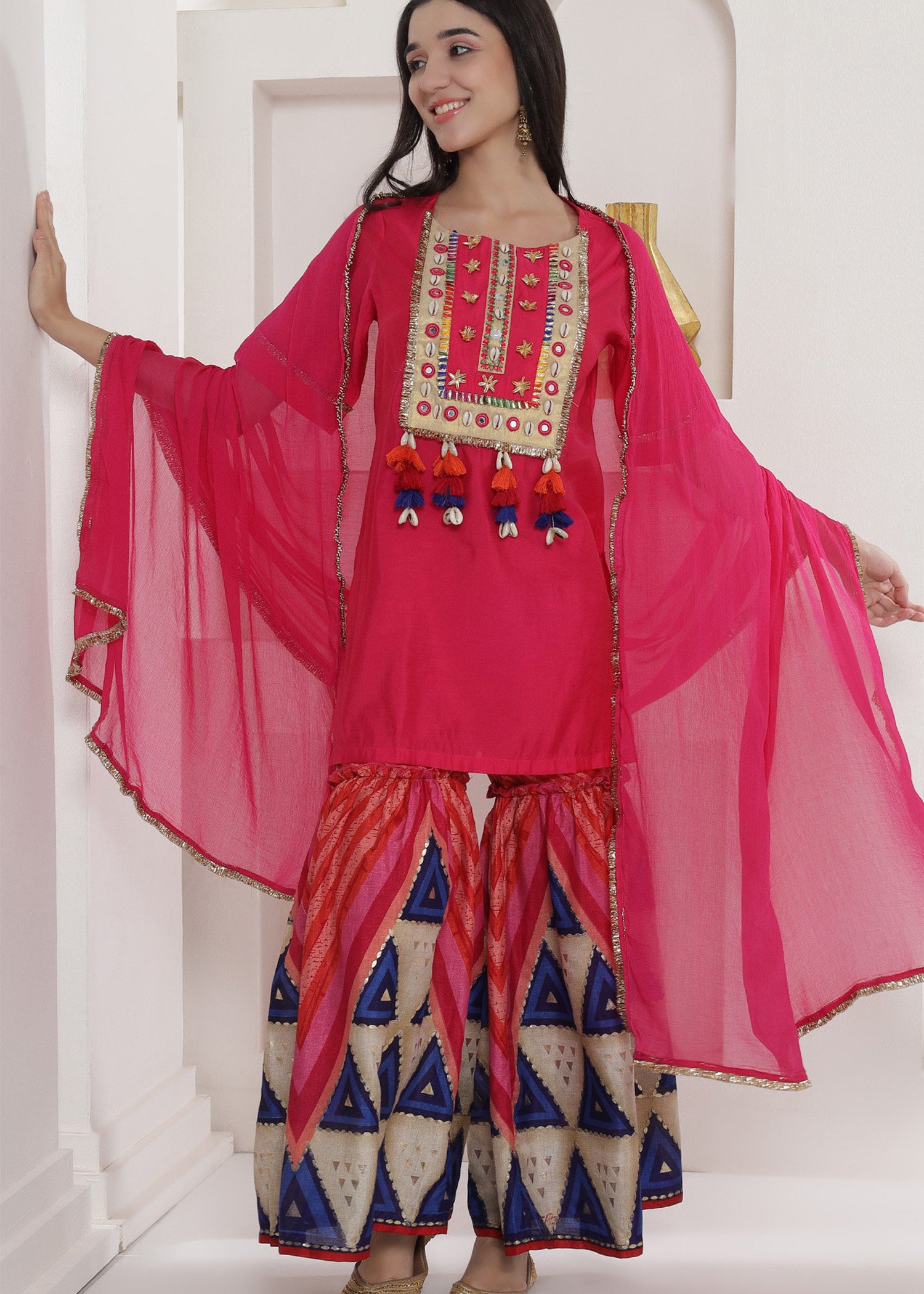 Mexican Pink Banarasi Kota Silk Saree With Floral Jaal