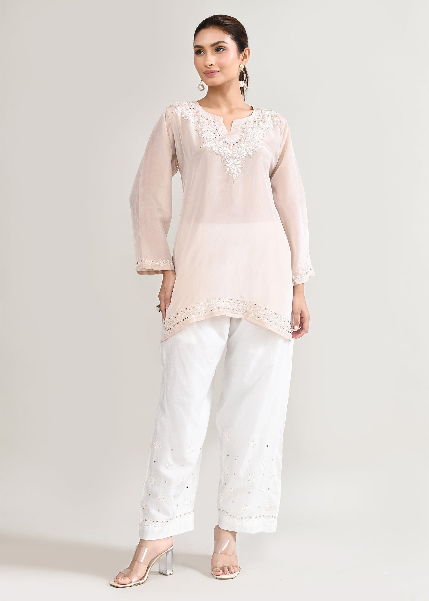 Tan Brown Chinnon Farshi Salwaar Suit Set