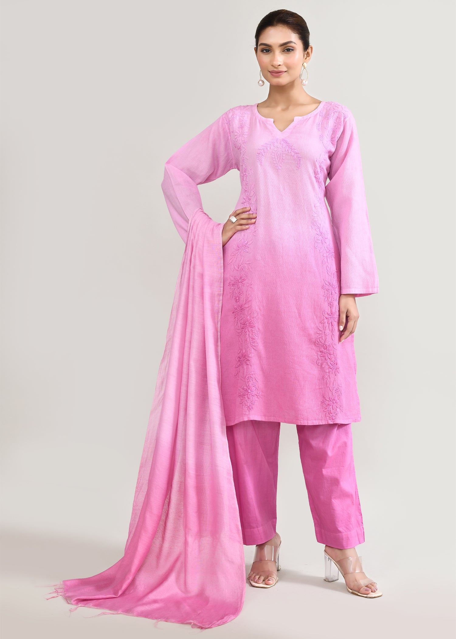 Purple Raw Silk Dori Hand Embroidered Suit With Salwar And Dupatta