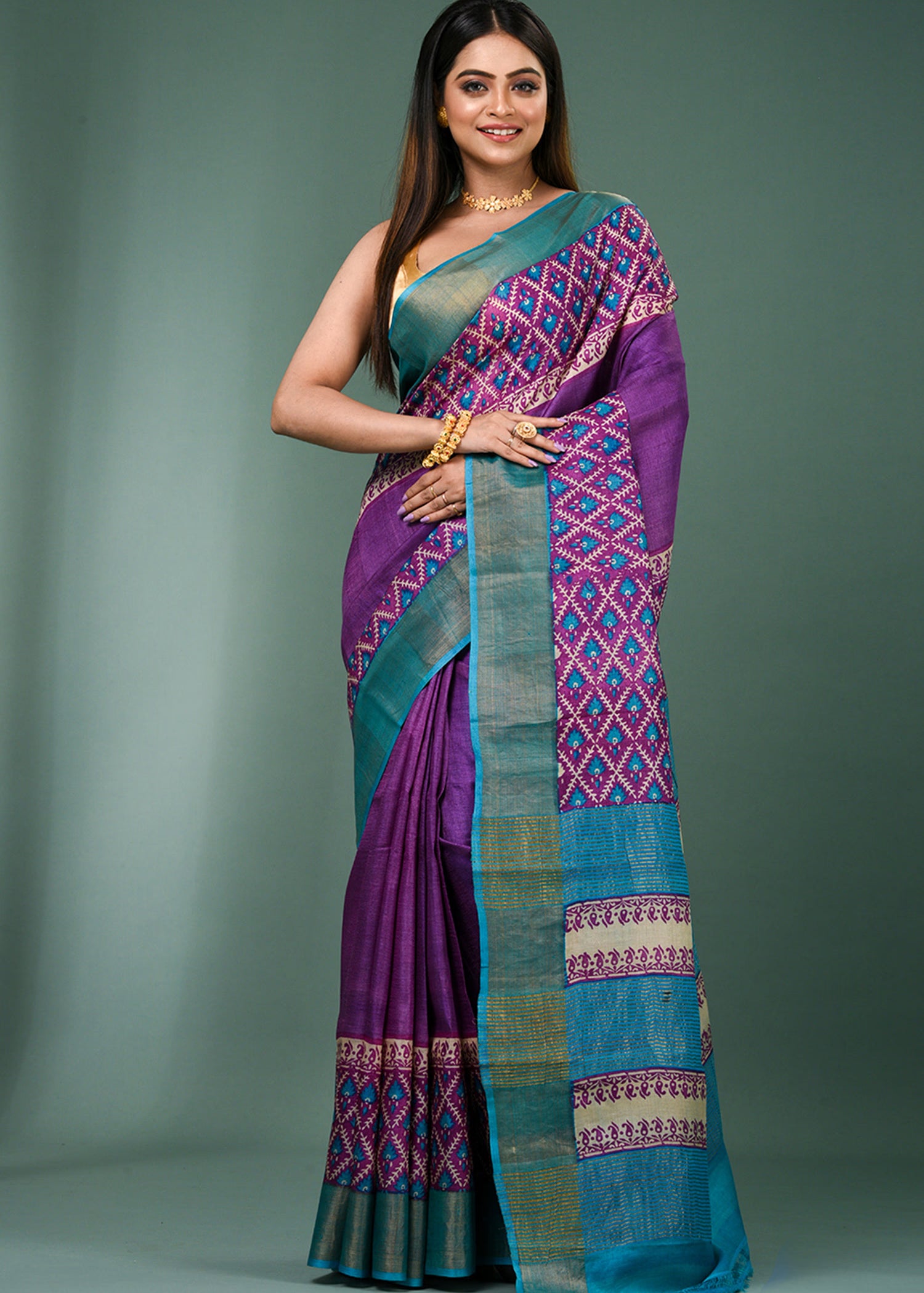 Deep Violet Khadi Tussar Saree With Meenakari Butta