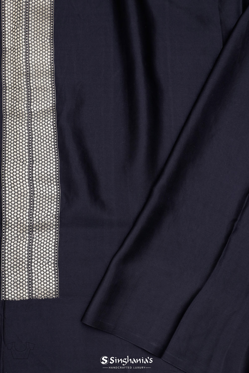 Black Blue Banarasi Mashru Silk Saree With Floral Motifs