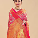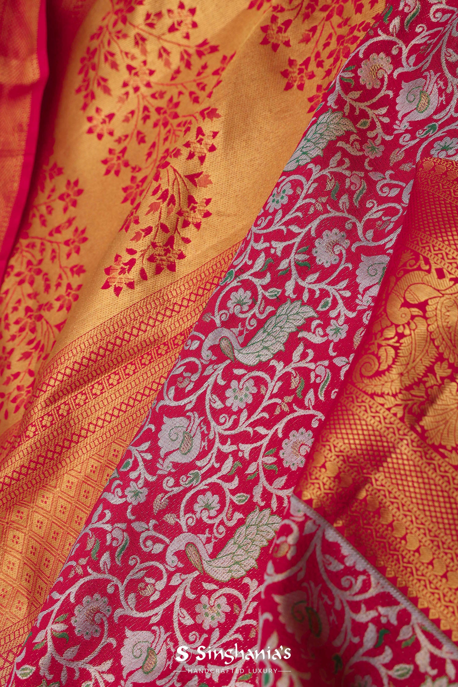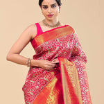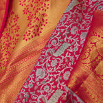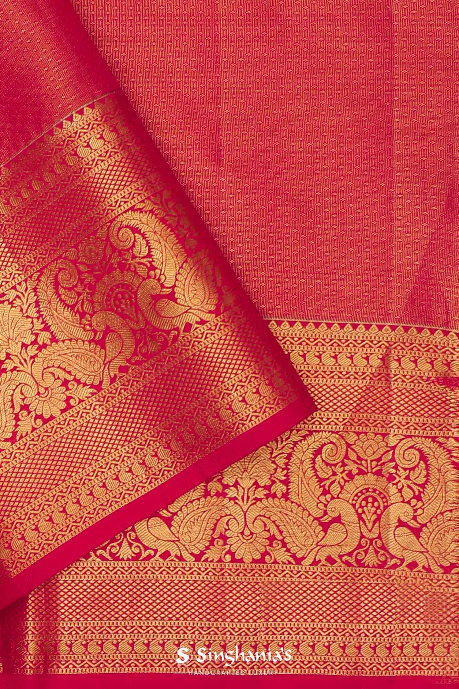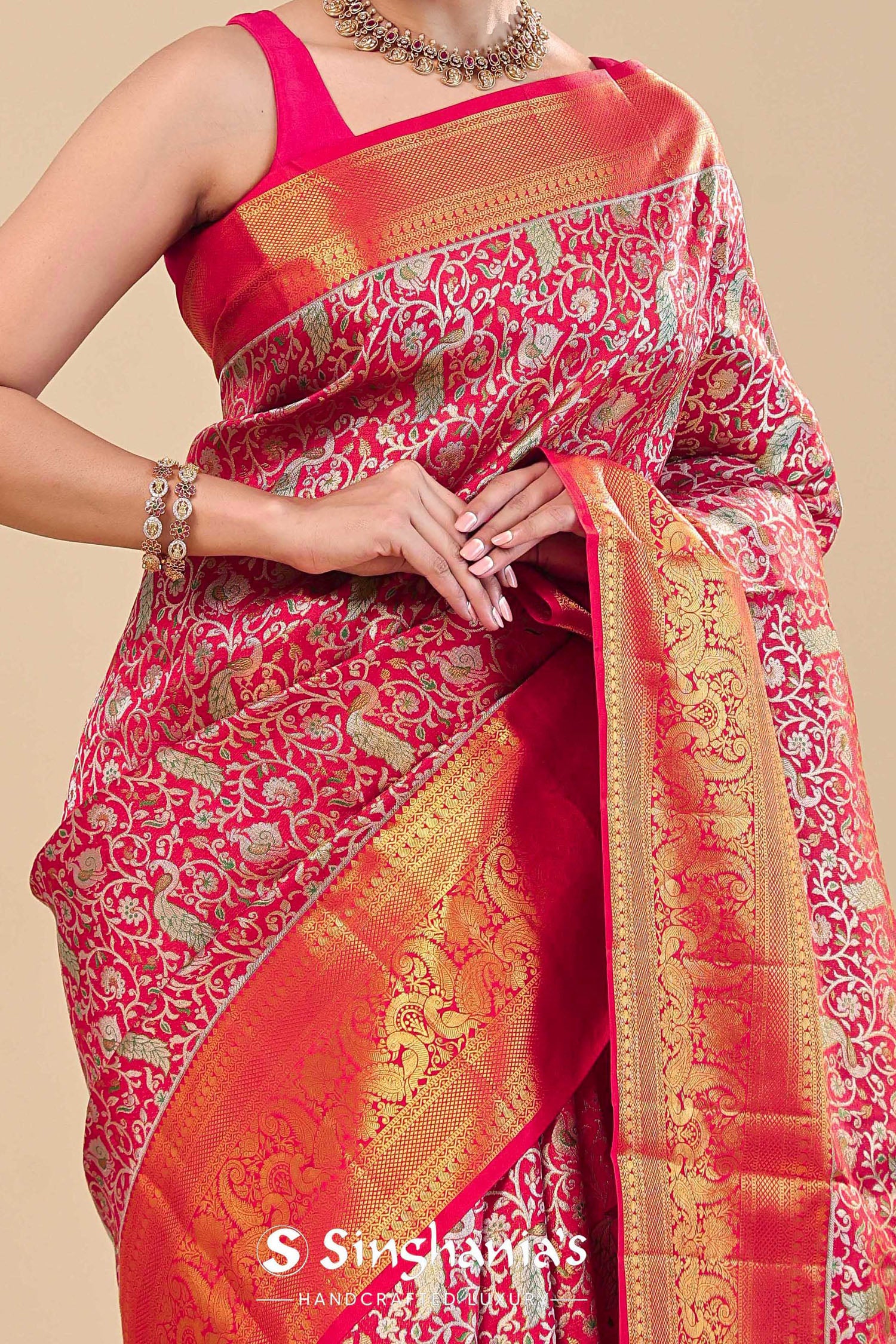 Crimson Red Kanjivaram Silk Saree With Leaf And Peacock Jaal