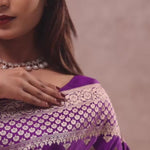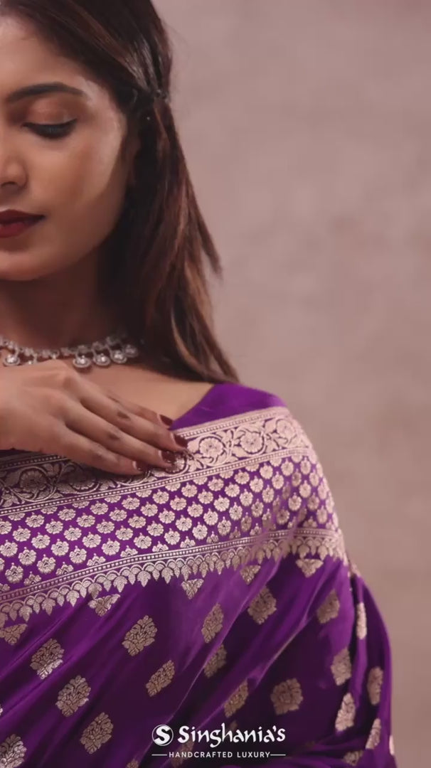 Dark Violet Banarasi Silk Saree With Gold Zari Border Butti