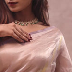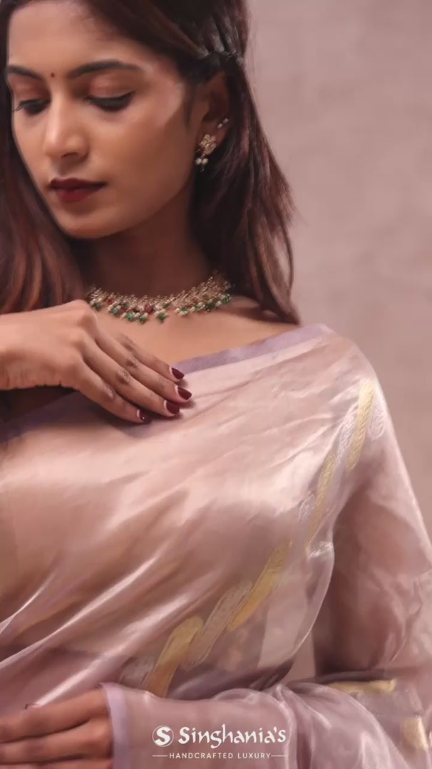 A elegence choice , this soft periwinkle purple tissue organza banarasi saree which is adorned with gold and silver zari pattern woven which results in shimmer effect and highlight the beauty of the saree.