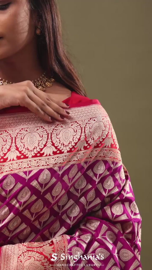 Magenta Banarasi Saree With Contrast Brick Red Border