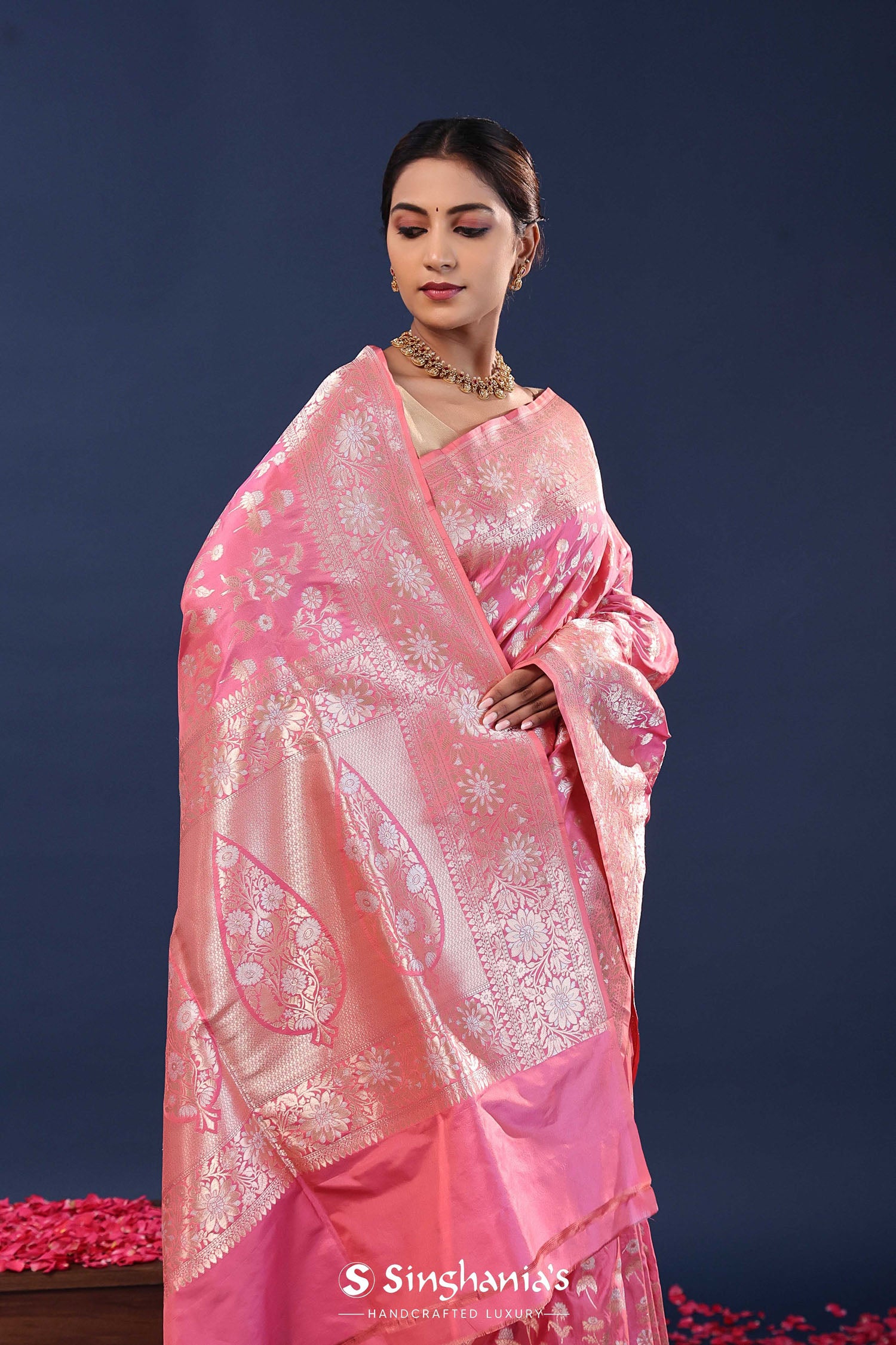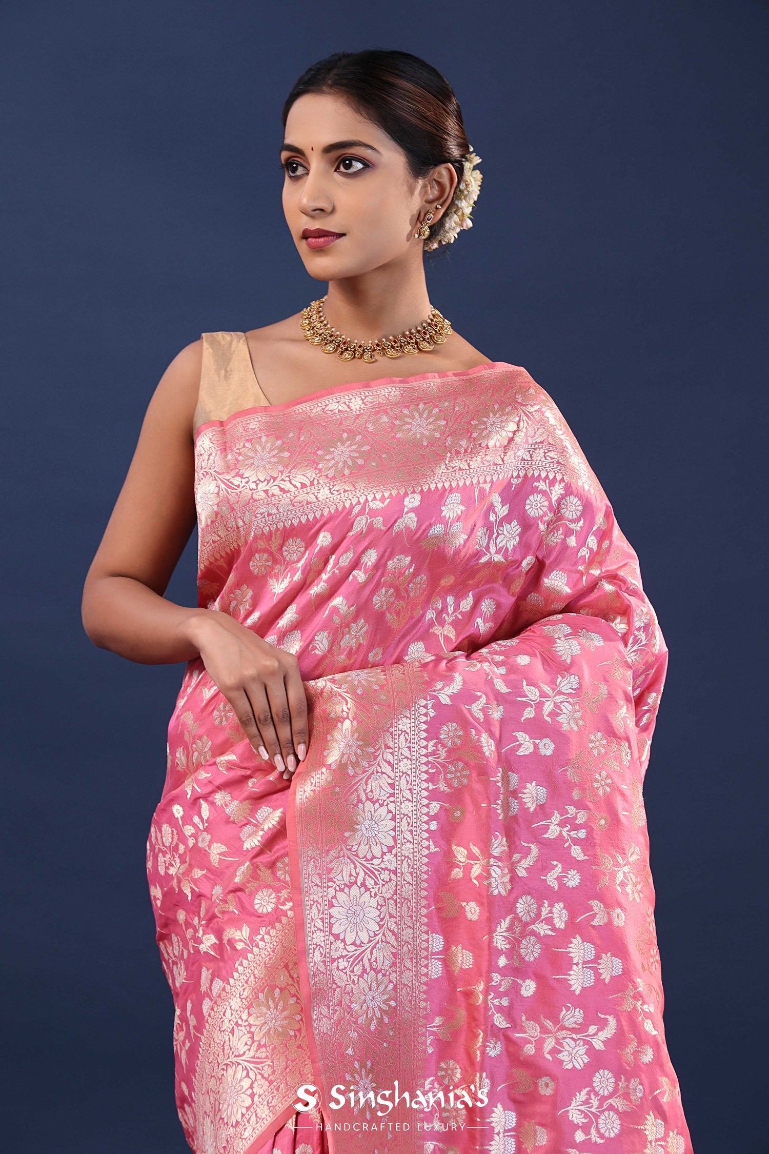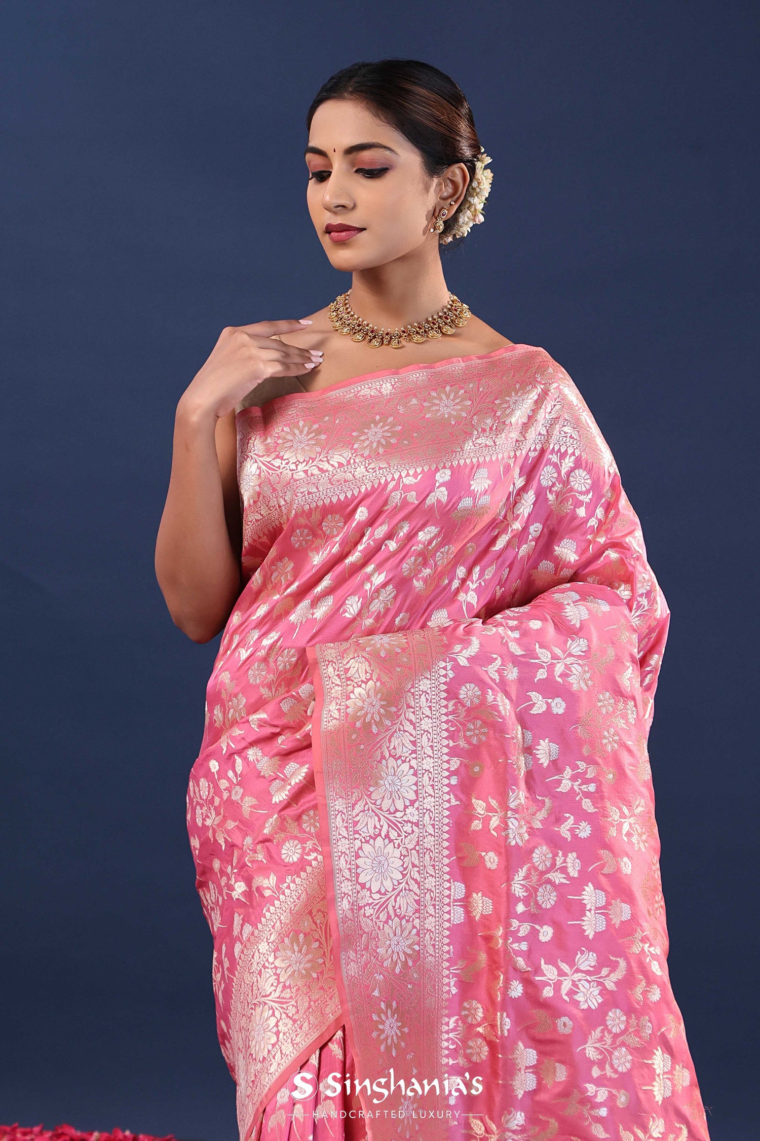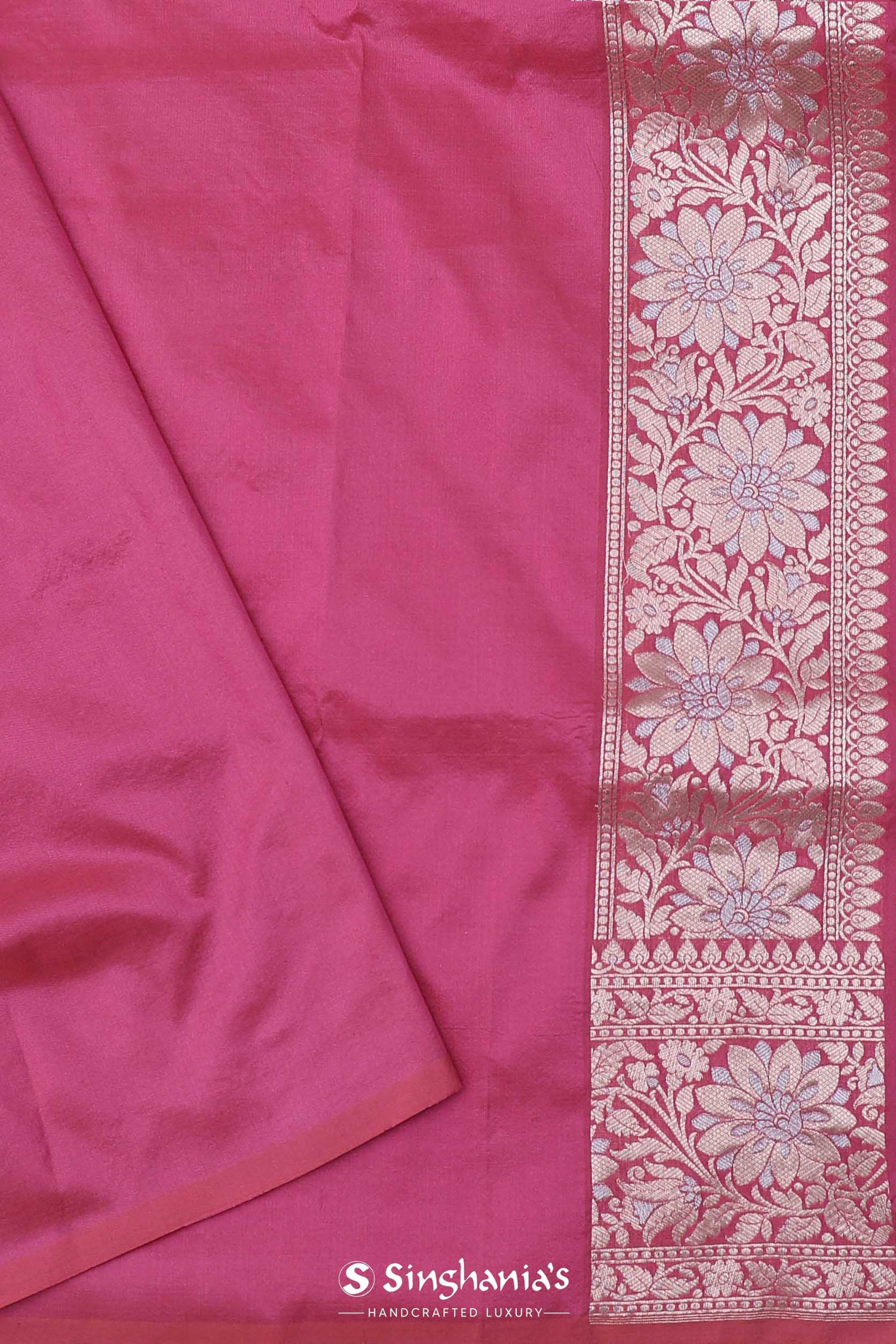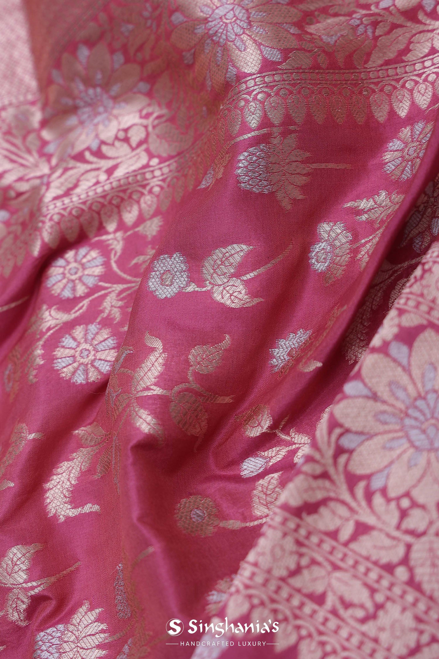 Raspberry Rose Banarasi Saree With Floral Weaving
