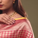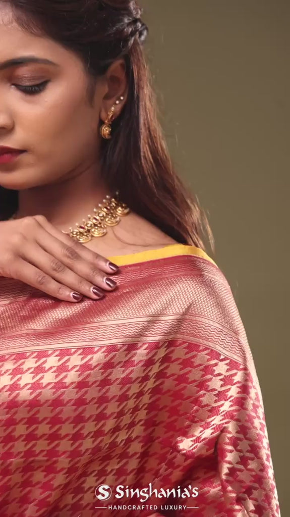 Red Banarasi Saree With Contrast Edge And Abstract Design