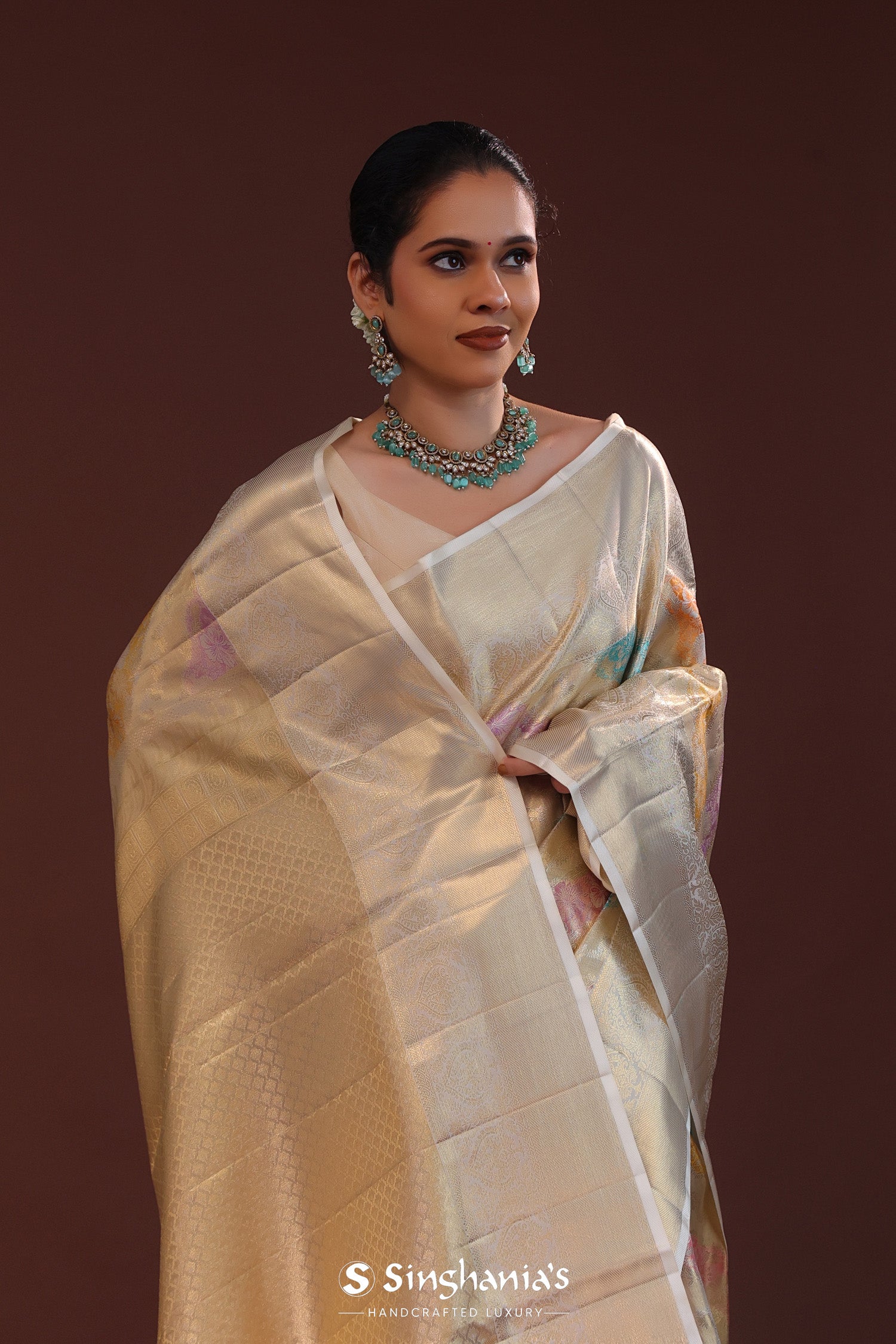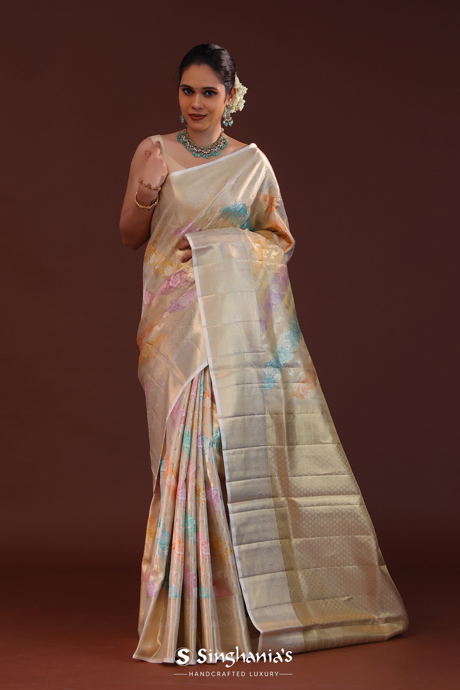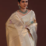 Silver Kanjivaram Tissue Saree With Rangkat Pattern