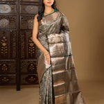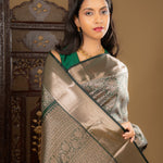 Silver Tone Dark Green Kanjivaram Silk Saree