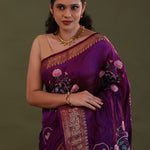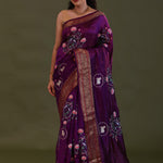 Very Dark Violet Soft Chanderi Silk Saree With Embroidery Work
