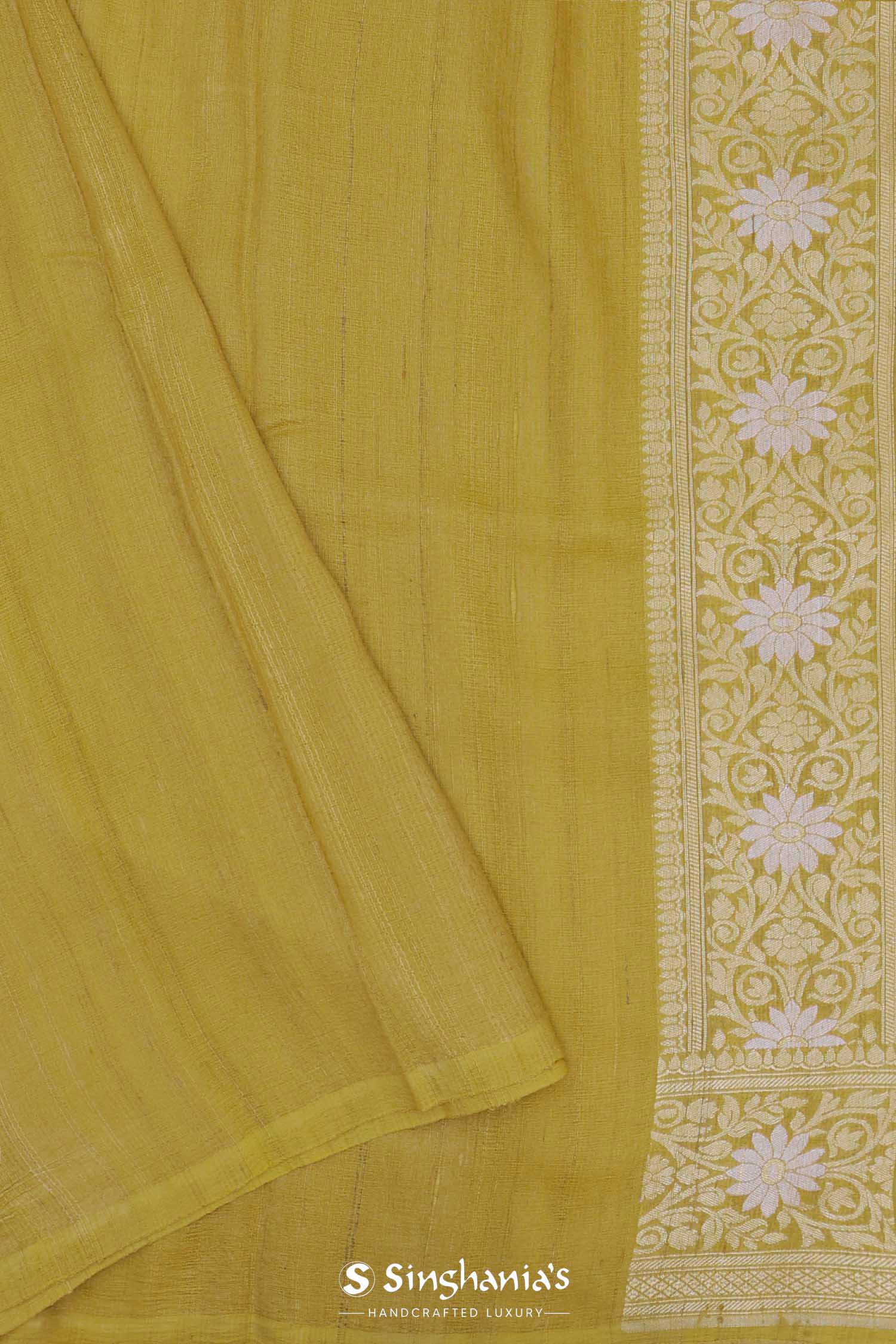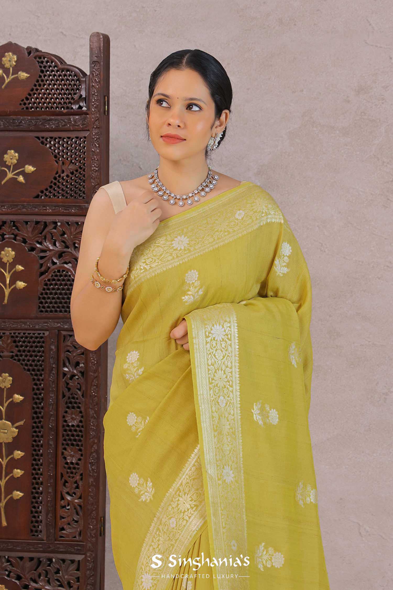 Warm Olive Green Munga Tussar Saree With Butti'S