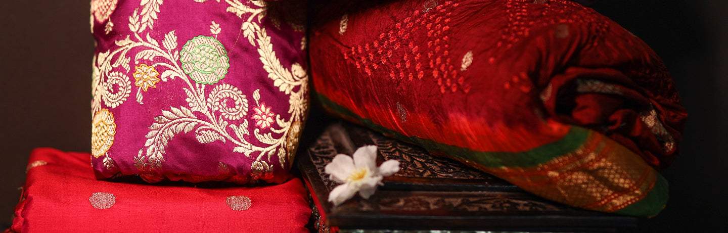 An auspicious selection for the women of Rajasthan and Gujarat, pure Bandhani silk sarees are woven by local artisans while keeping the sentiments intact. Their tie and dye technique is extensive and takes a long time to complete.