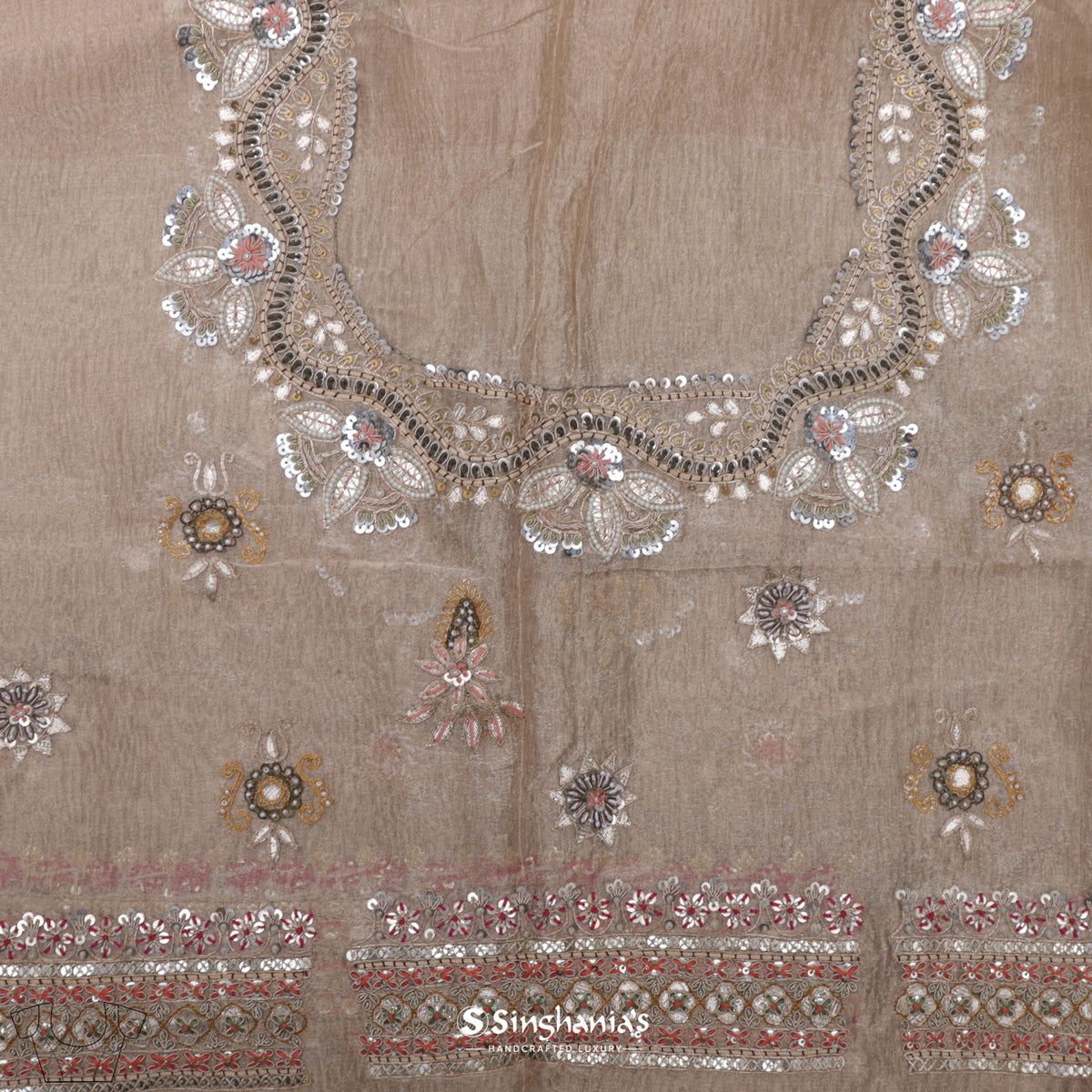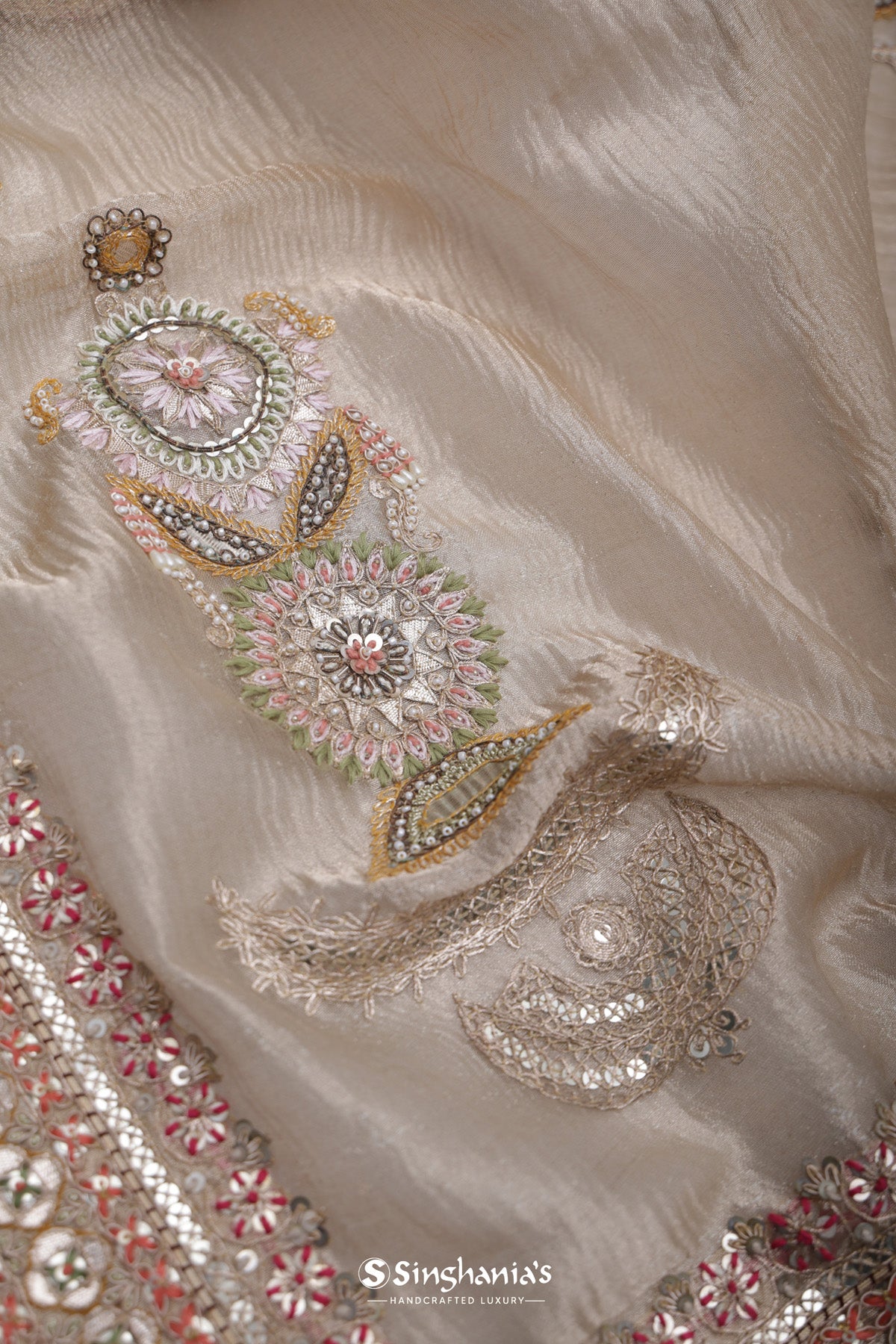 Almond Beige Tissue Organza Saree With Chikankari Embroidery