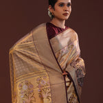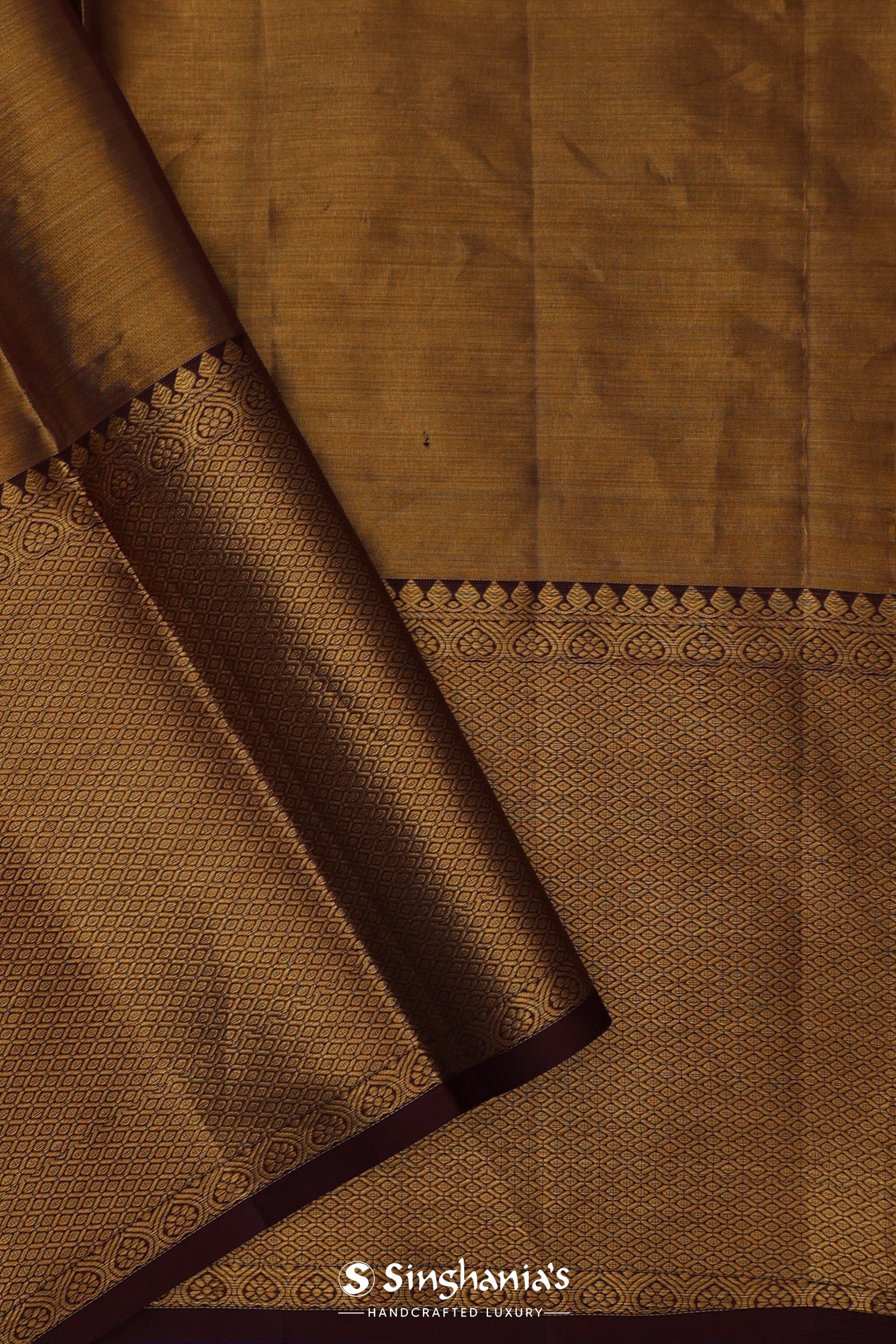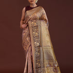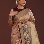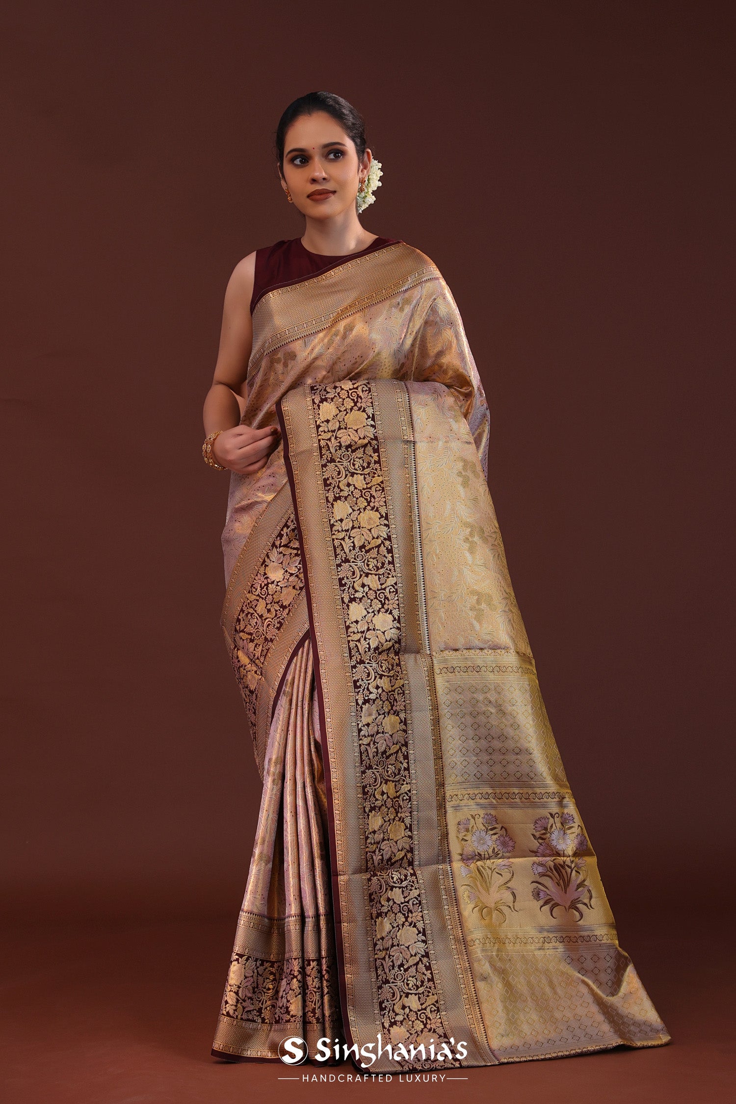 Beige Kanjivaram Tissue Saree With Contrast Dark Brown Border