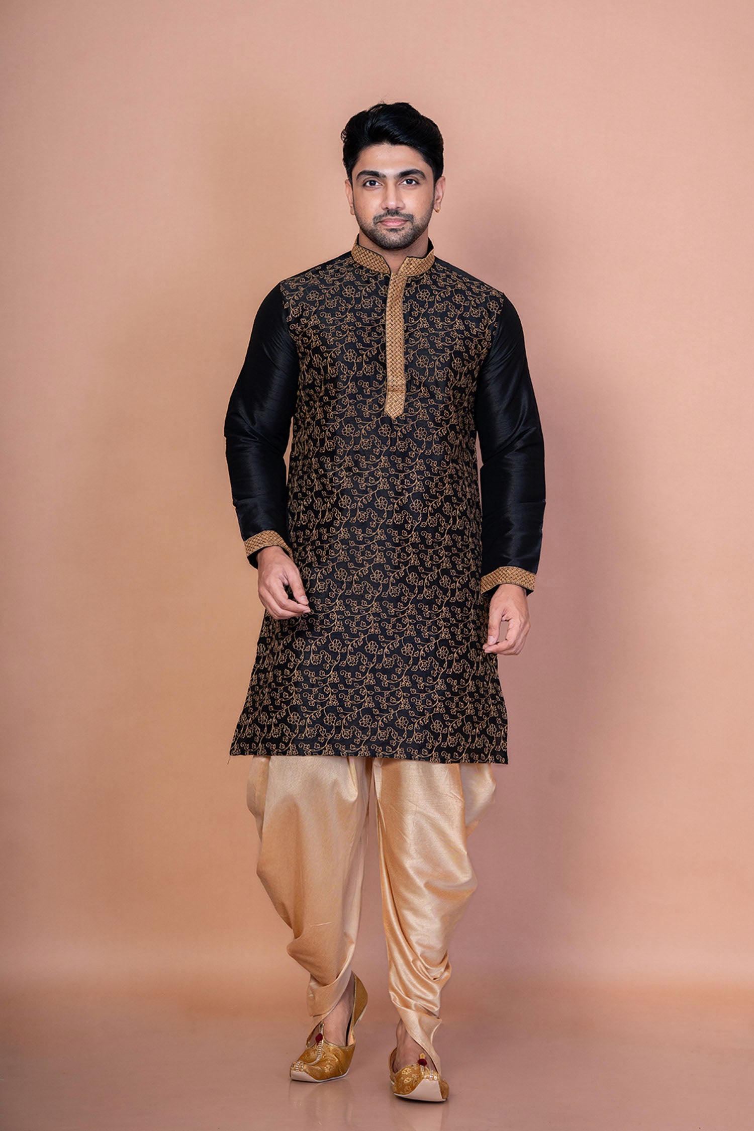 Black Banarasi Silk Embroidered Kurta Set