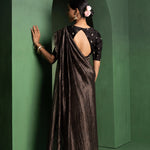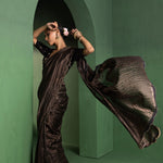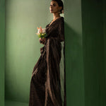 Black Chanderi Saree With Zari Stripes