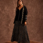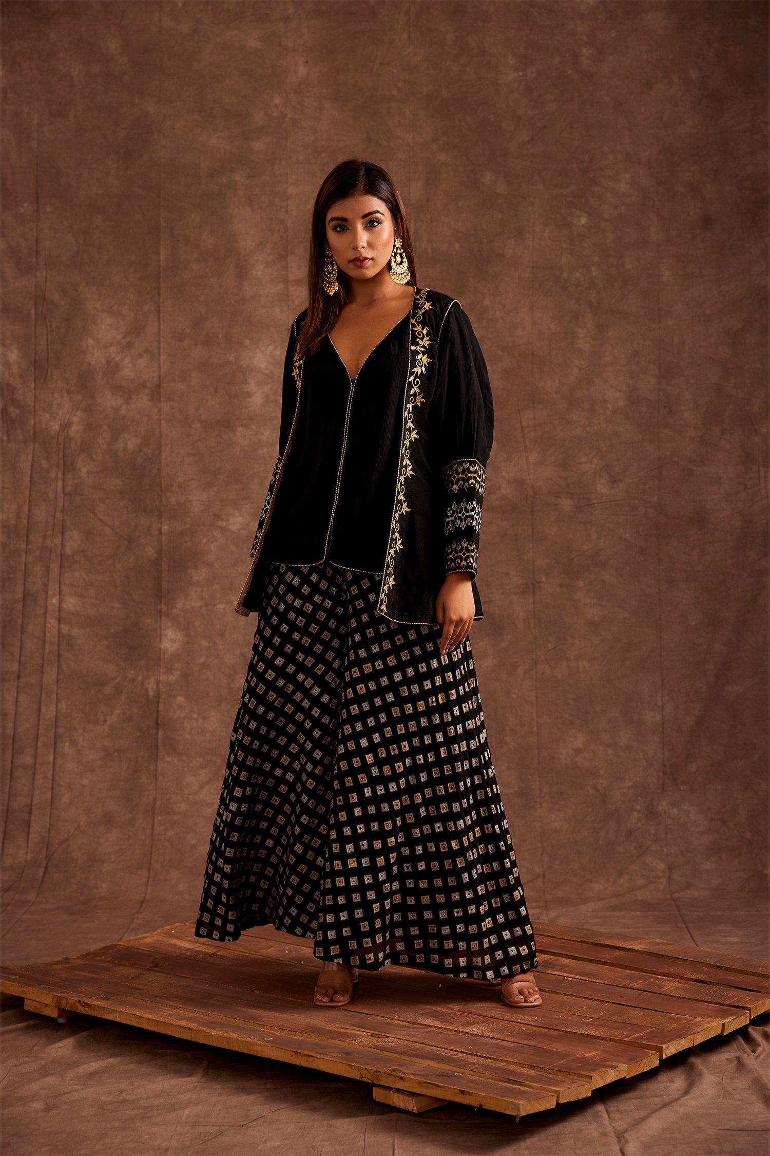 The beautiful black pure chinon sharara set with jacket for a majestic classy look in style.