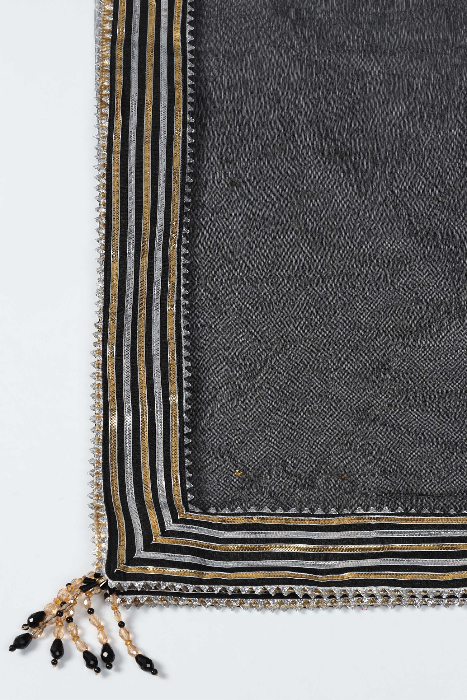 Black Raw Silk Designer Gota Patti Lehenga With Blouse And Dupatta