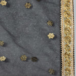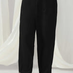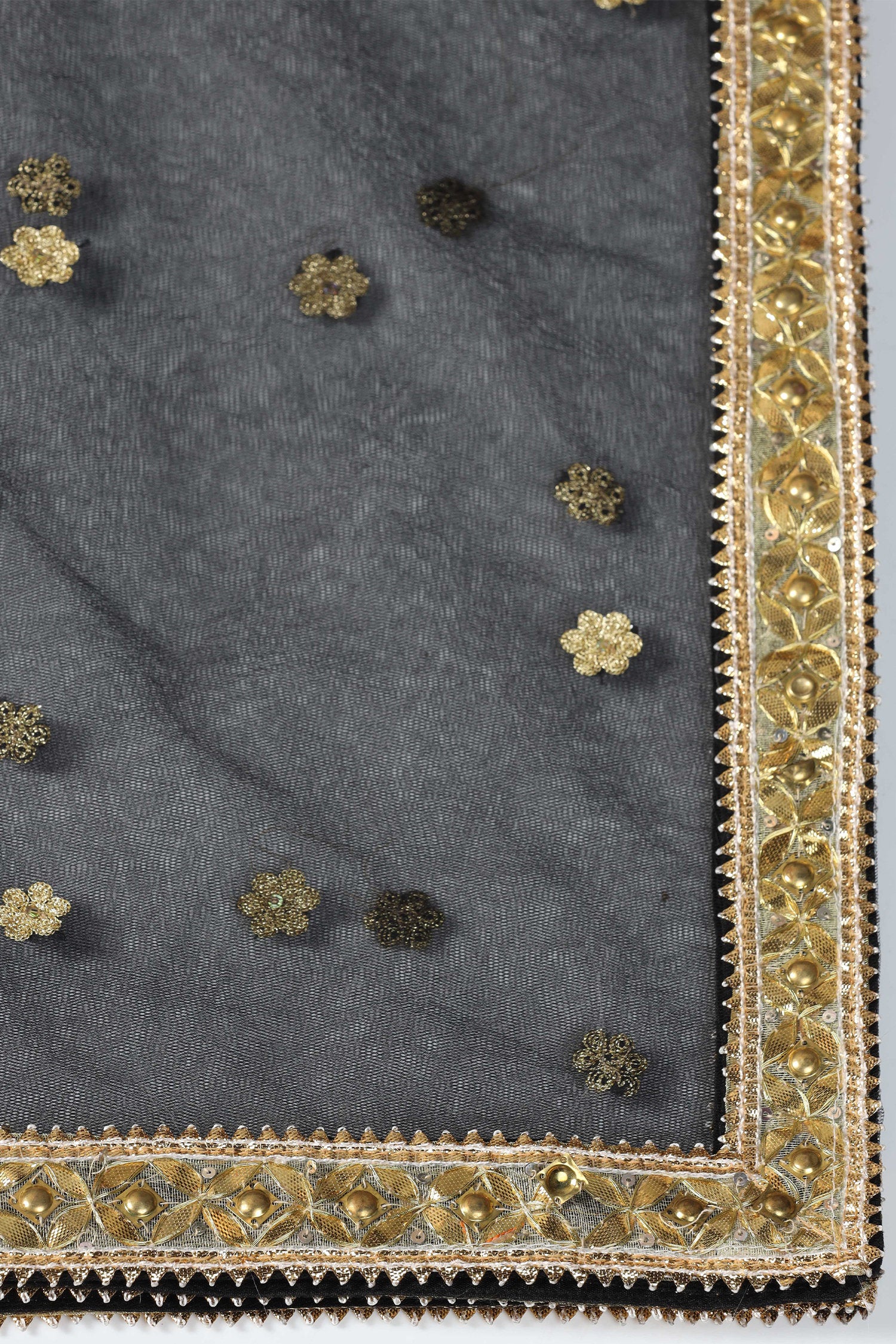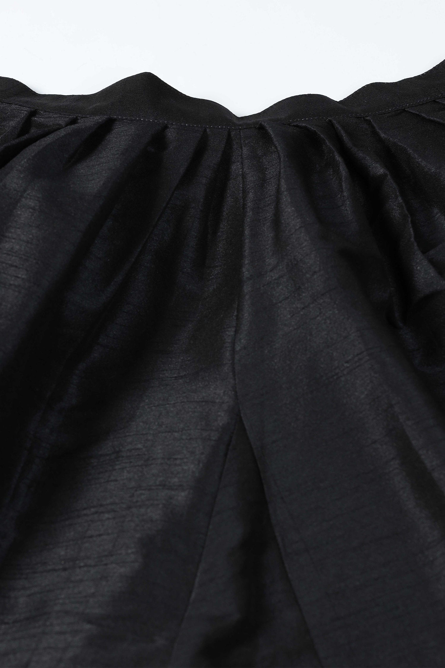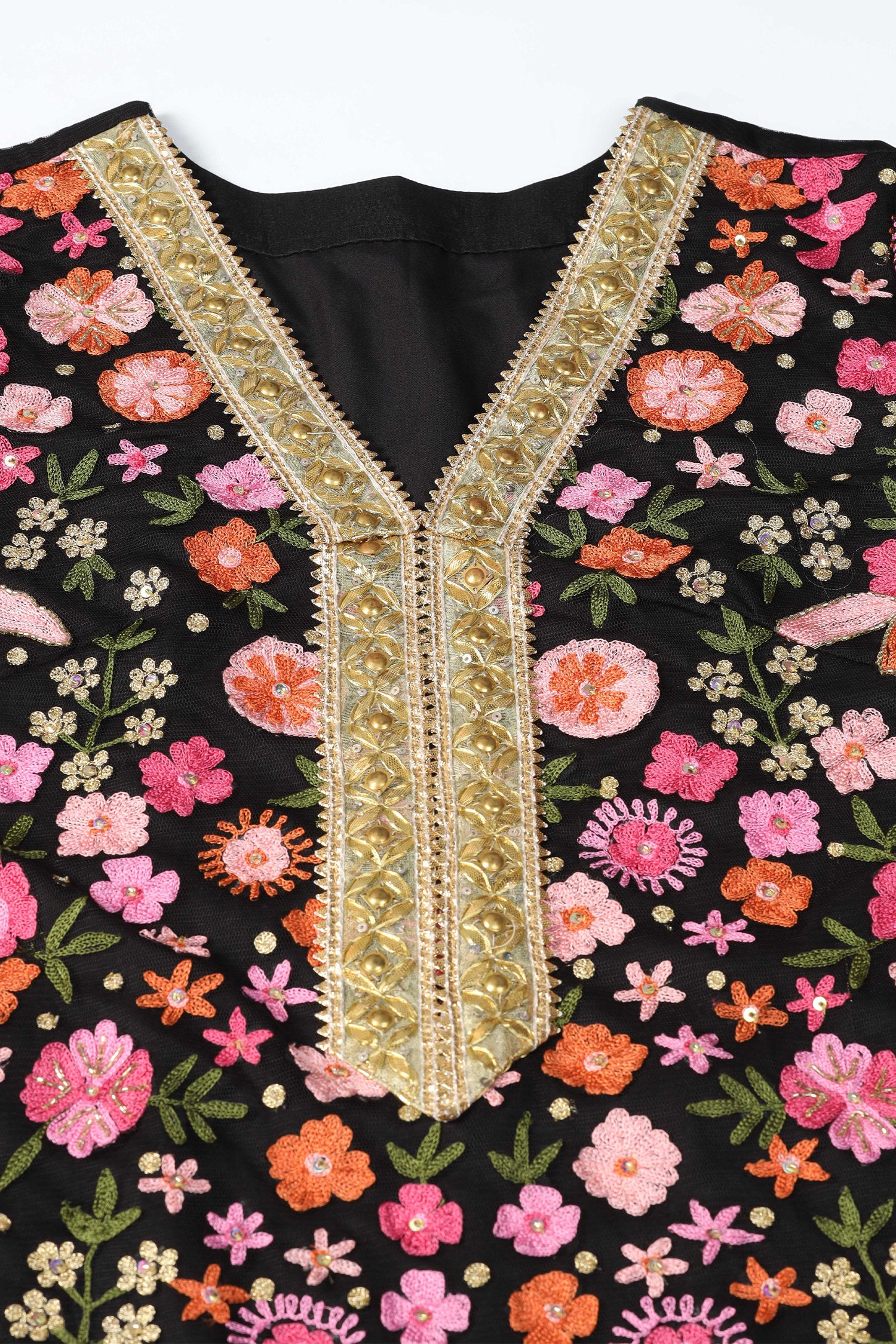 The black resham work suit with pants and dupatta for a classy yet simple touch with tradition.