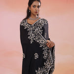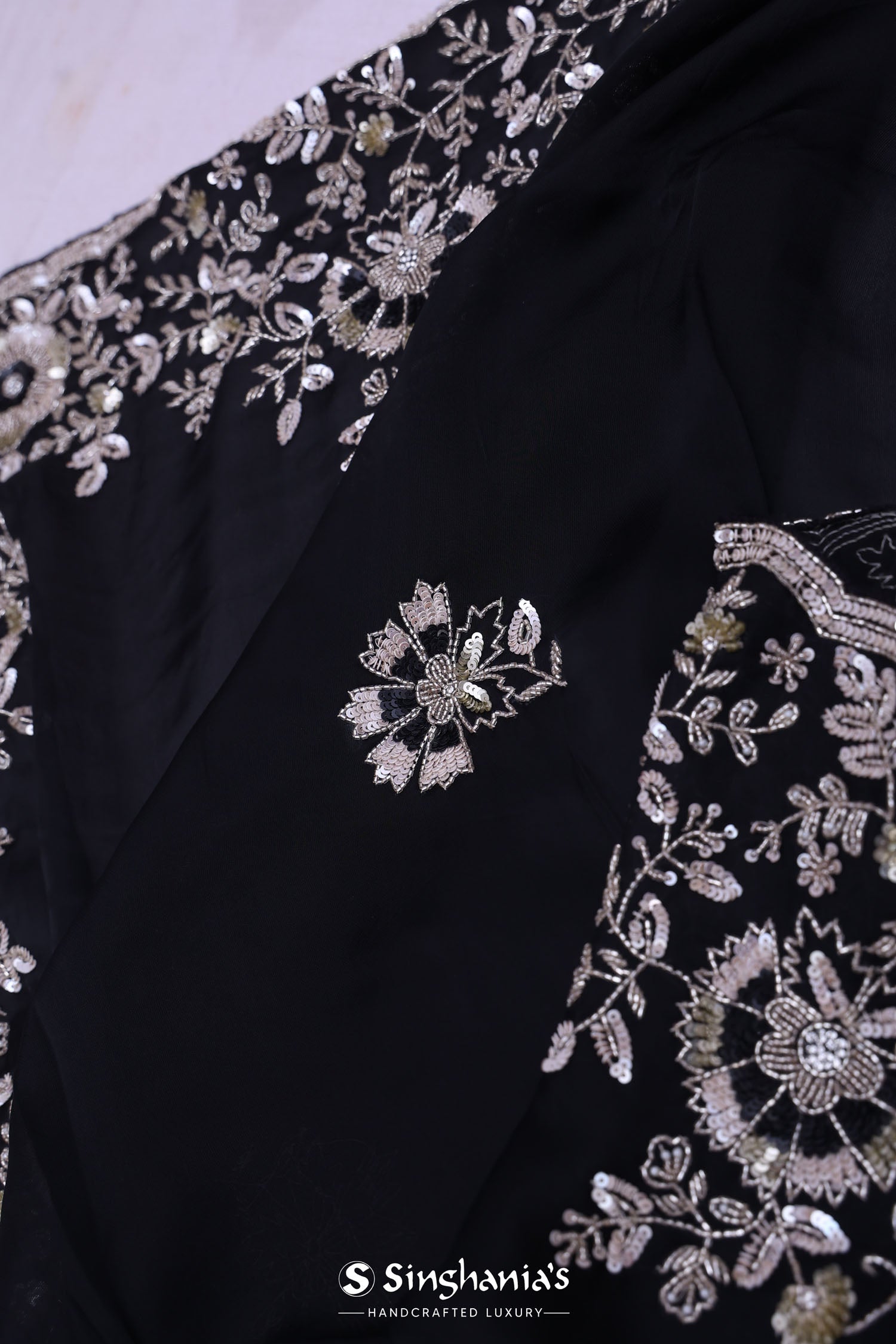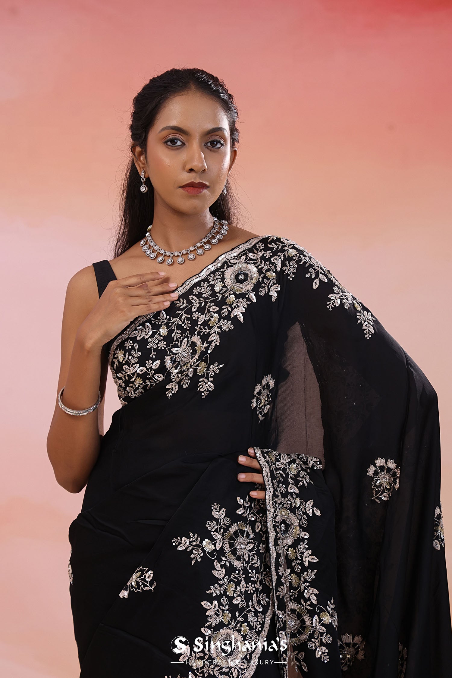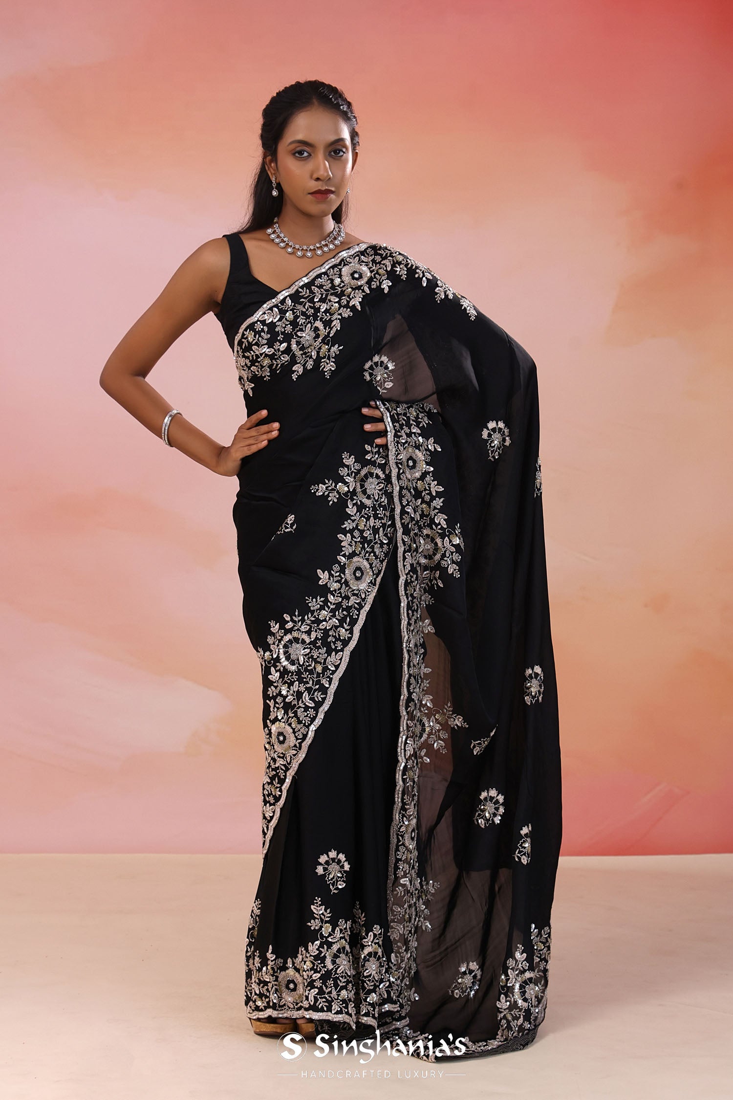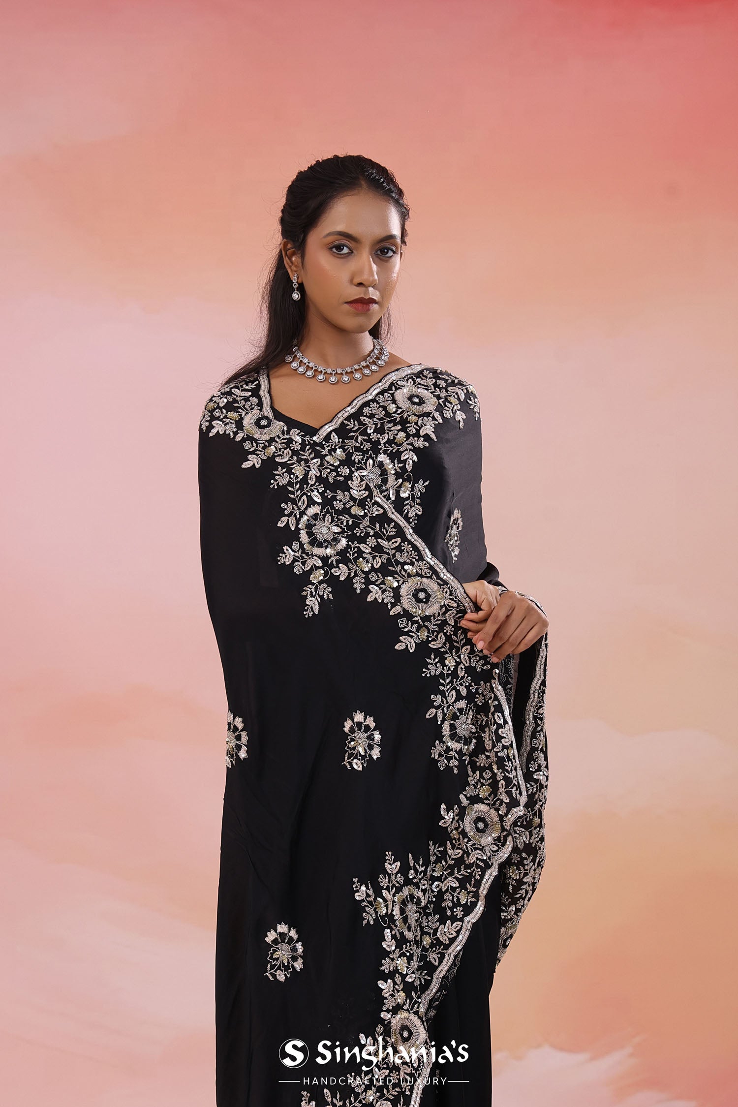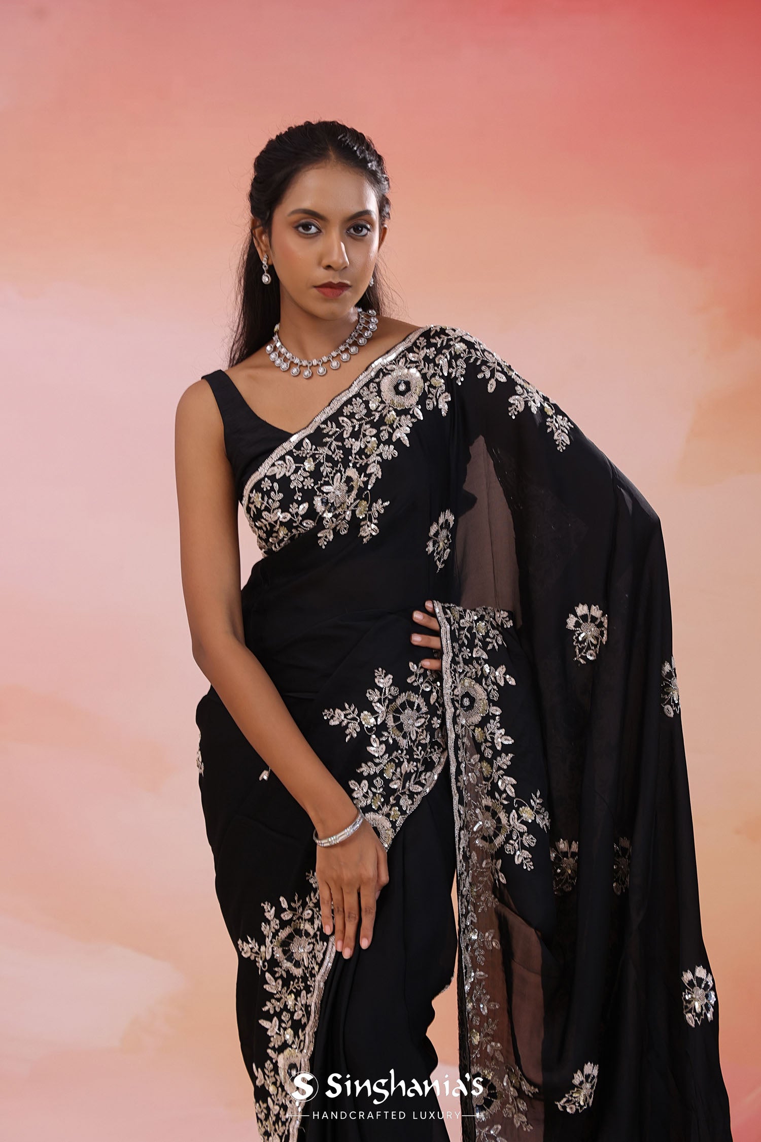 Black Satin Silk Saree With Sequin And Cutdana Work