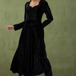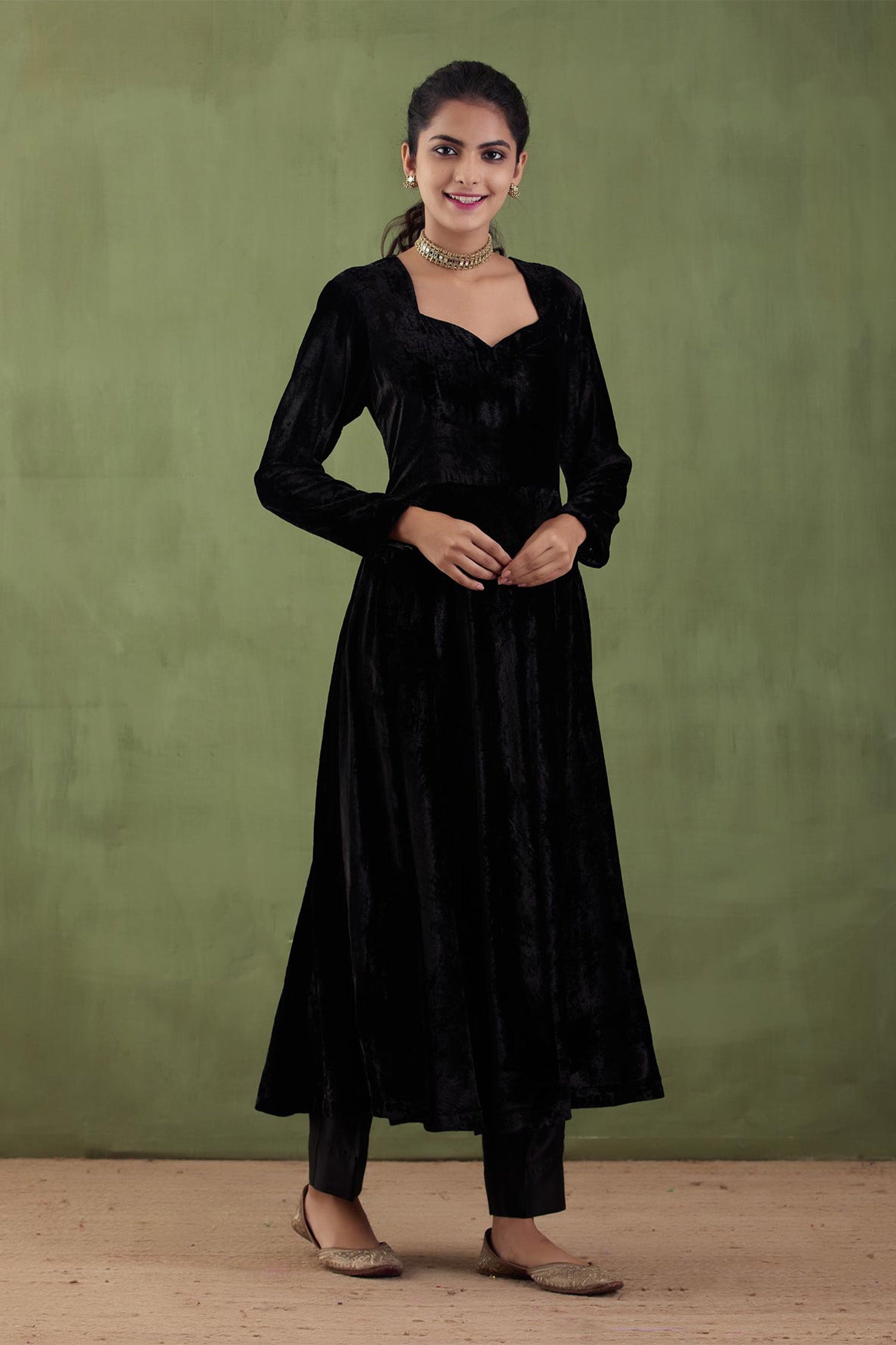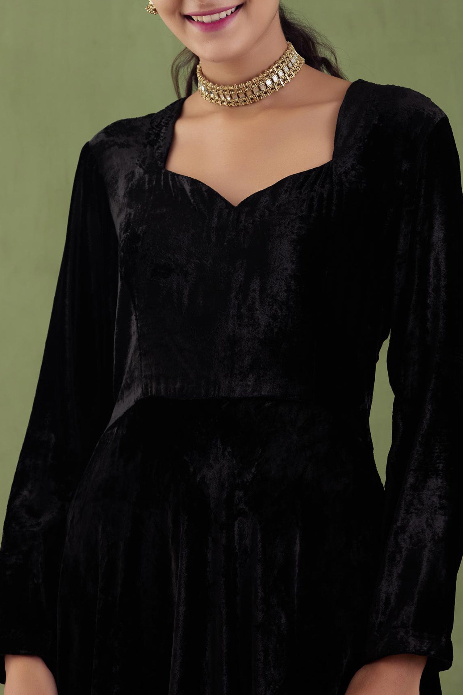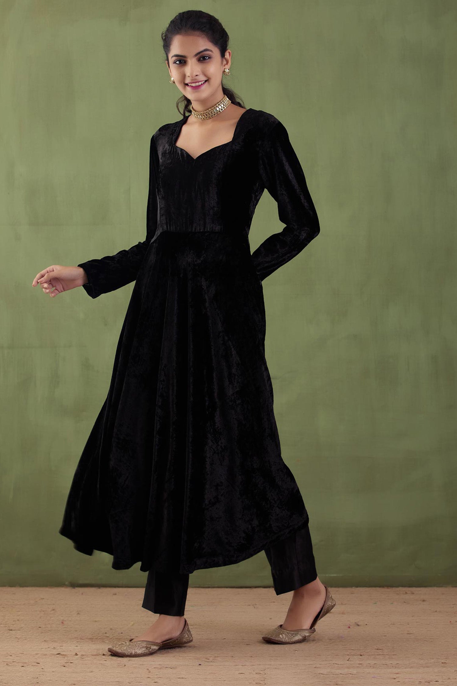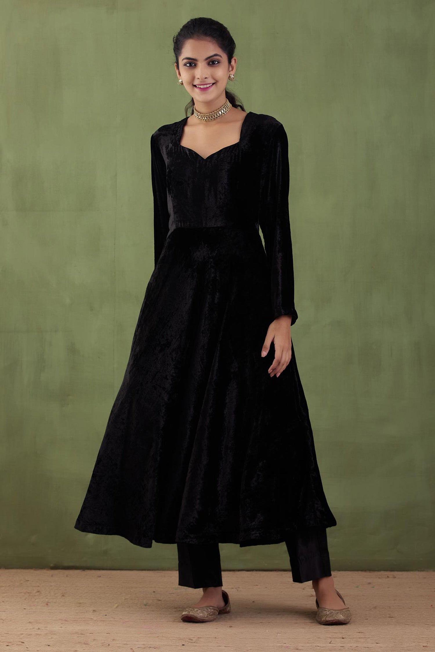 Black Silk Velvet Anarkali Kurta And Pant Set