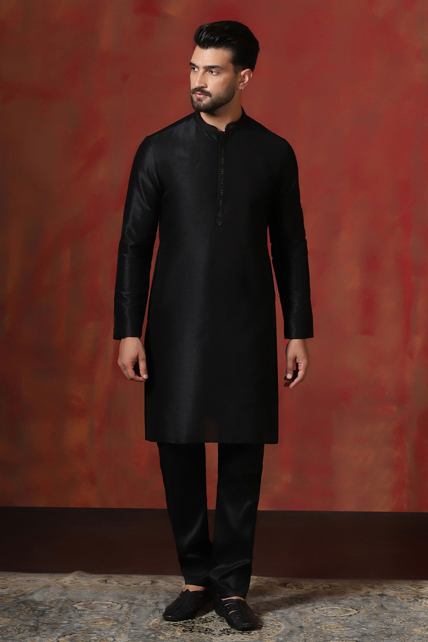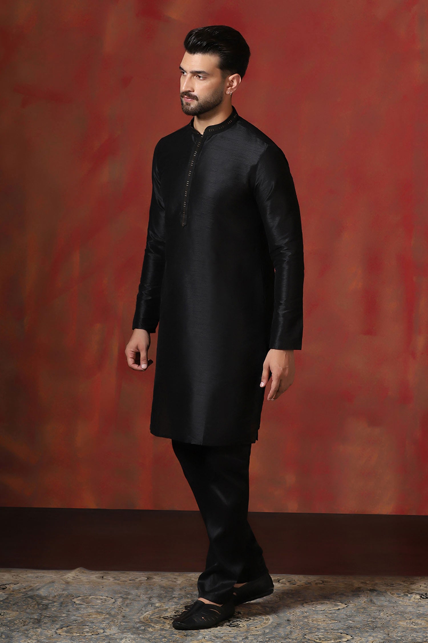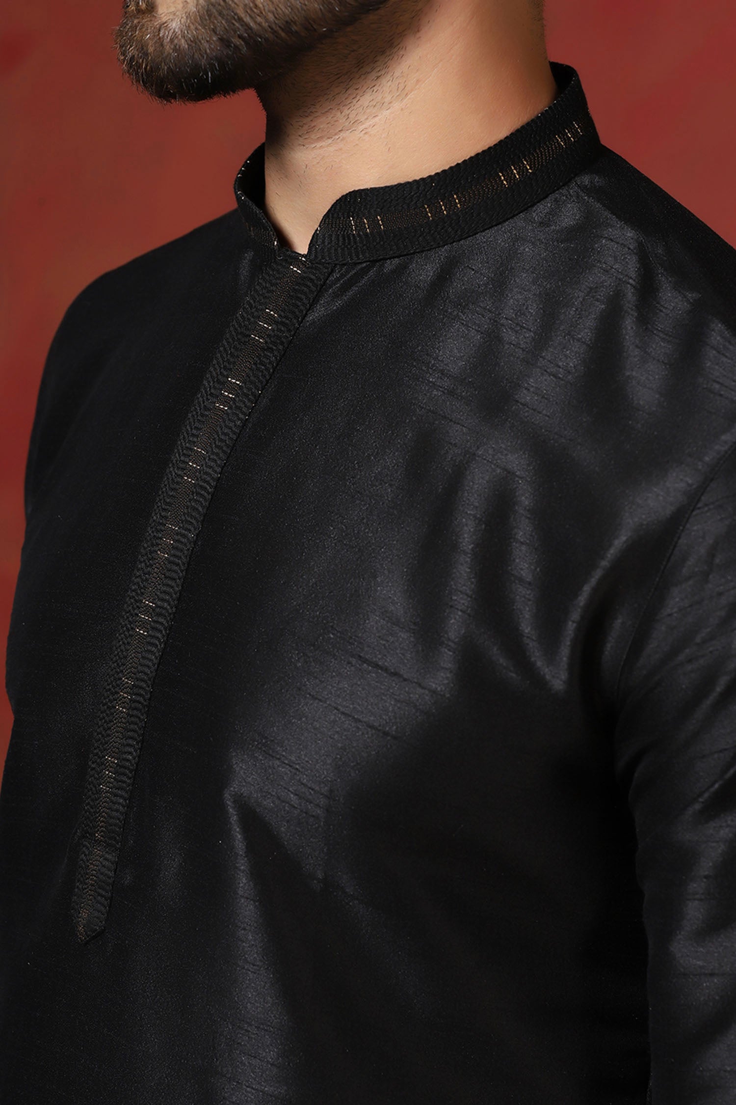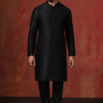 Black Solid Dupion Kurta Set