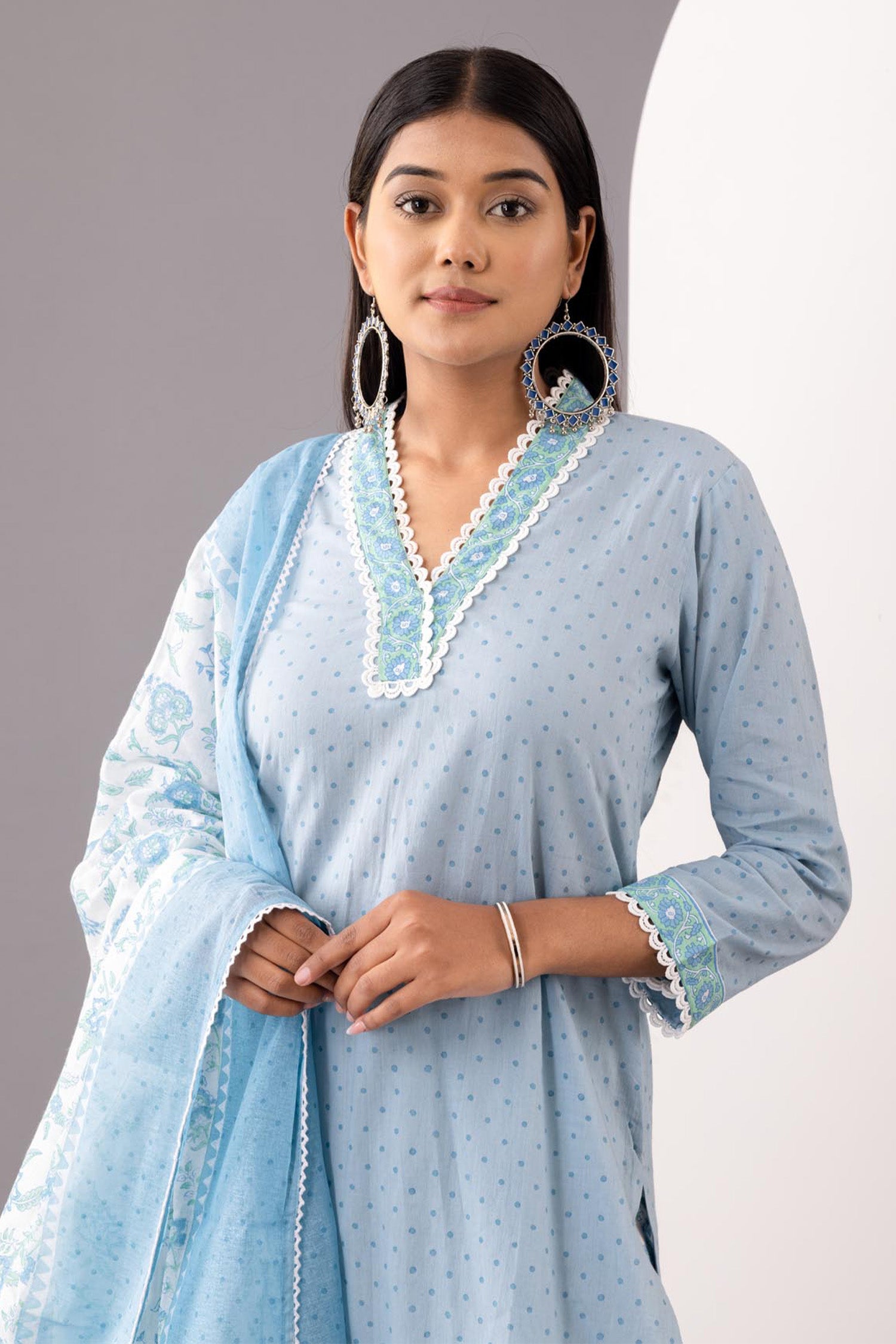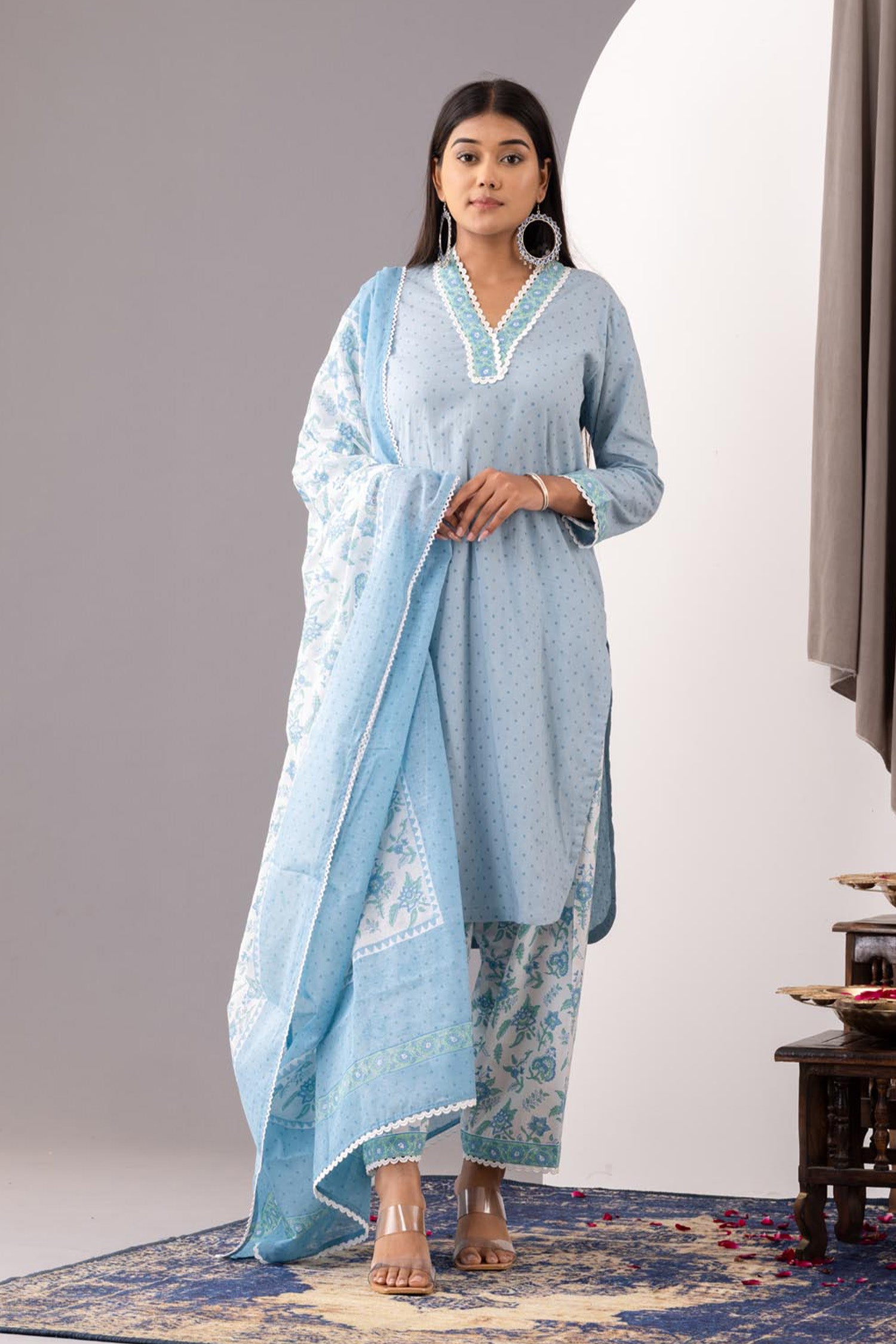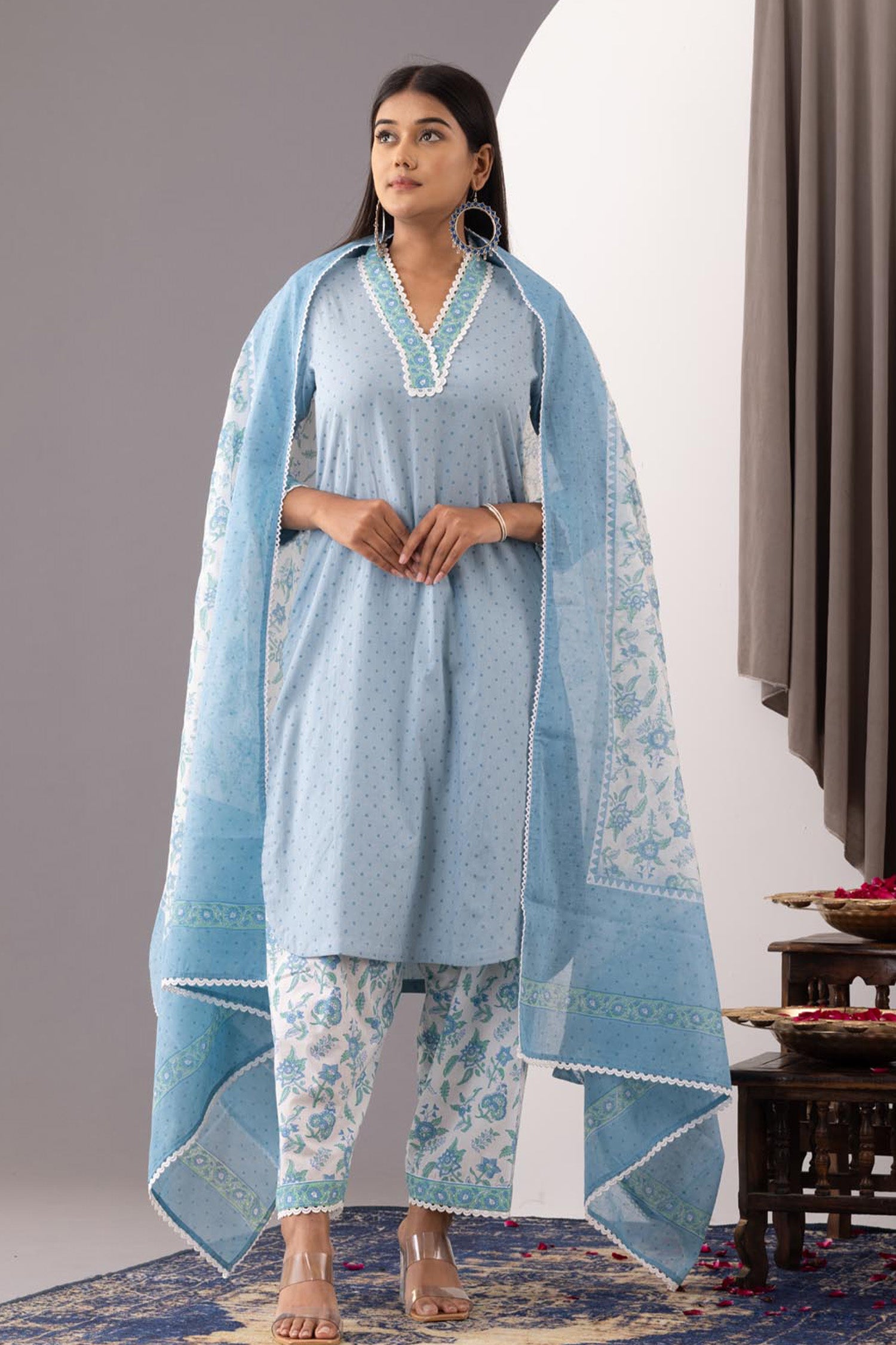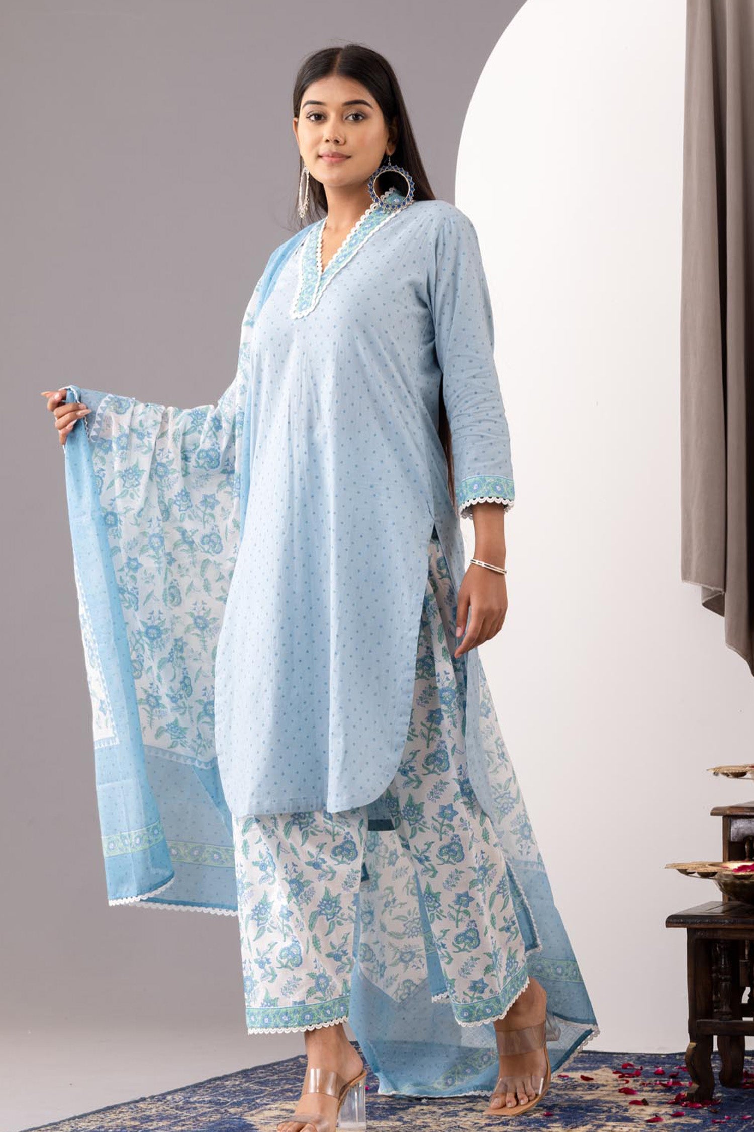 The Hand Block Printed Floral Kurta salwar set along with the matching pant and dupatta for an ethnic wear with the desired comfort for an Elegant look.
