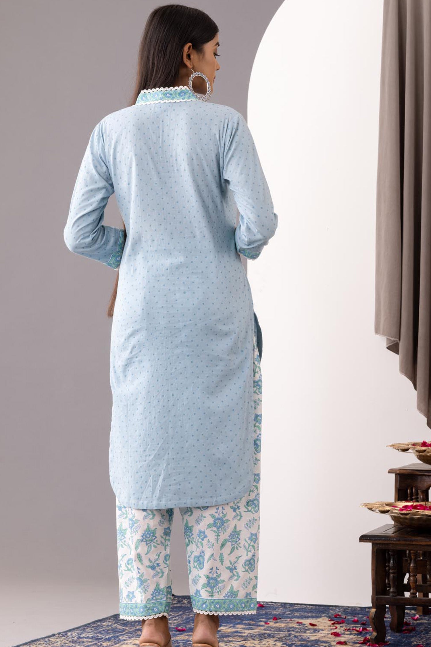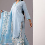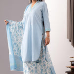 Block Printed Blue Cotton Kurta And Salwar Set