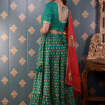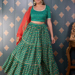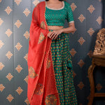 Block Printed Green Cotton Silk Lehenga Set