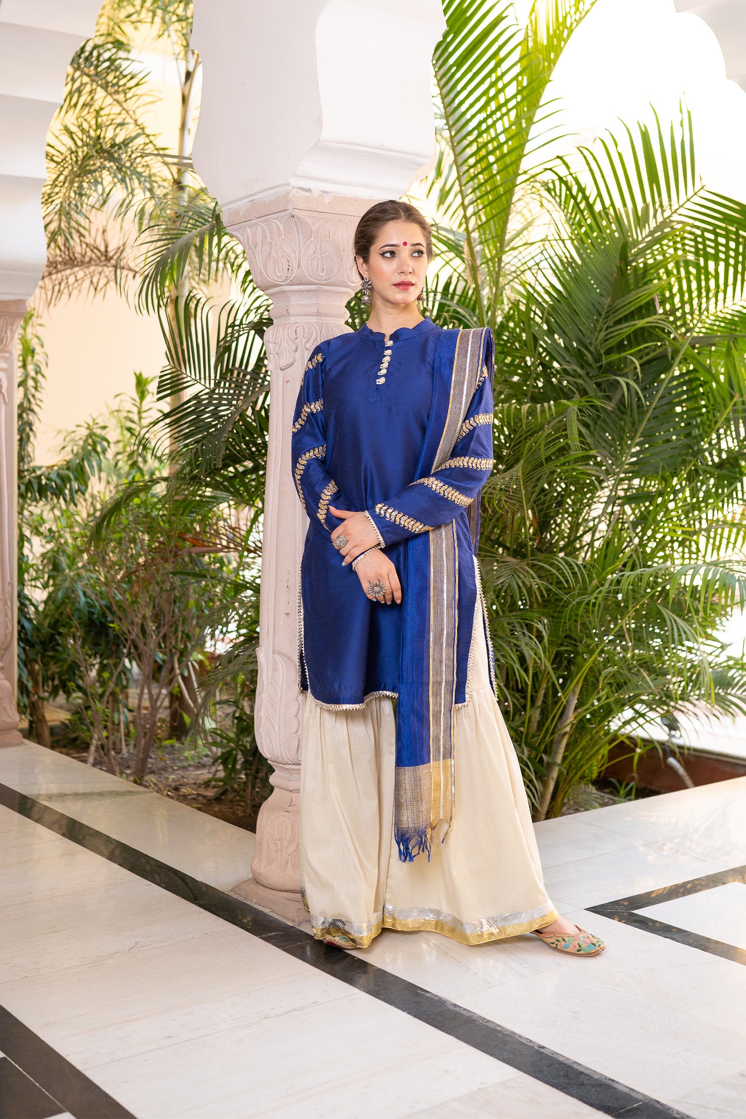 Blue Cotton Silk Gota Patti Gharara Suit Set
