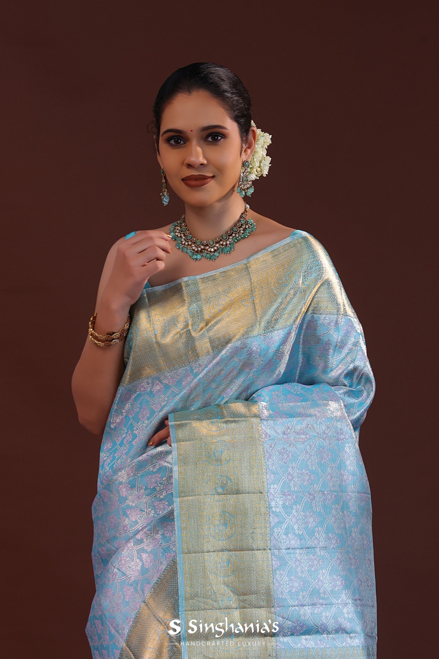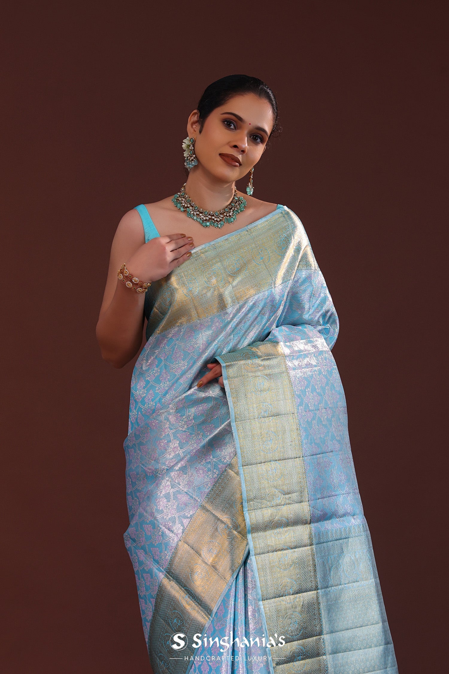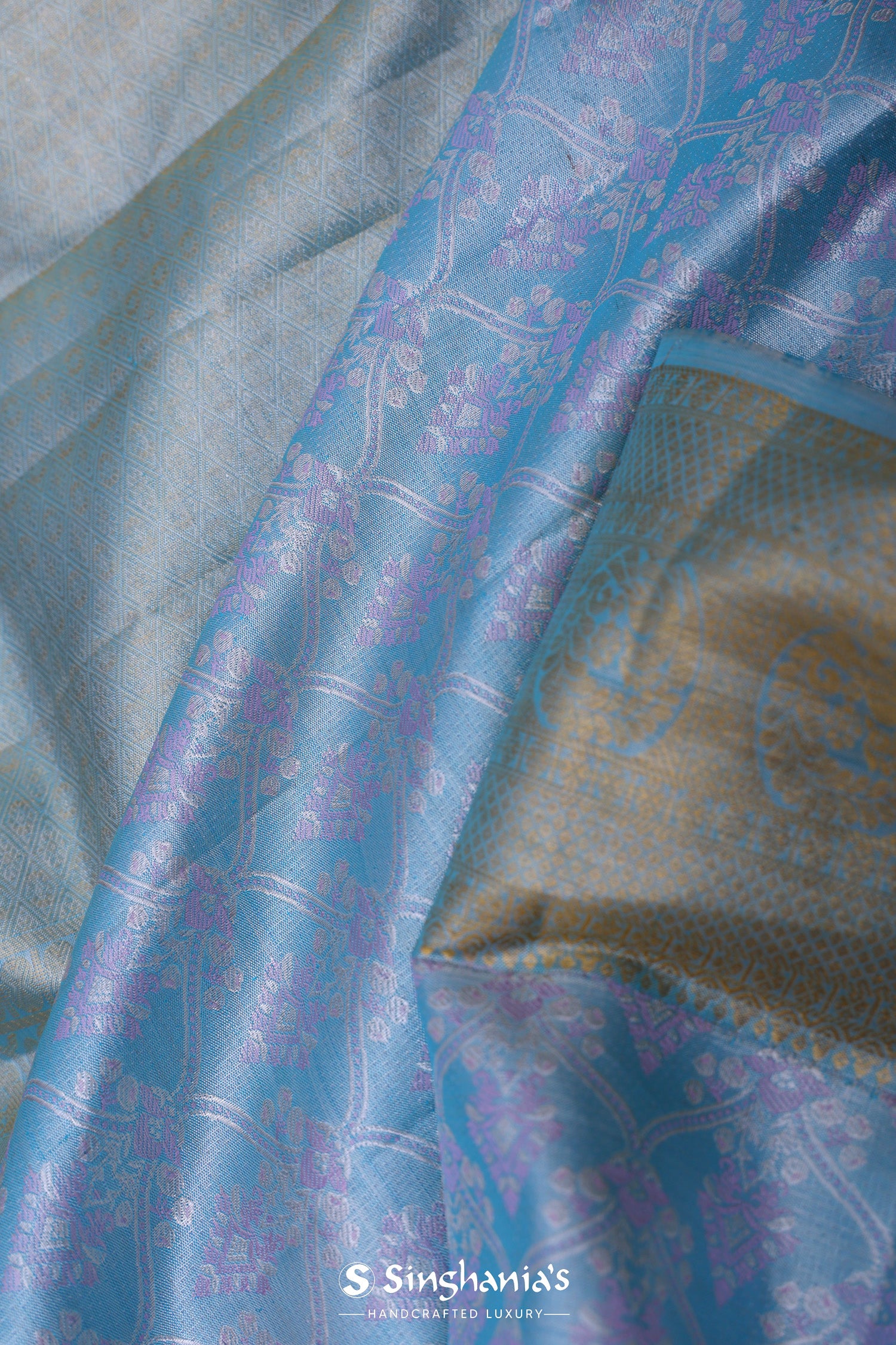 Blue Kanjivaram Silk Saree With Floral Jaal
