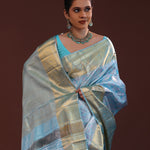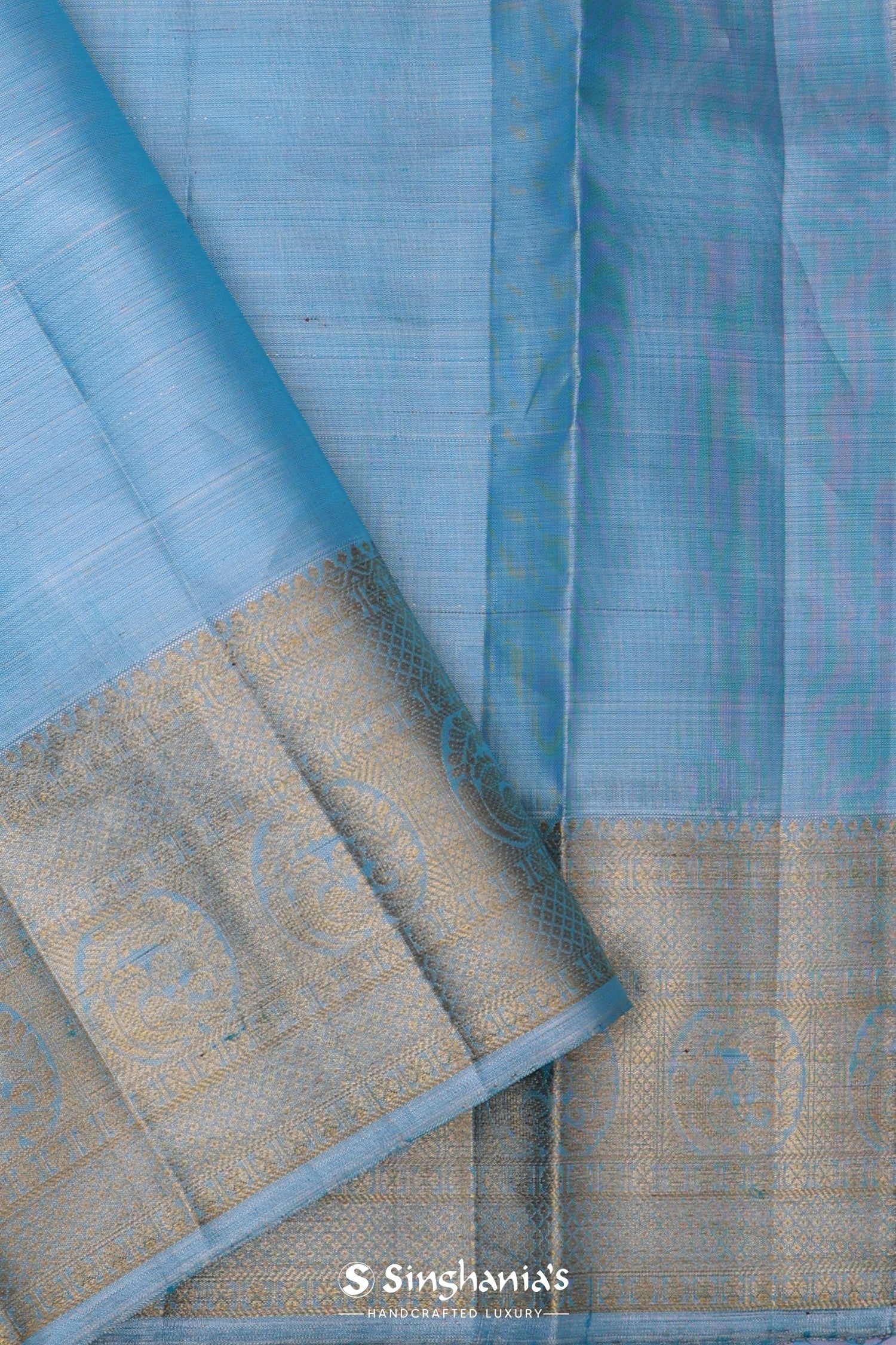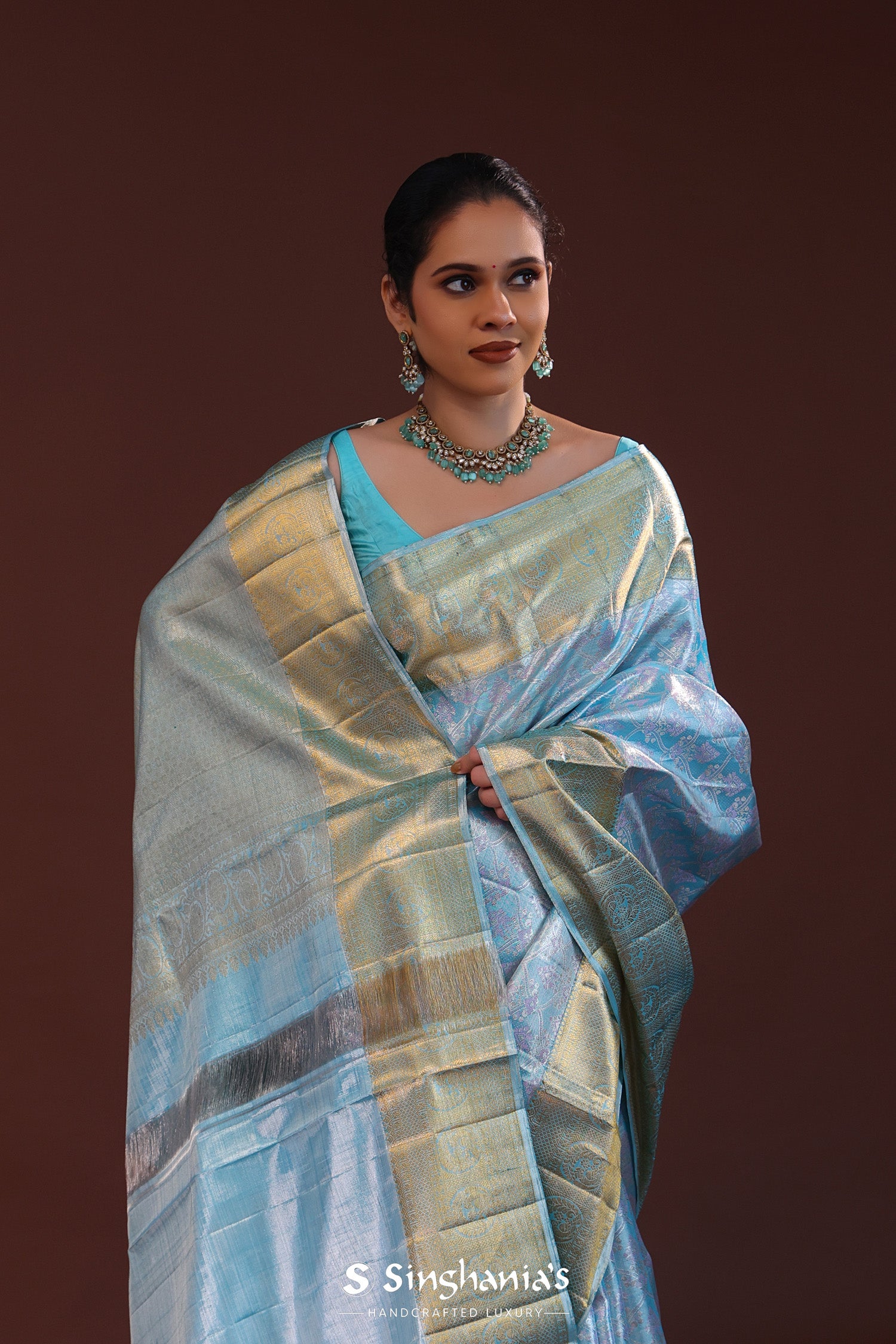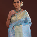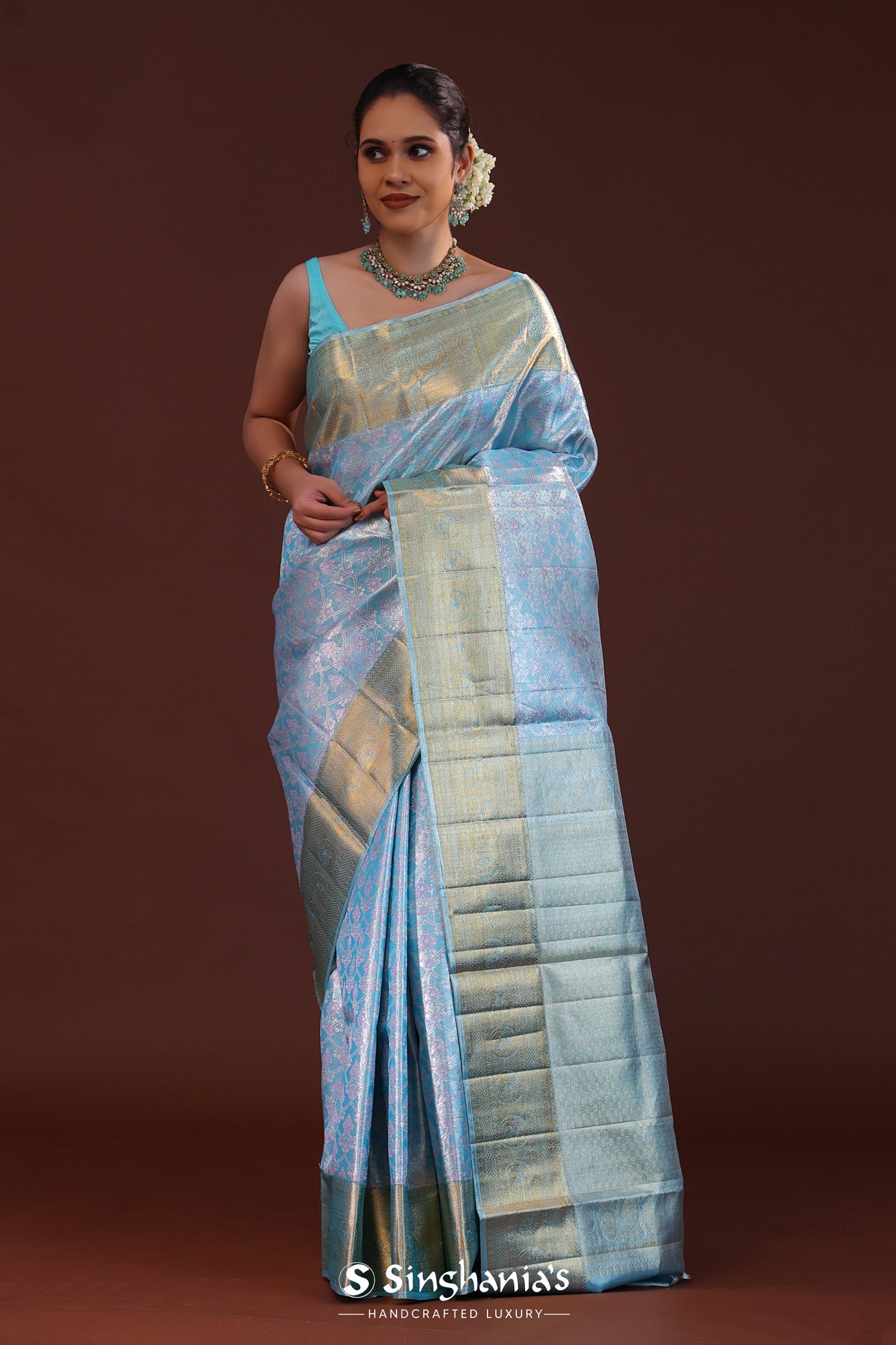 Blue Kanjivaram Silk Saree With Floral Jaal