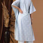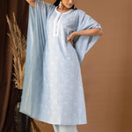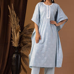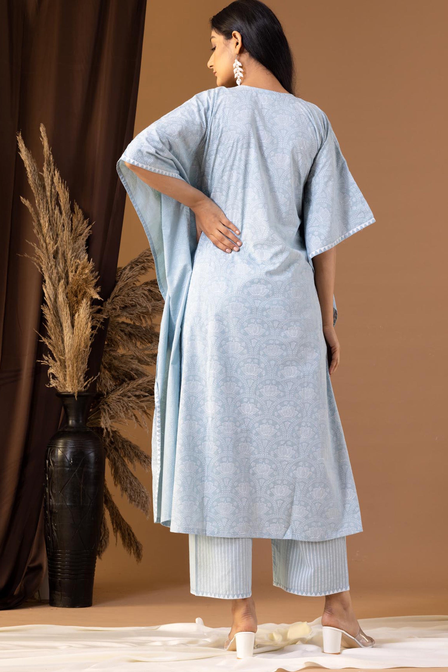 Blue Khadi Printed Cotton Kaftan With Palazzo Set