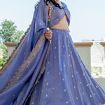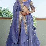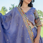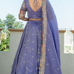 Bluish Lilac Tissue Embroidered Lehenga Set