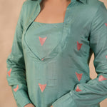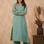 Bright Persian Green Santoon Embroidered Kurti Set