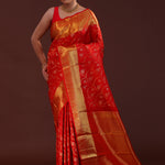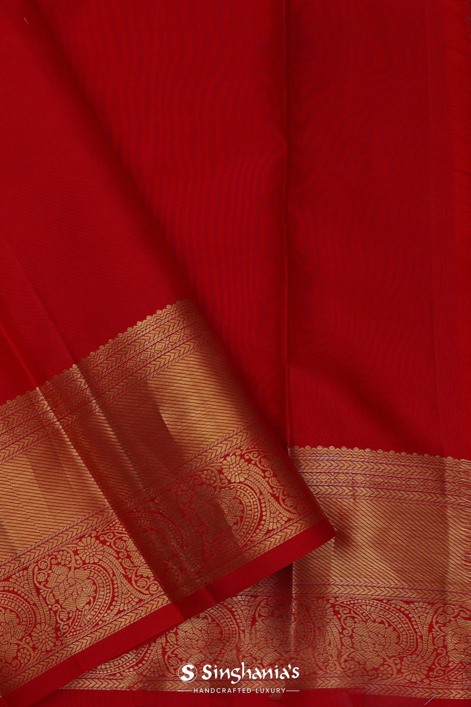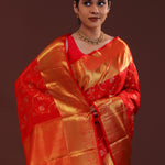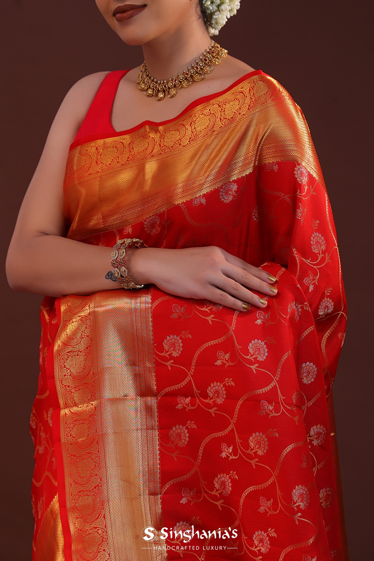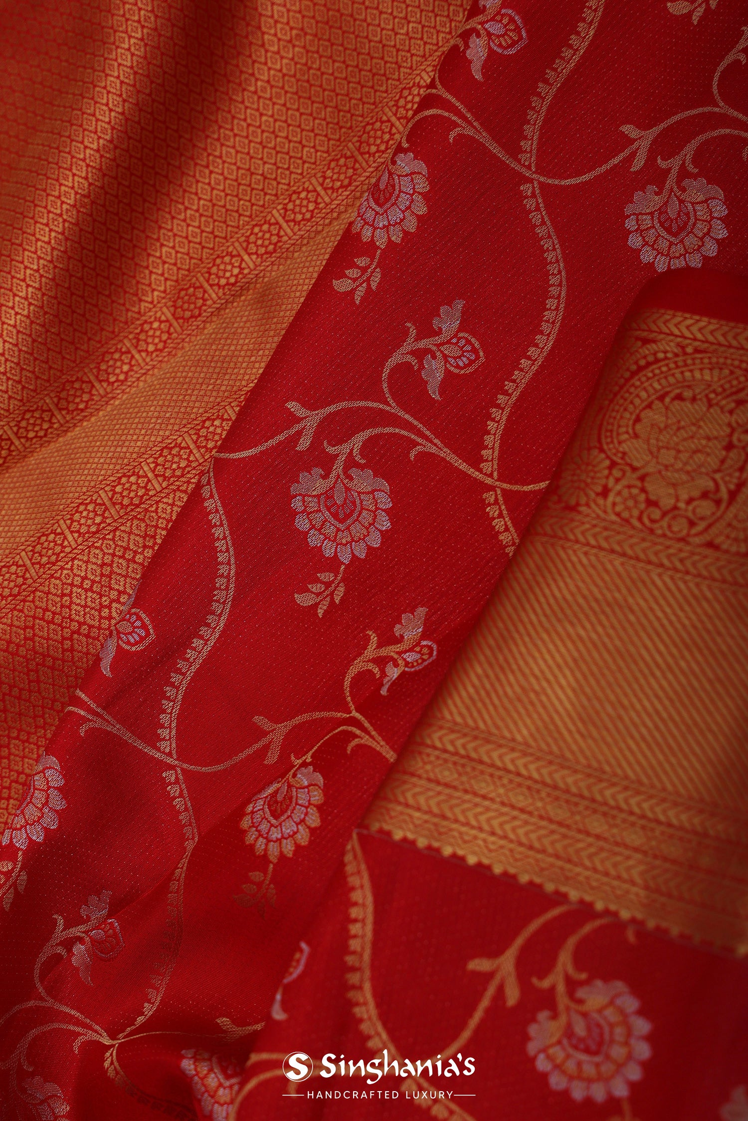Bright Red Kanjivaram Silk Saree With Floral Jaal