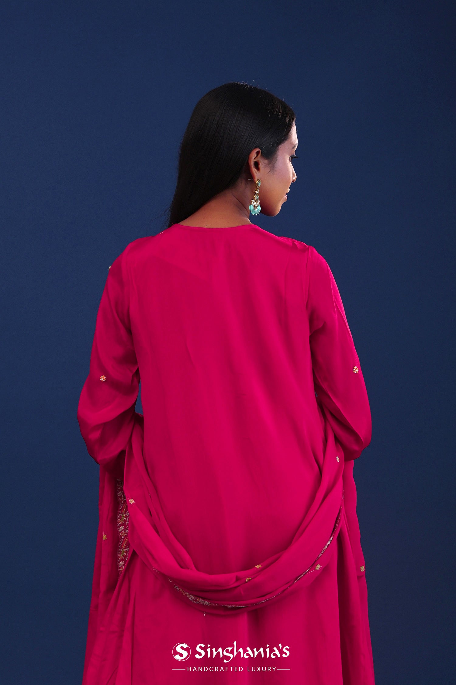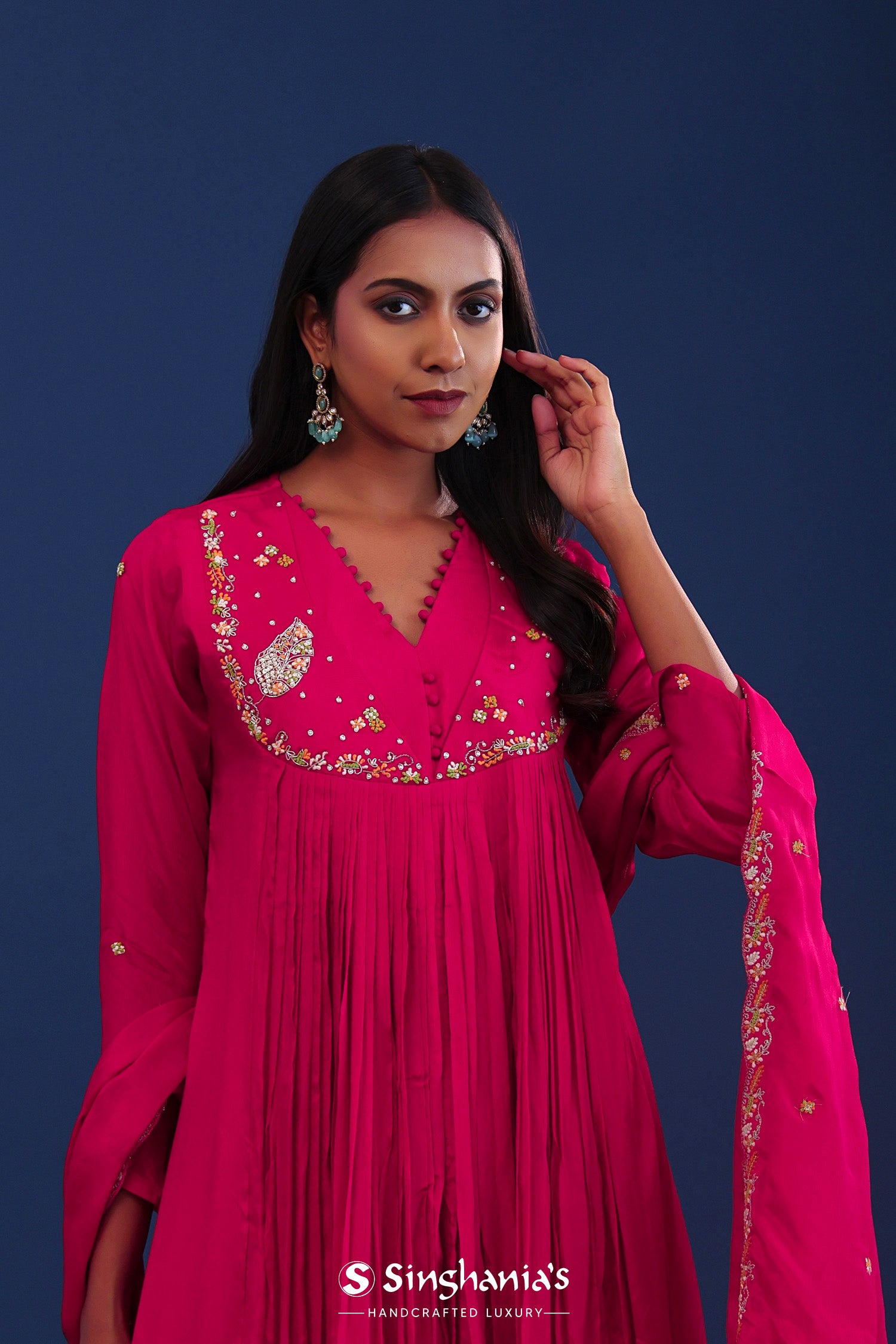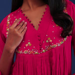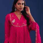 Bright Royal Pink Chiffon Thread Work Kurti Set
