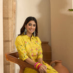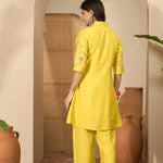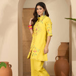 Bright Yellow Floral Embroidered Polyester Co-Ord Set