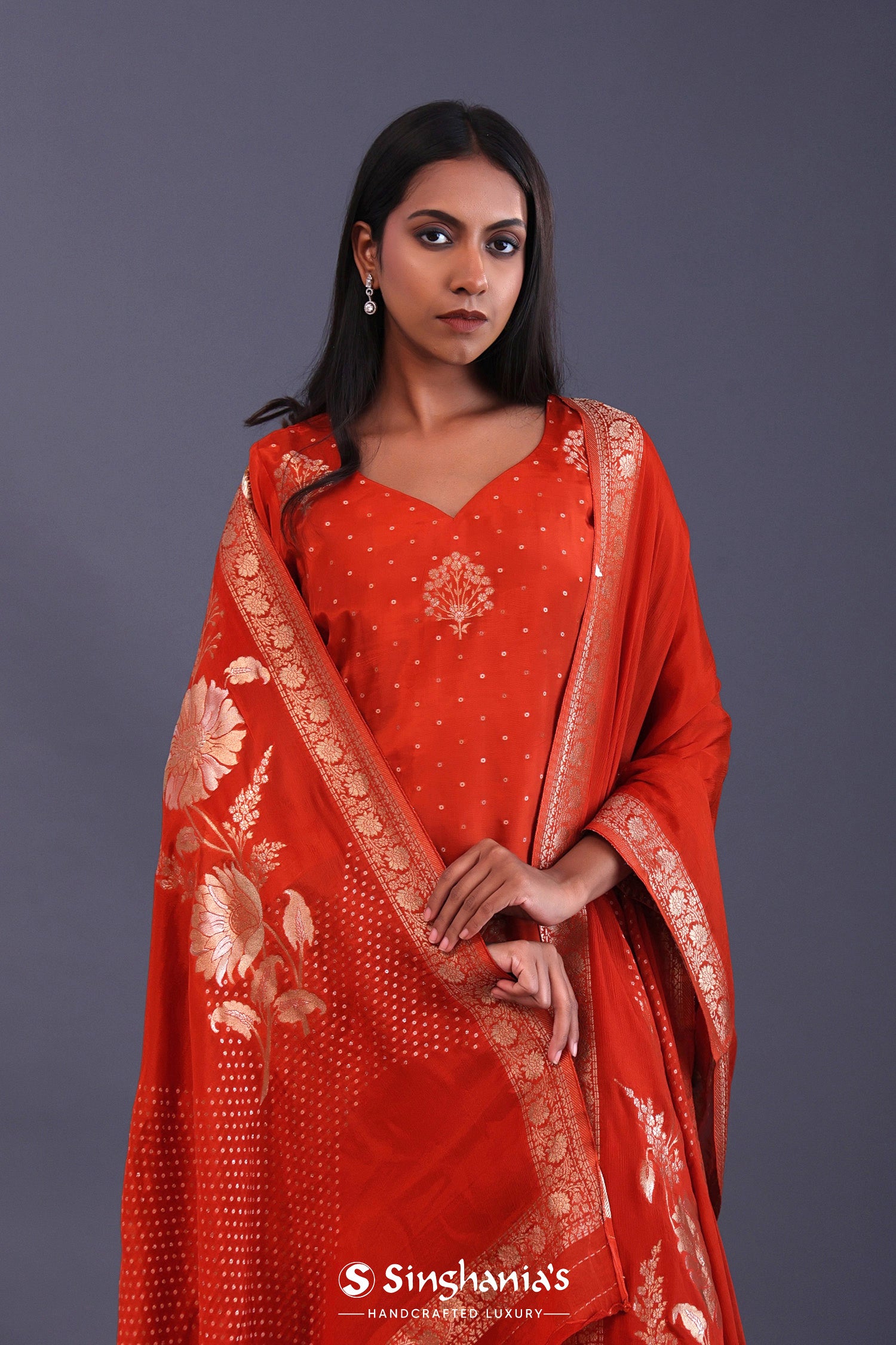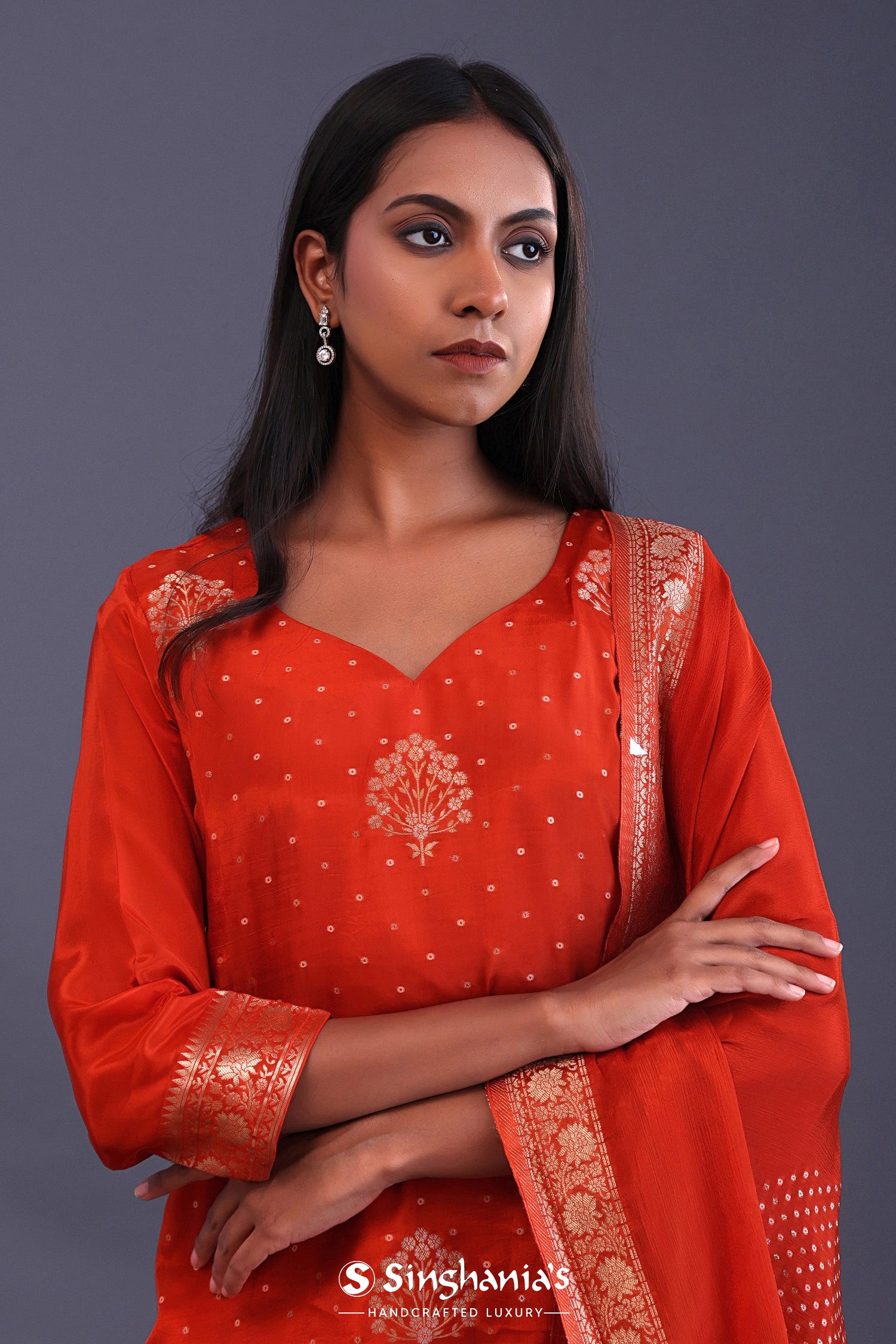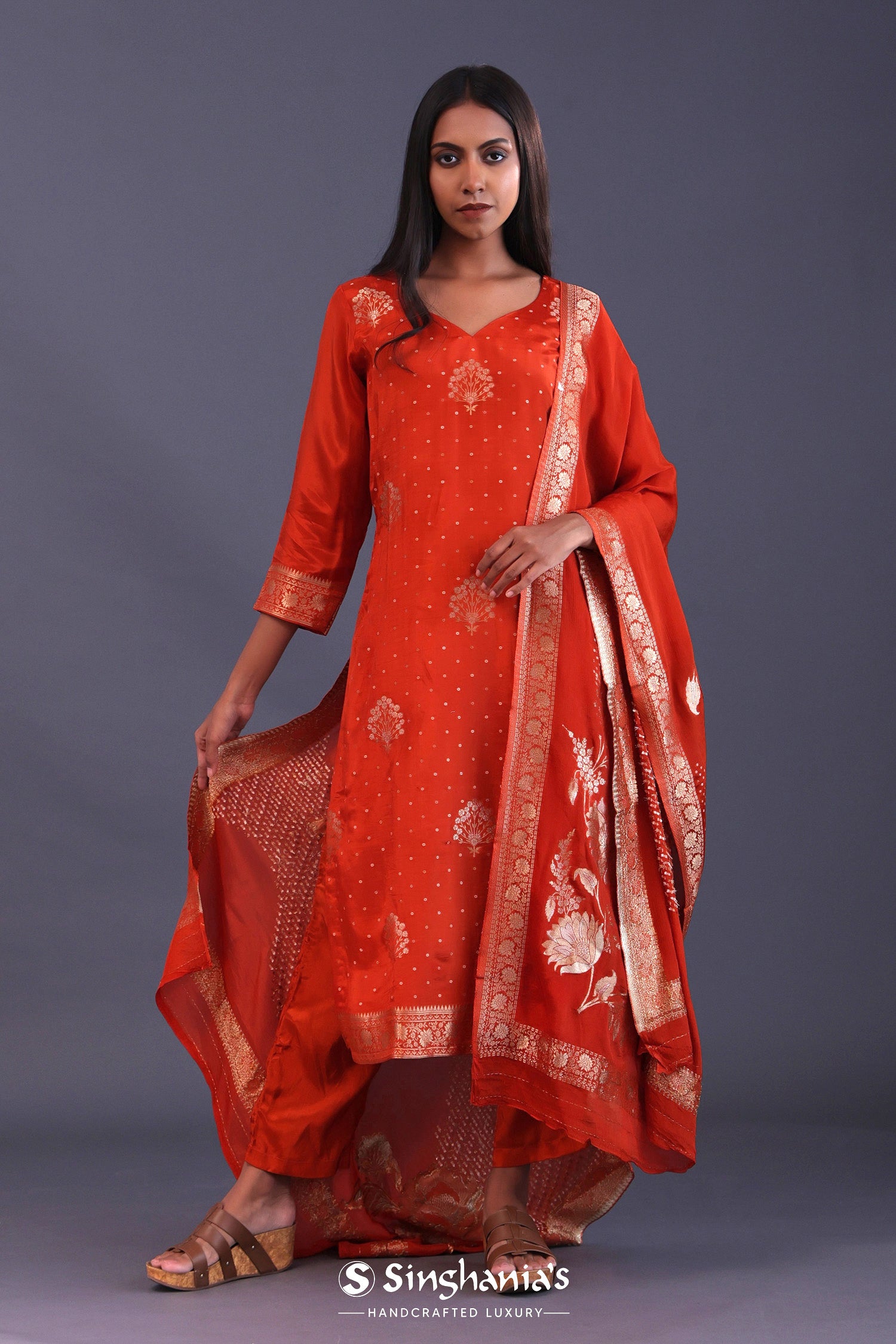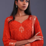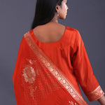 Candy Red Banarsi Silk Butti Kurti Set