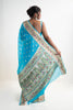 Capri Blue Banarasi Kota Silk Saree With Floral Patterns
