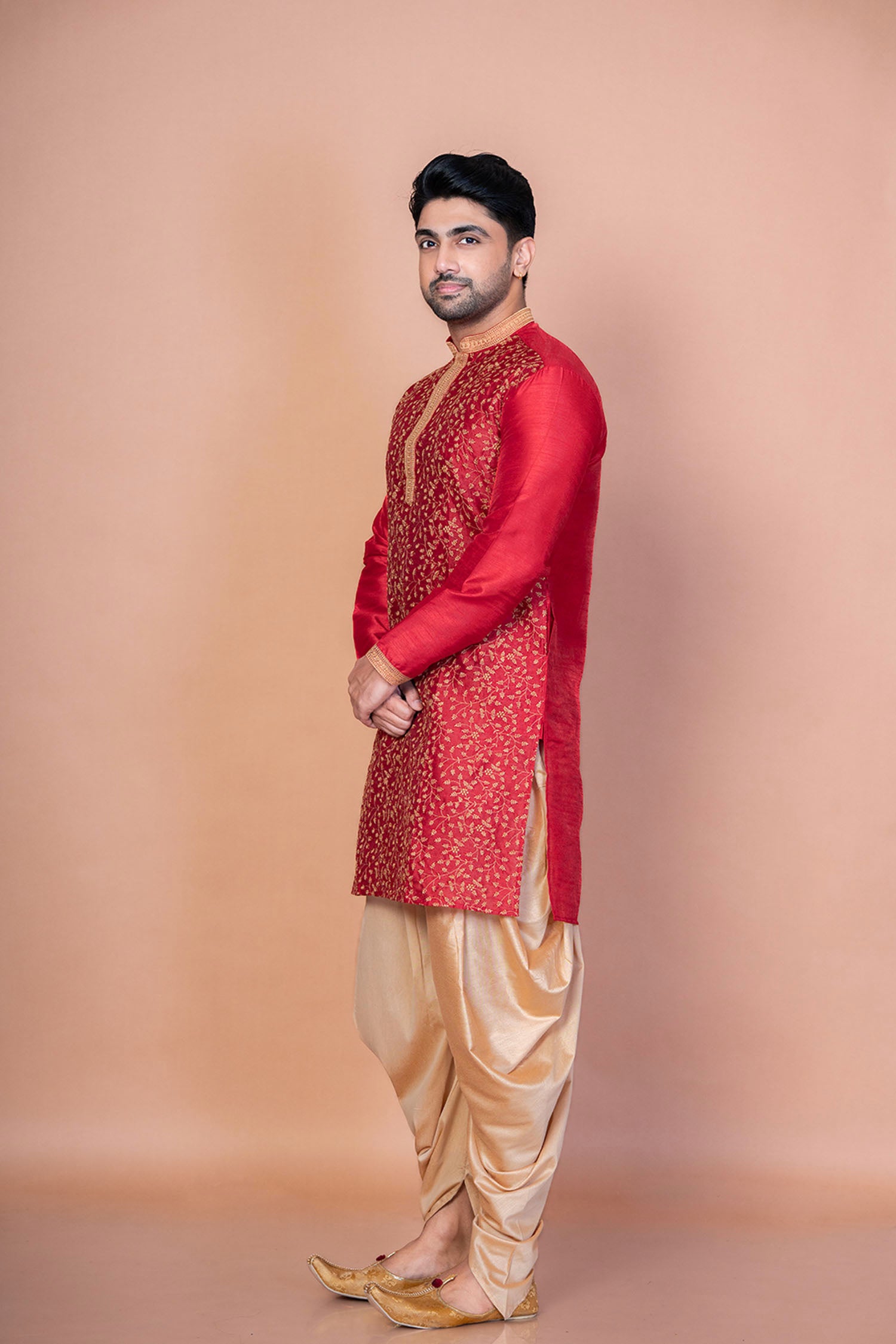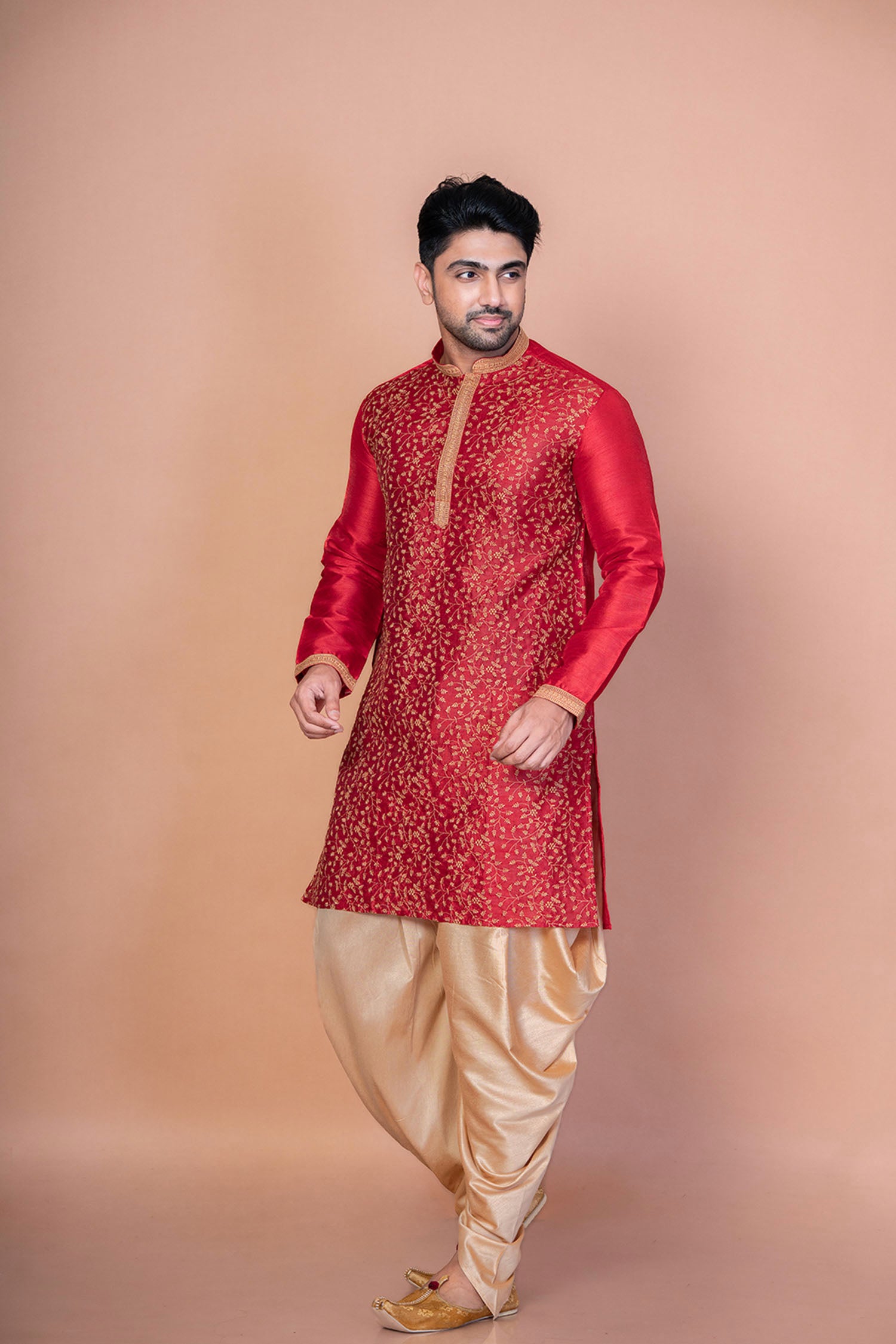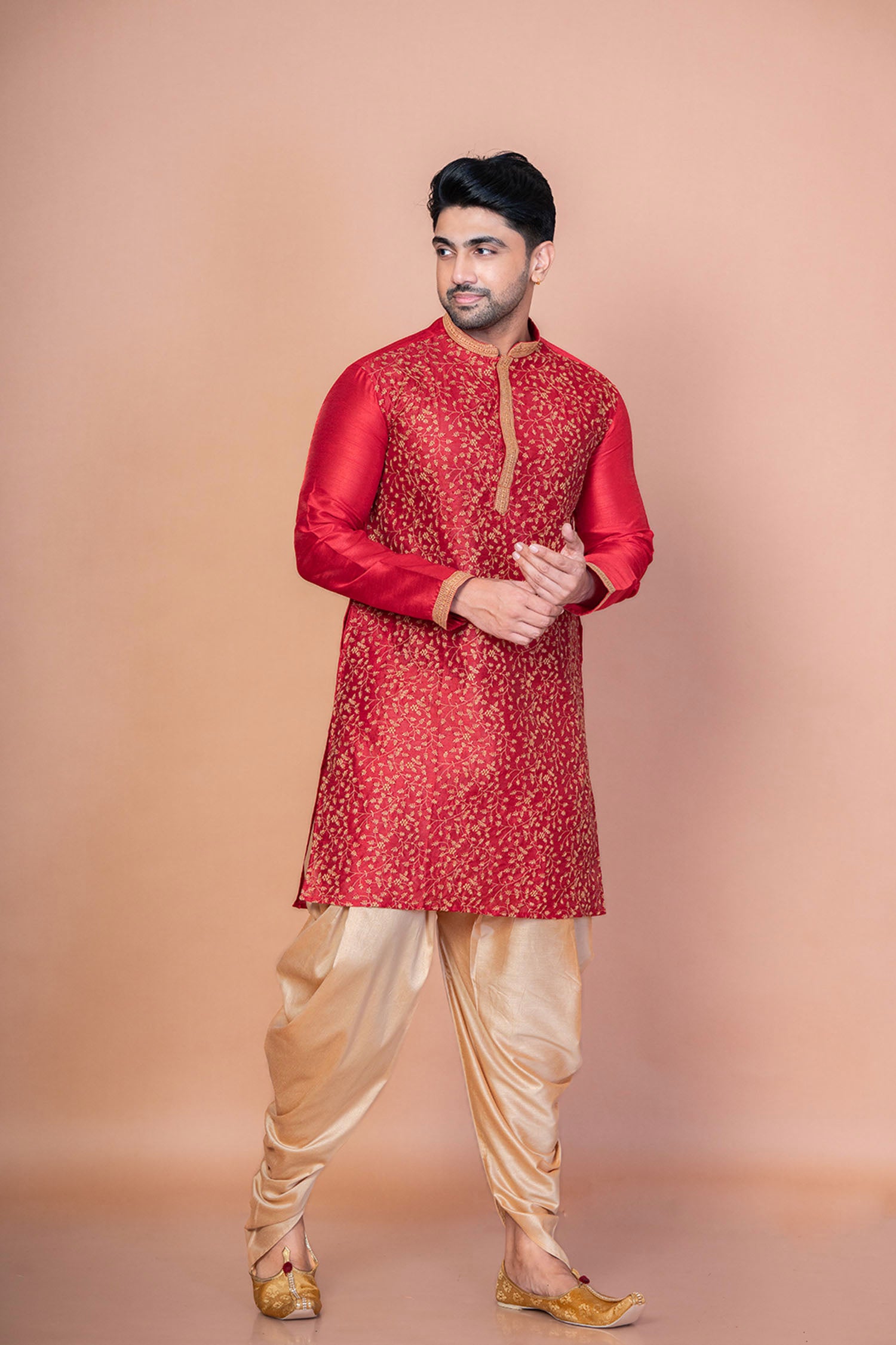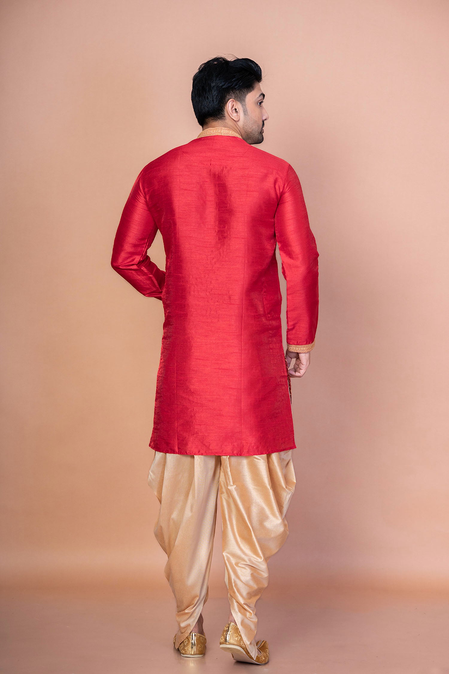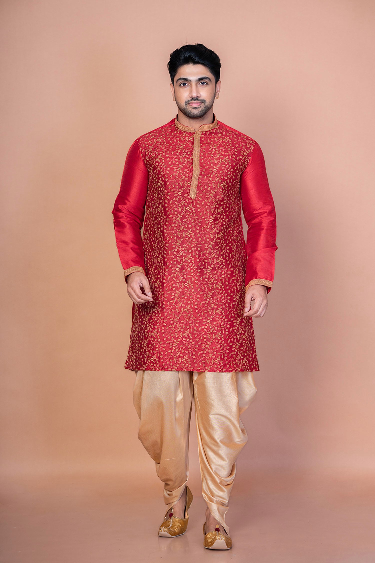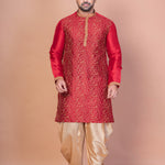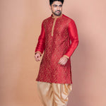 Cardinal Pinkish Red Banarasi Silk Printed Kurta Set