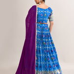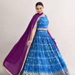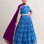 Celtic Blue Cotton Silk Ikat Printed Lehenga Set