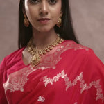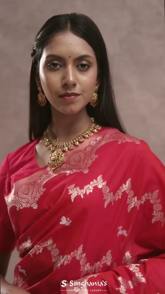Cherry Red Banarasi Silk Saree With Silver Zari Border