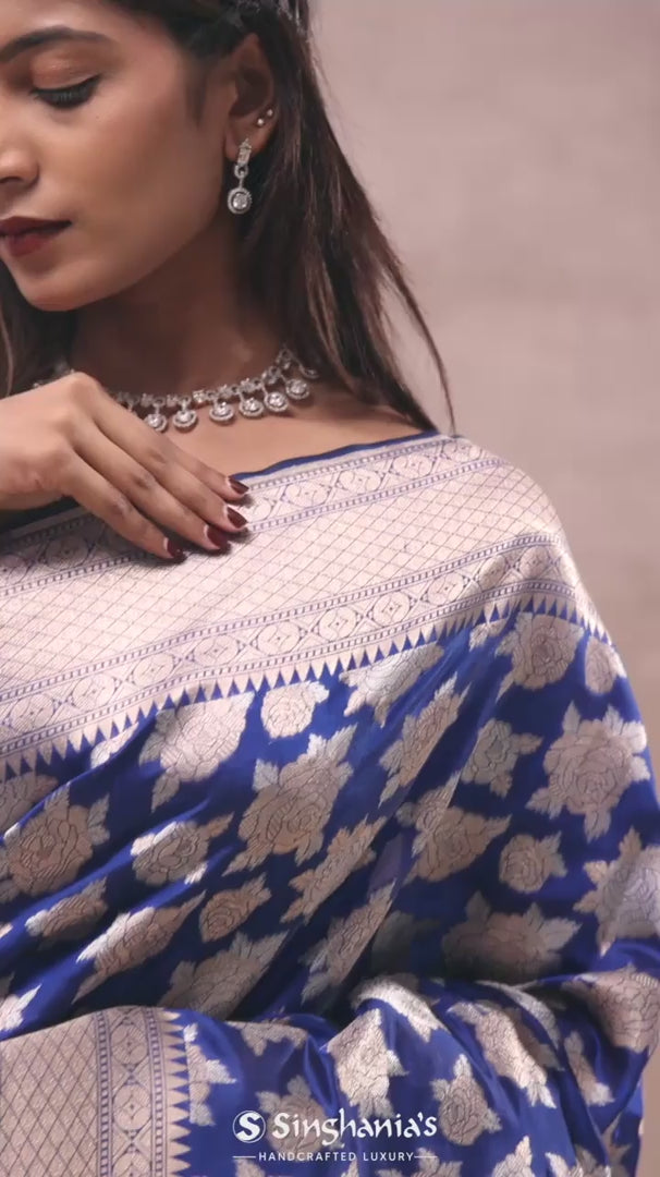 Cobalt Blue Banarasi Silk Saree With Gold And Silver Zari Weaving