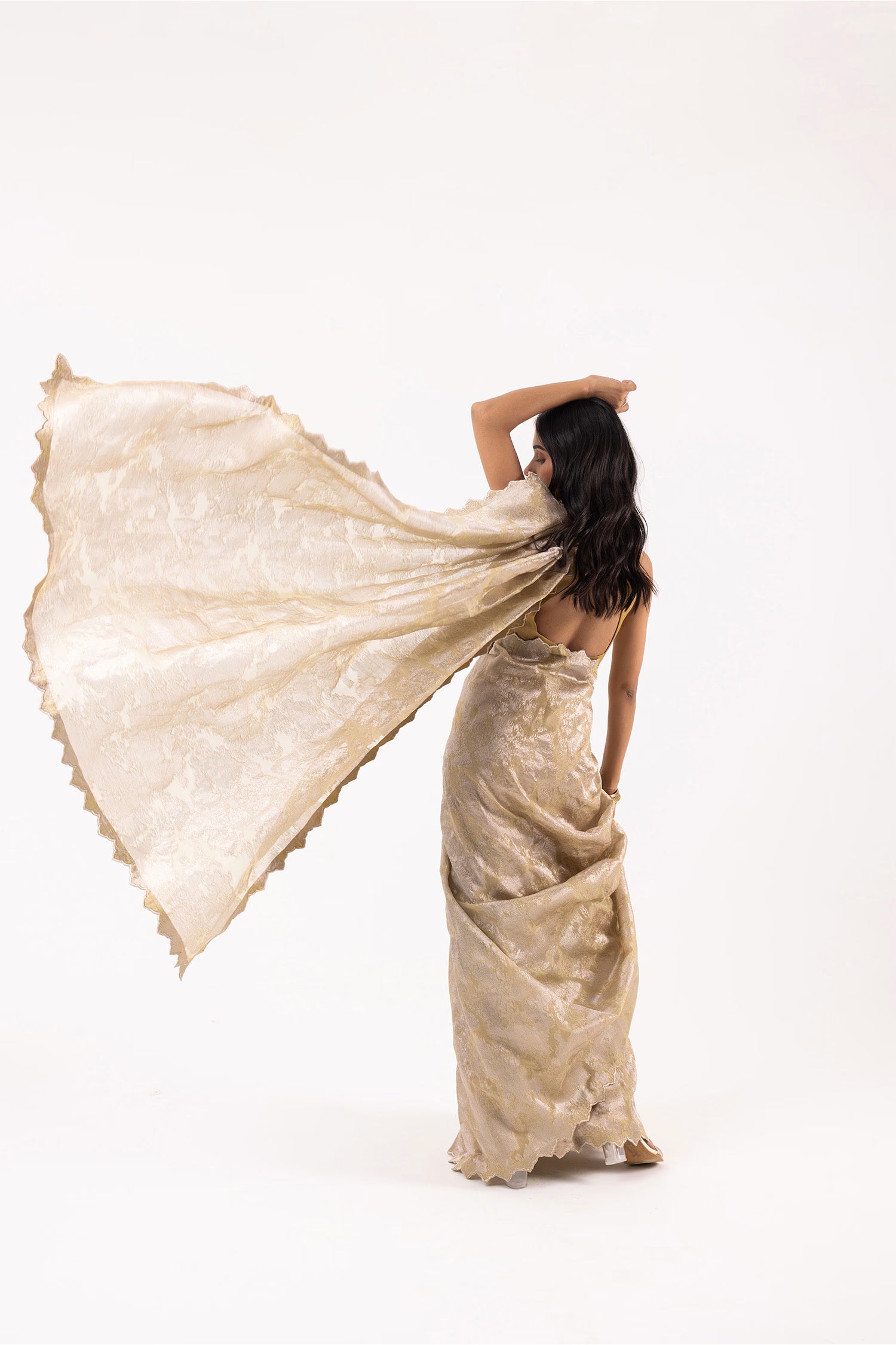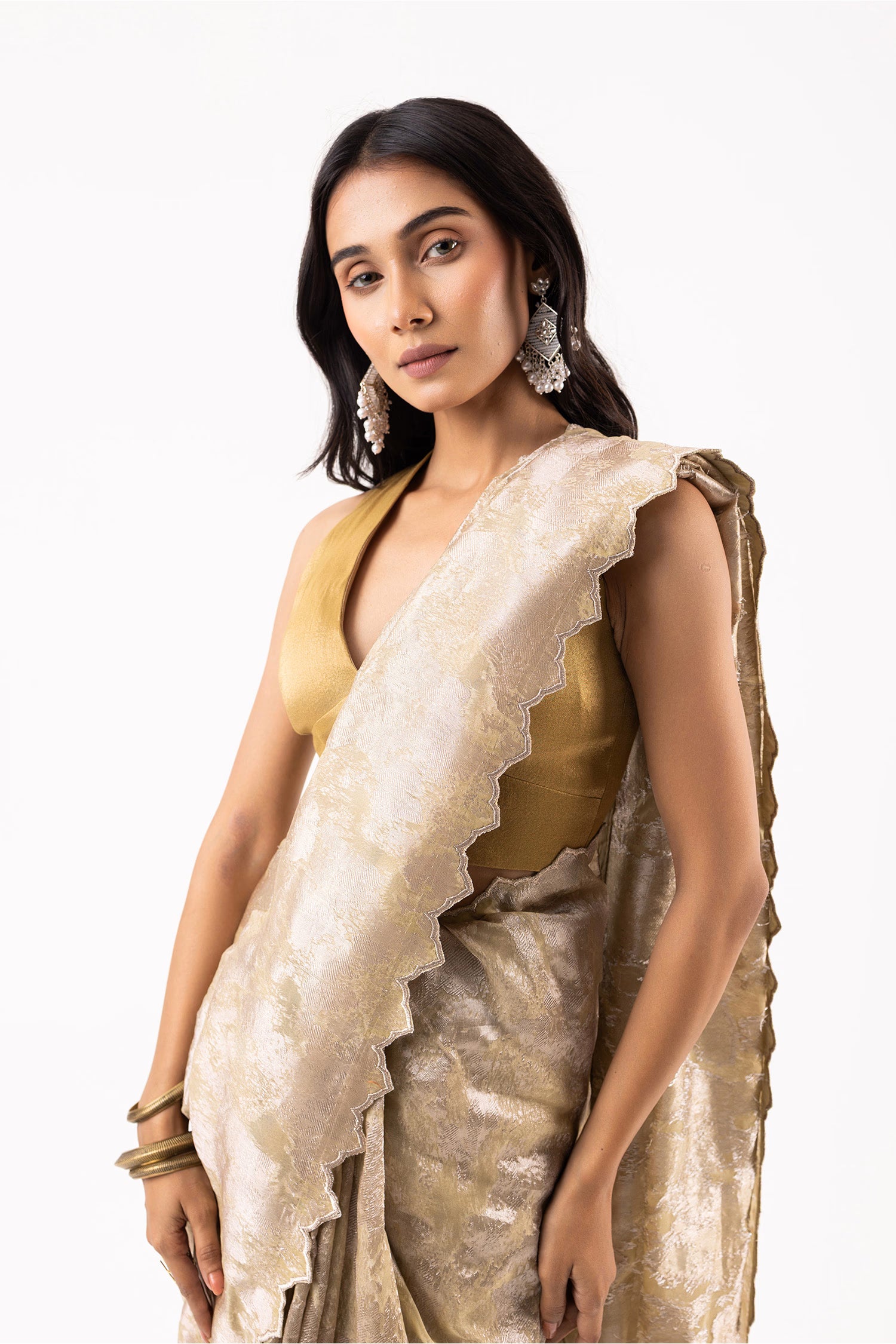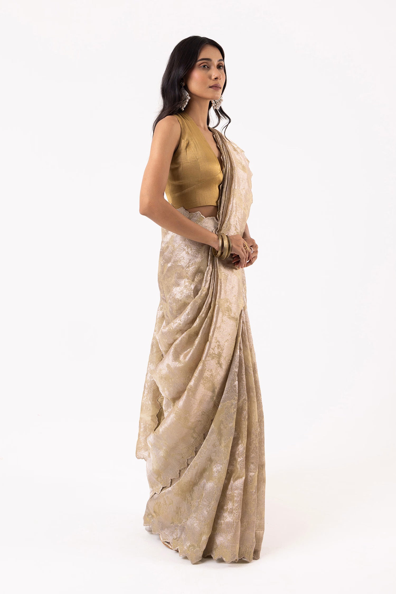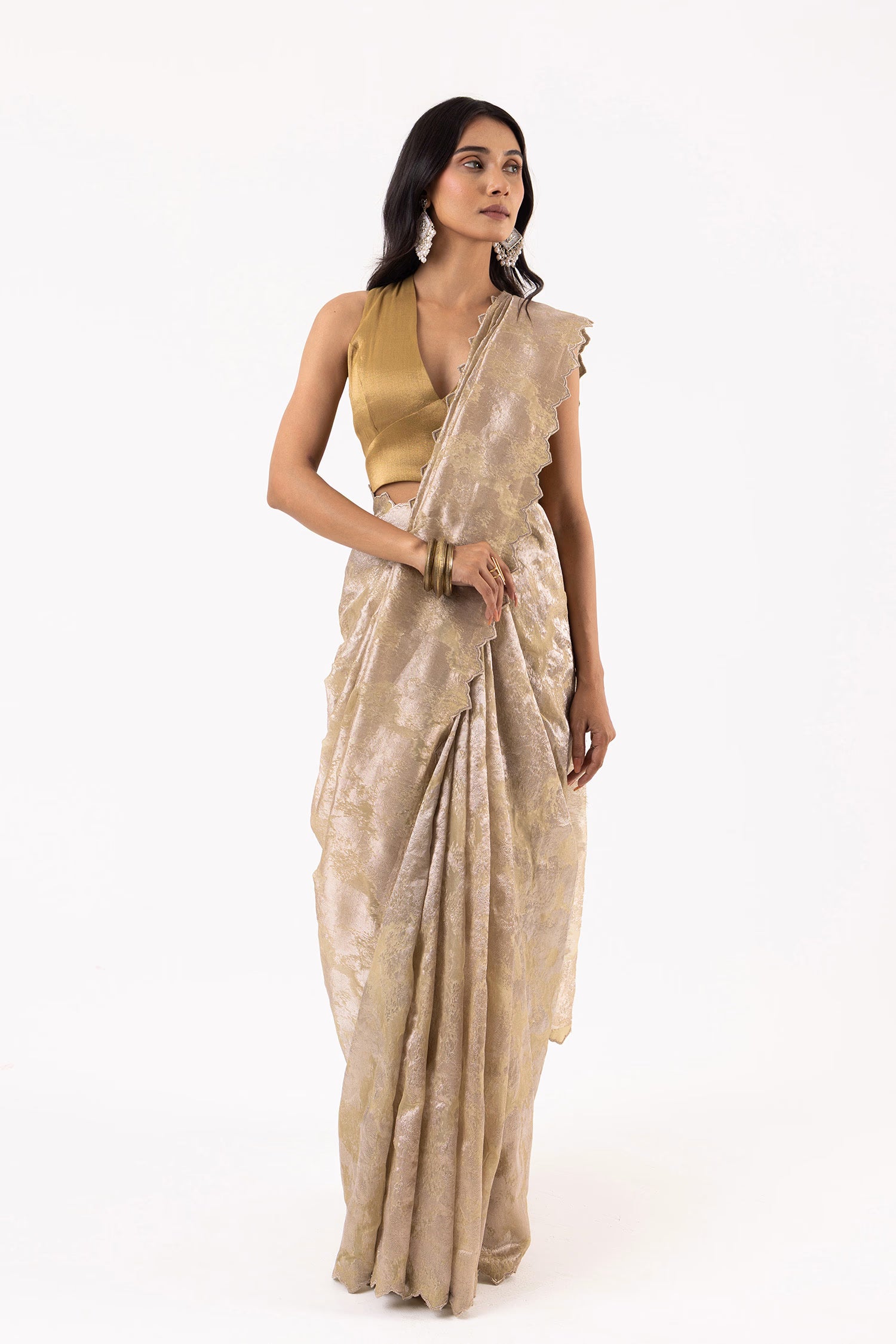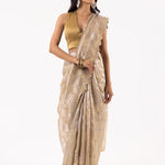 Dark Beige Viscose Jacquard Saree With Scallop Border