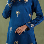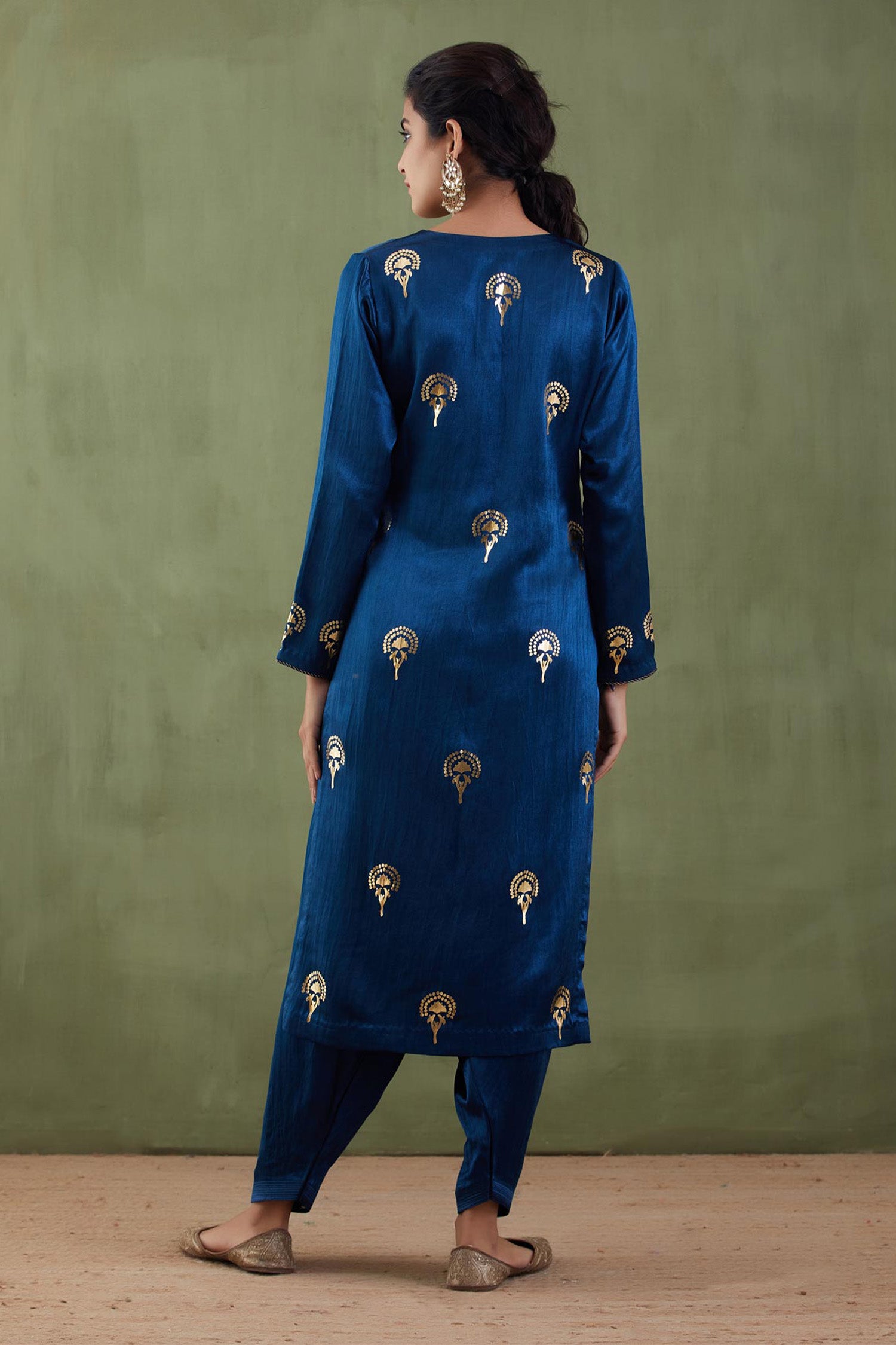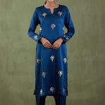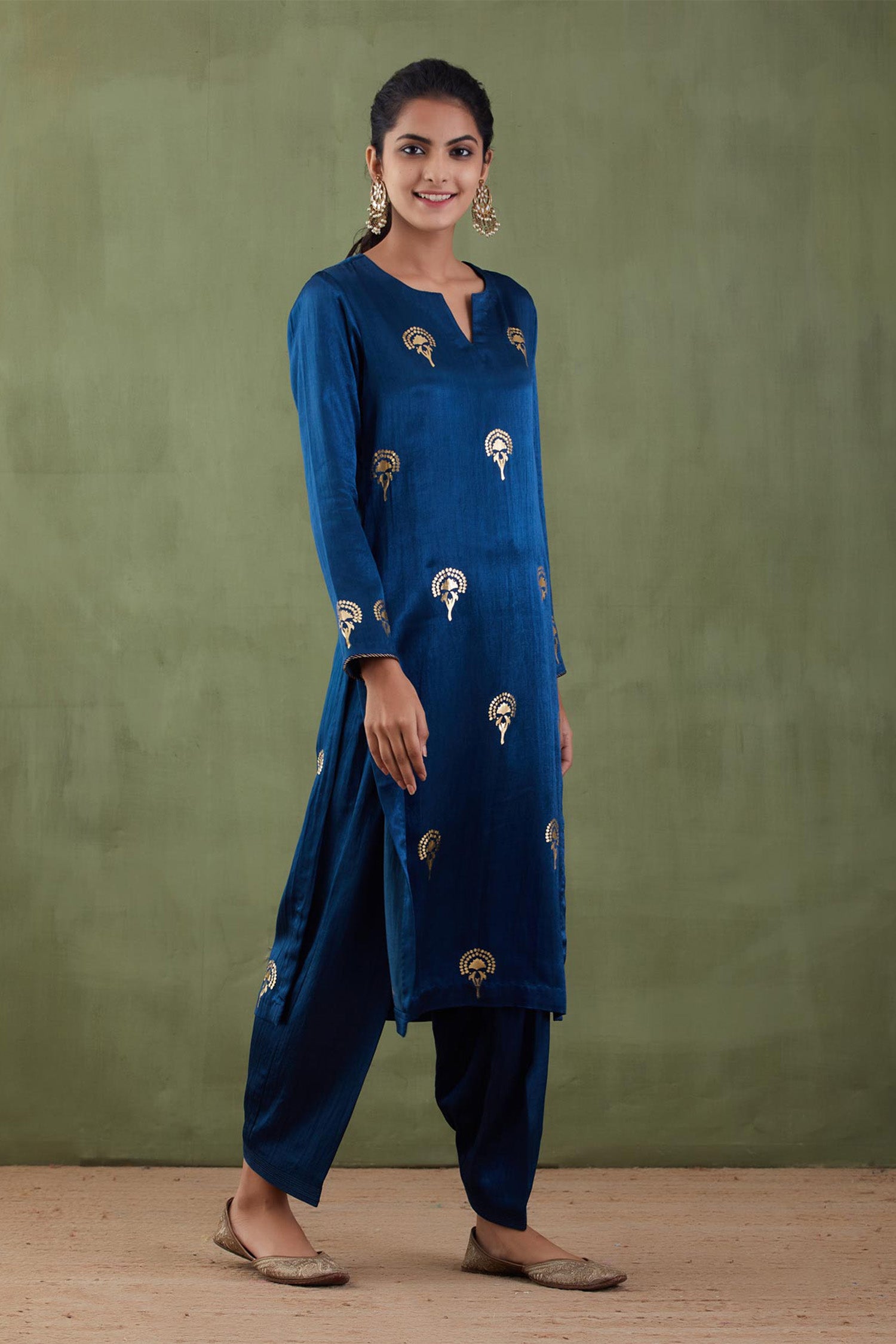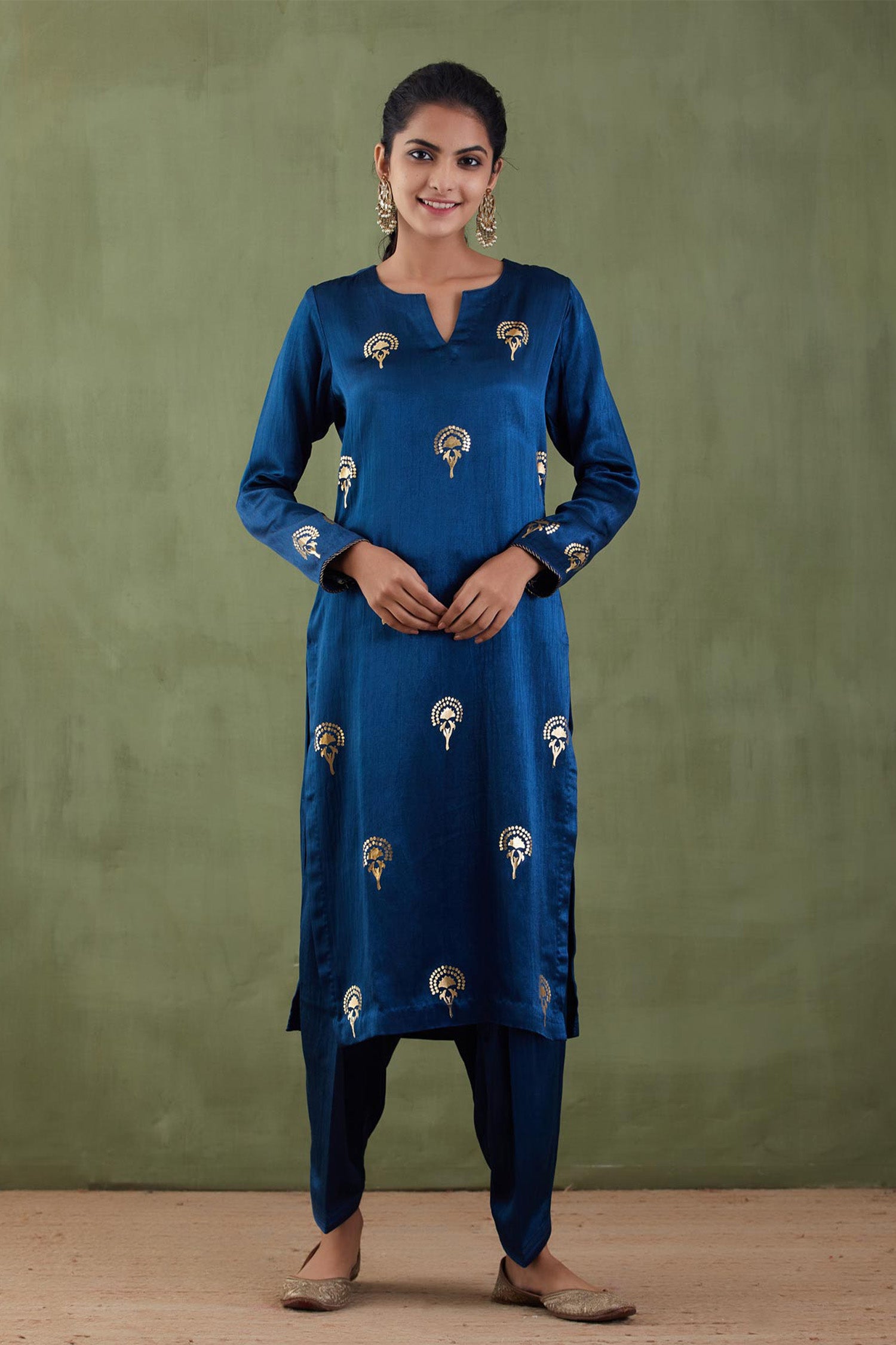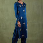 The elegant dark blue straight kurta set with the matching pants set along with the foil printed design for a rich look in casual and festive occasions with the desired comfort for the dignified touch.